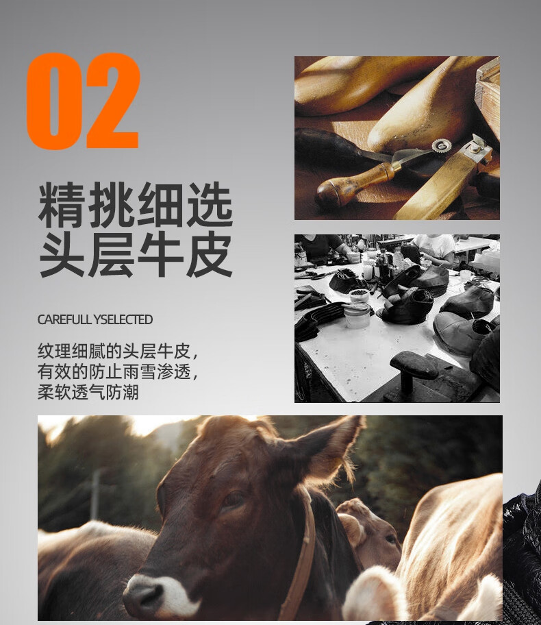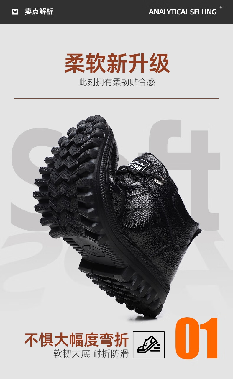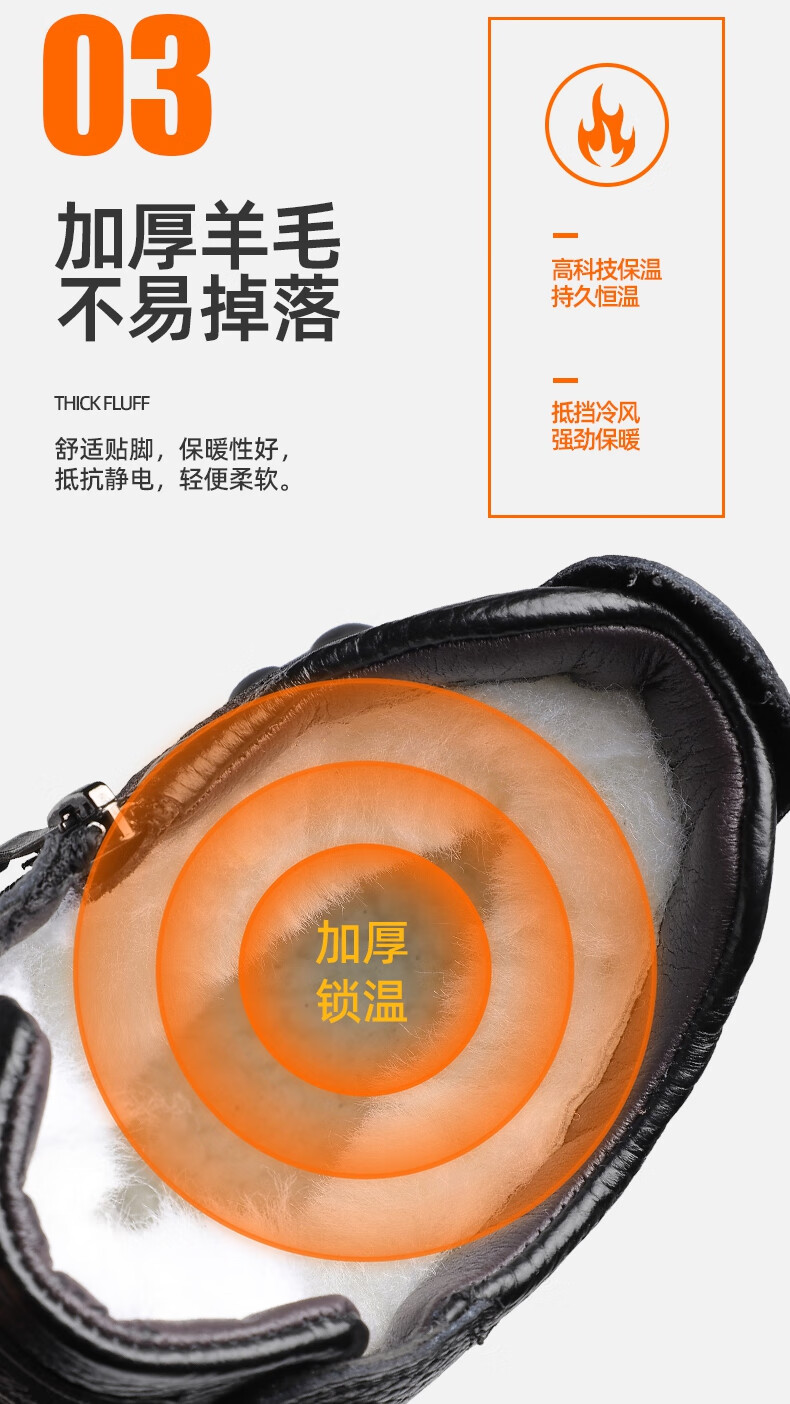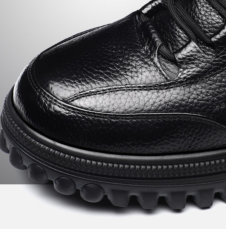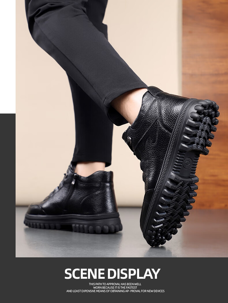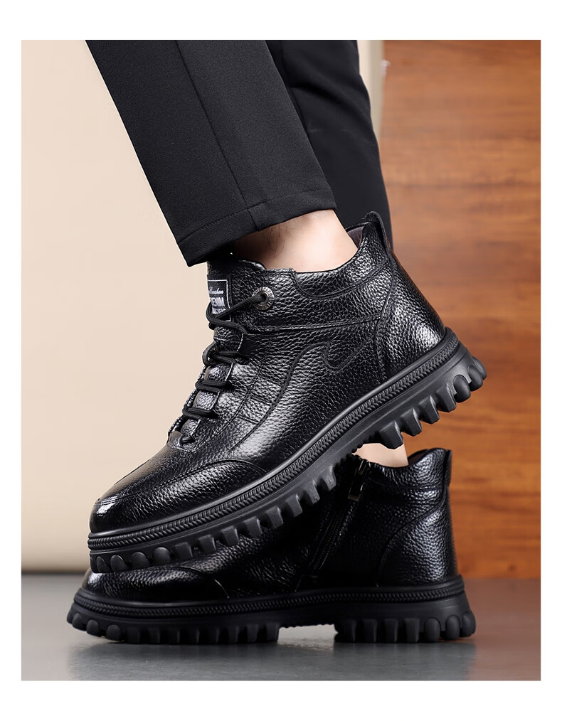 稻草人(MEXICAN)头层牛皮纯羊毛雪地棉鞋男高帮加绒皮鞋保暖加厚冬鞋冬季中年爸爸 黑色 38
