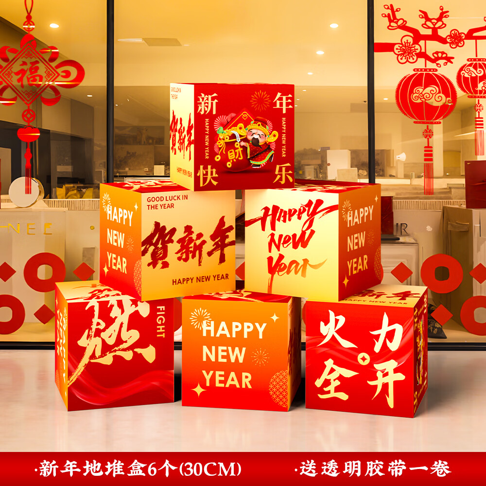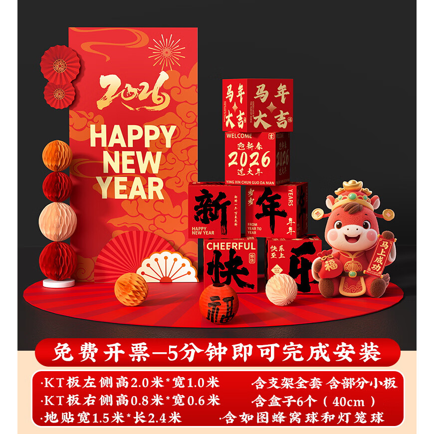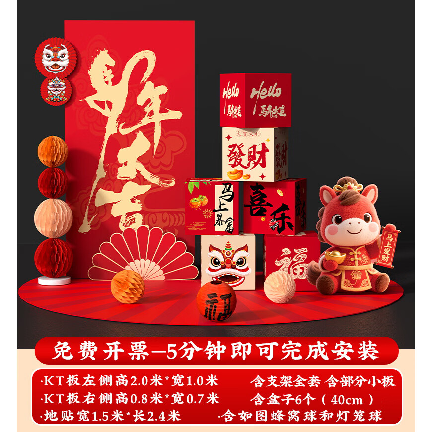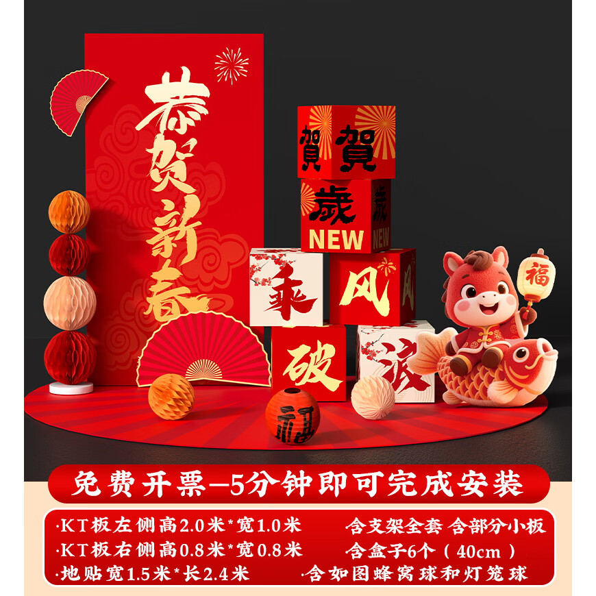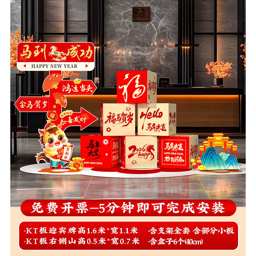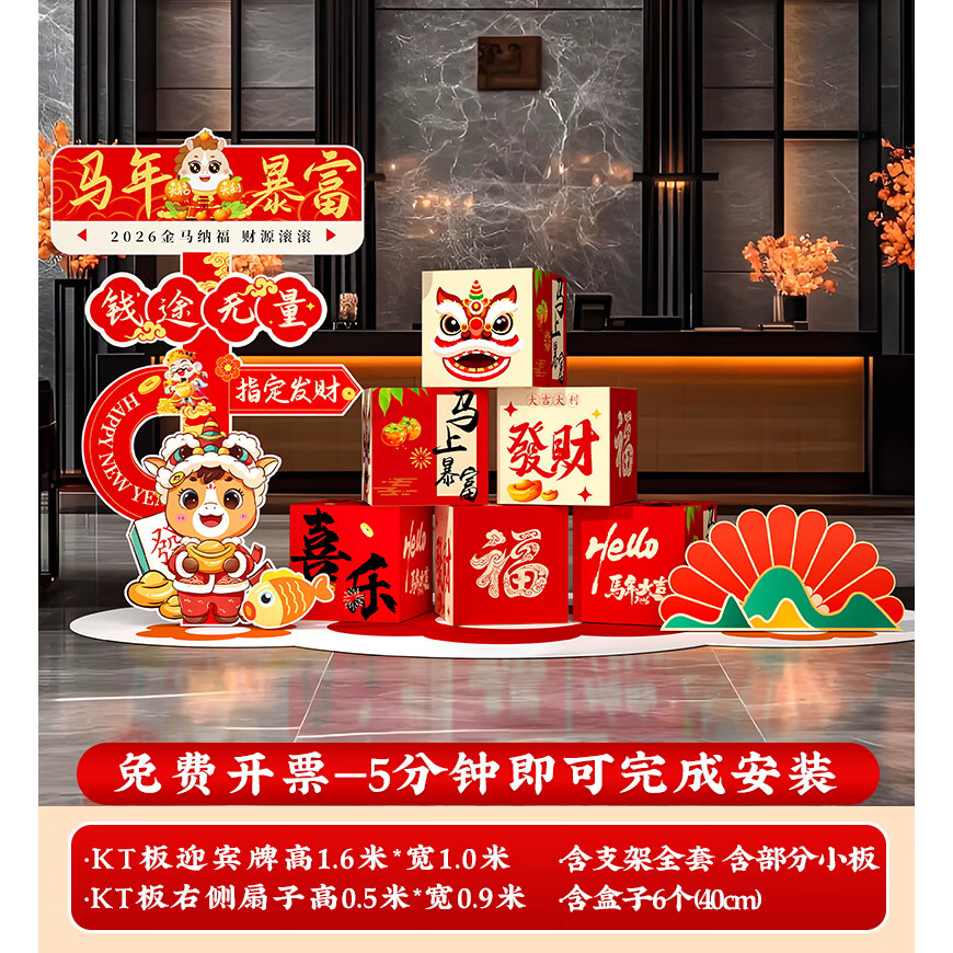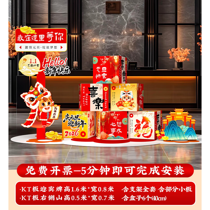 玺飞新年装饰品氛围布置场景过马年2026元旦春节打卡拍照kt板指示立牌 当日发/51款新年迎宾+盒子