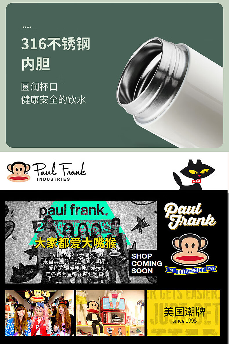 paul frank保温杯PFC758-450泡茶杯饮水杯子颜色随机发货