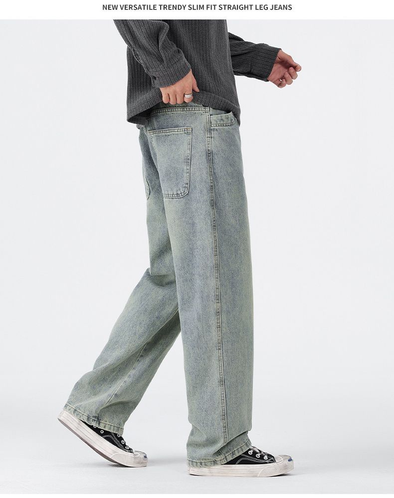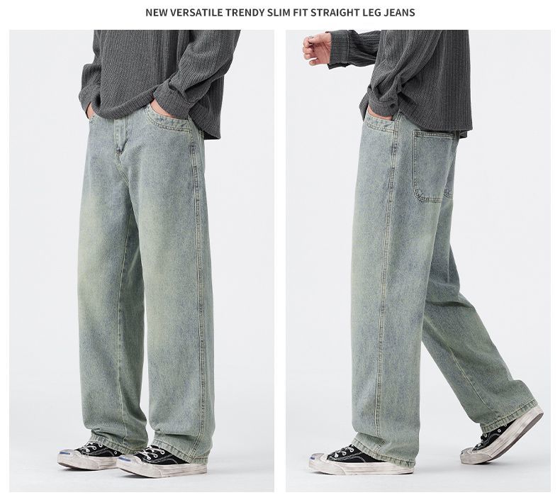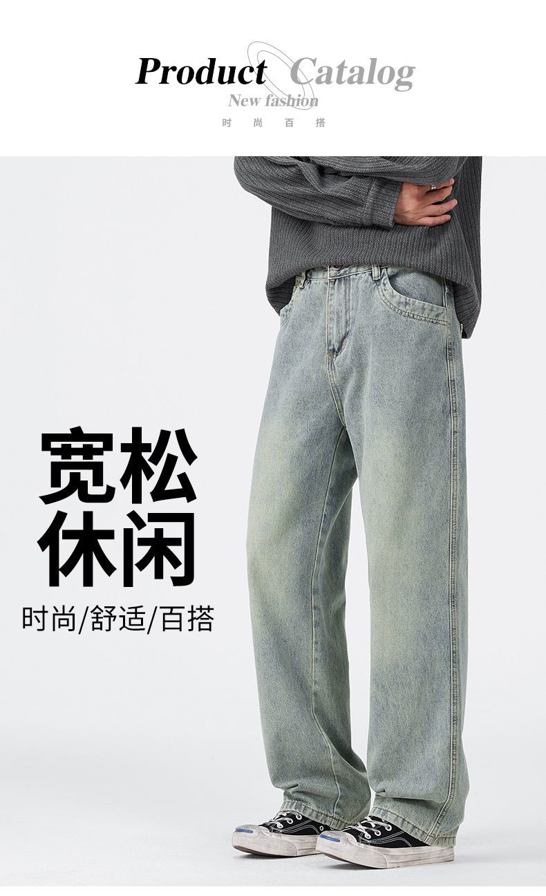 真维斯(Jeanswest)2026高街vibe美式潮牌牛仔裤男春季新款百搭垂感直筒微喇休闲长裤 复古蓝 28