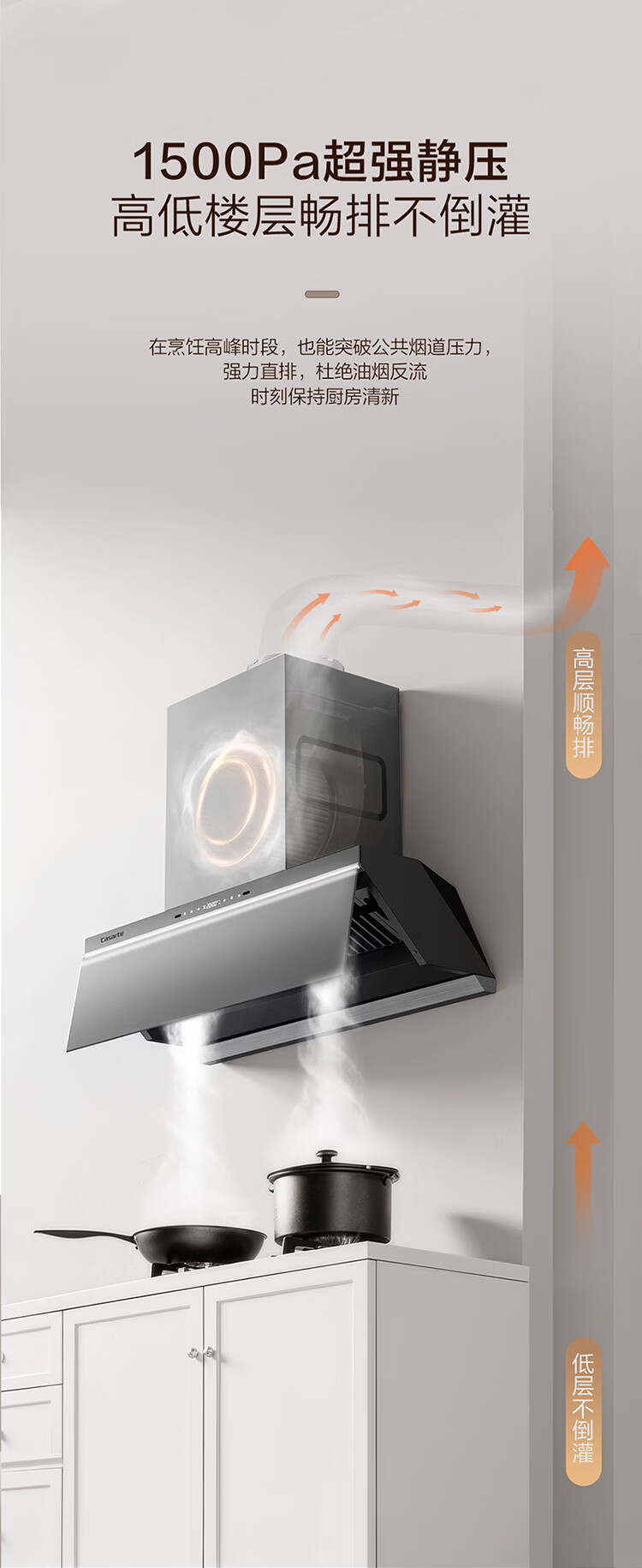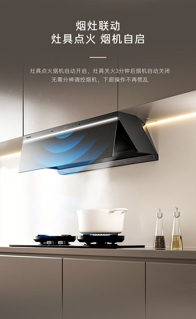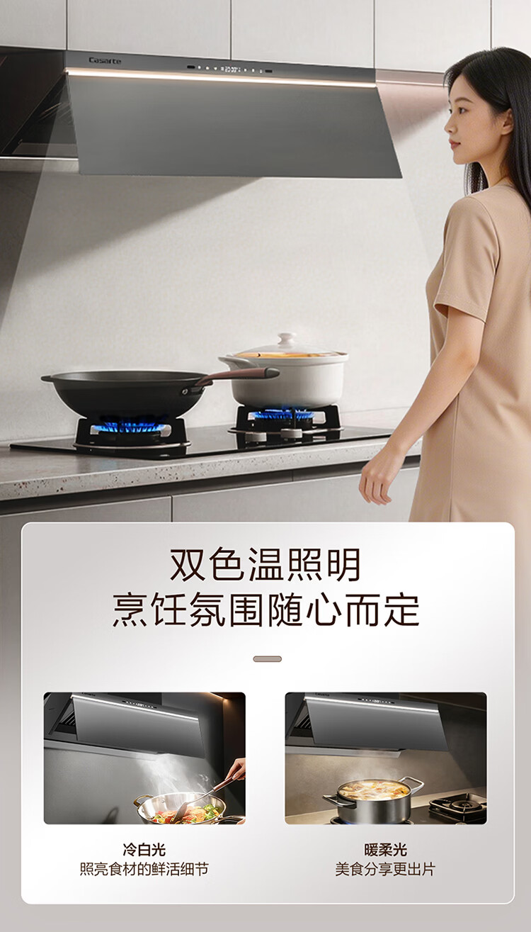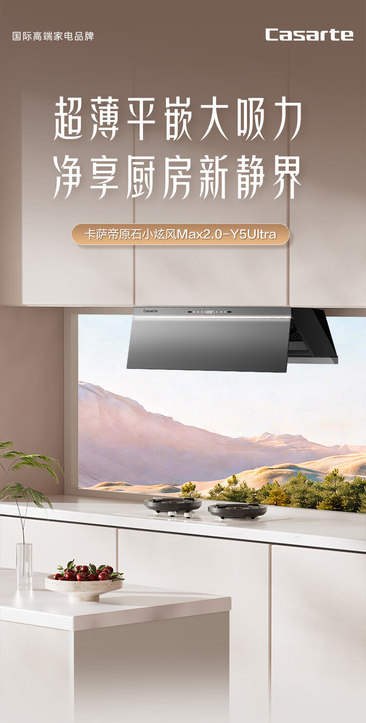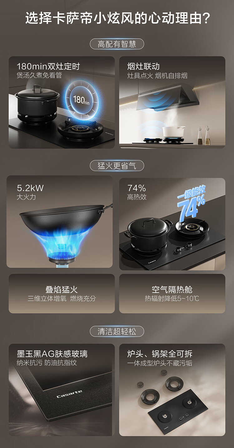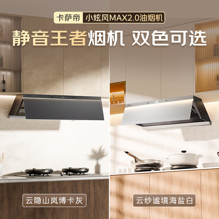 卡萨帝小炫风max2.0静音油烟机 原石小旋风吸油烟机套装家用 上门安装以旧换新 32风量大吸力 搭黑定时灶