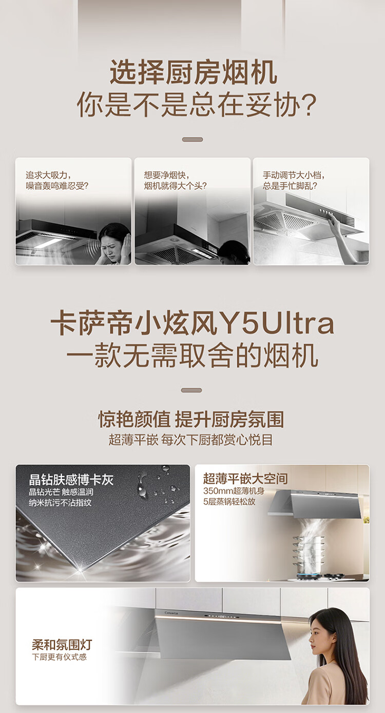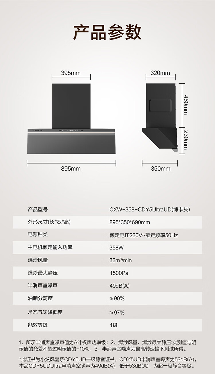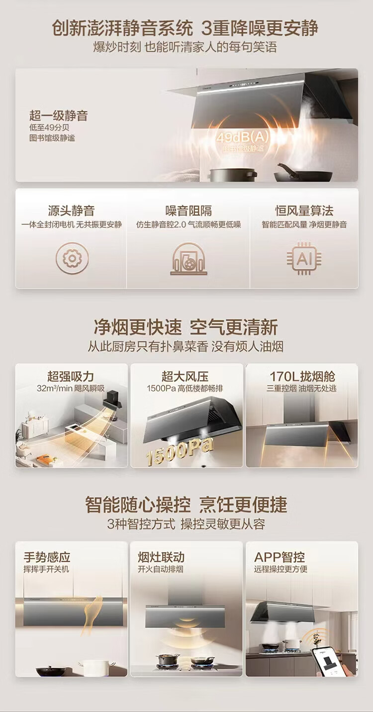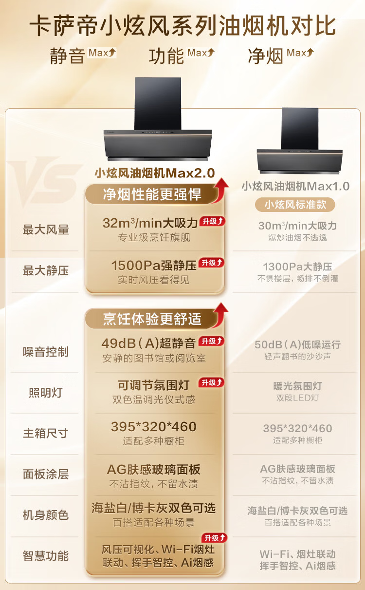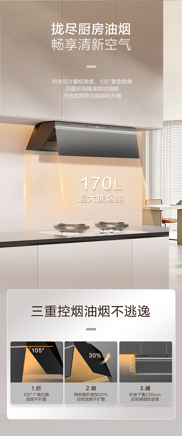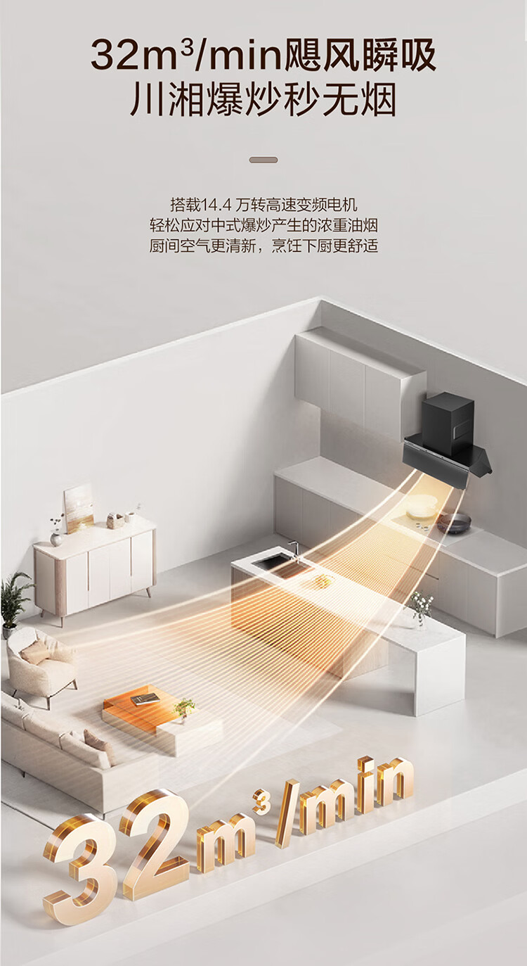 卡萨帝小炫风max2.0静音油烟机 原石小旋风吸油烟机套装家用 上门安装以旧换新 32风量大吸力 搭黑定时灶