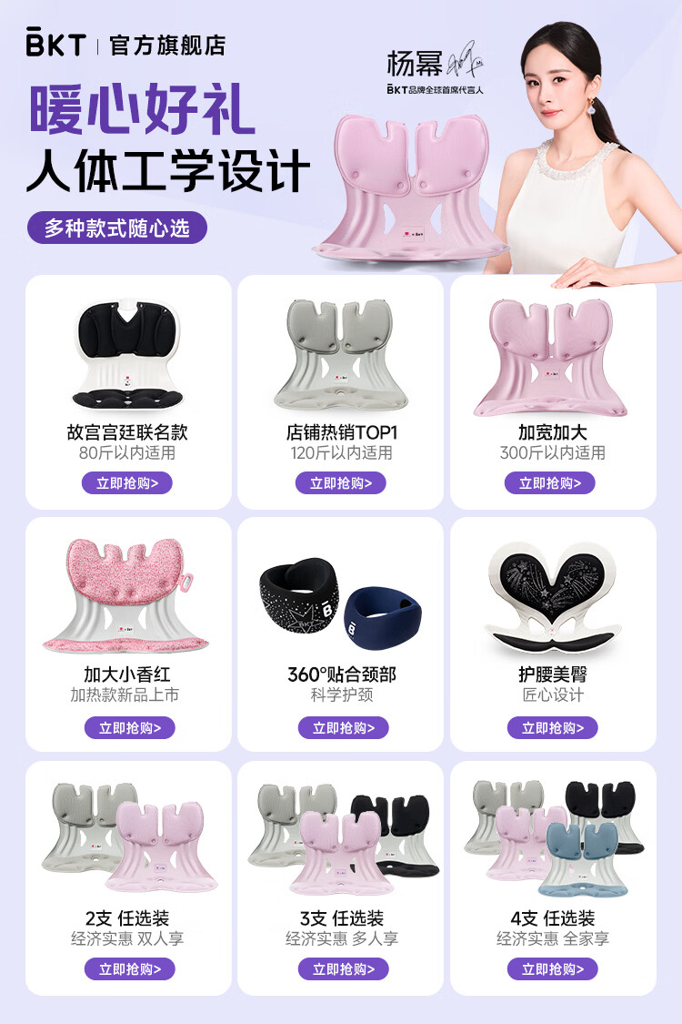 BKT护腰坐垫椅垫久坐神器人体工学腰靠垫美臀靠背垫汽车座椅节日礼物 加大北欧蓝【150斤内】