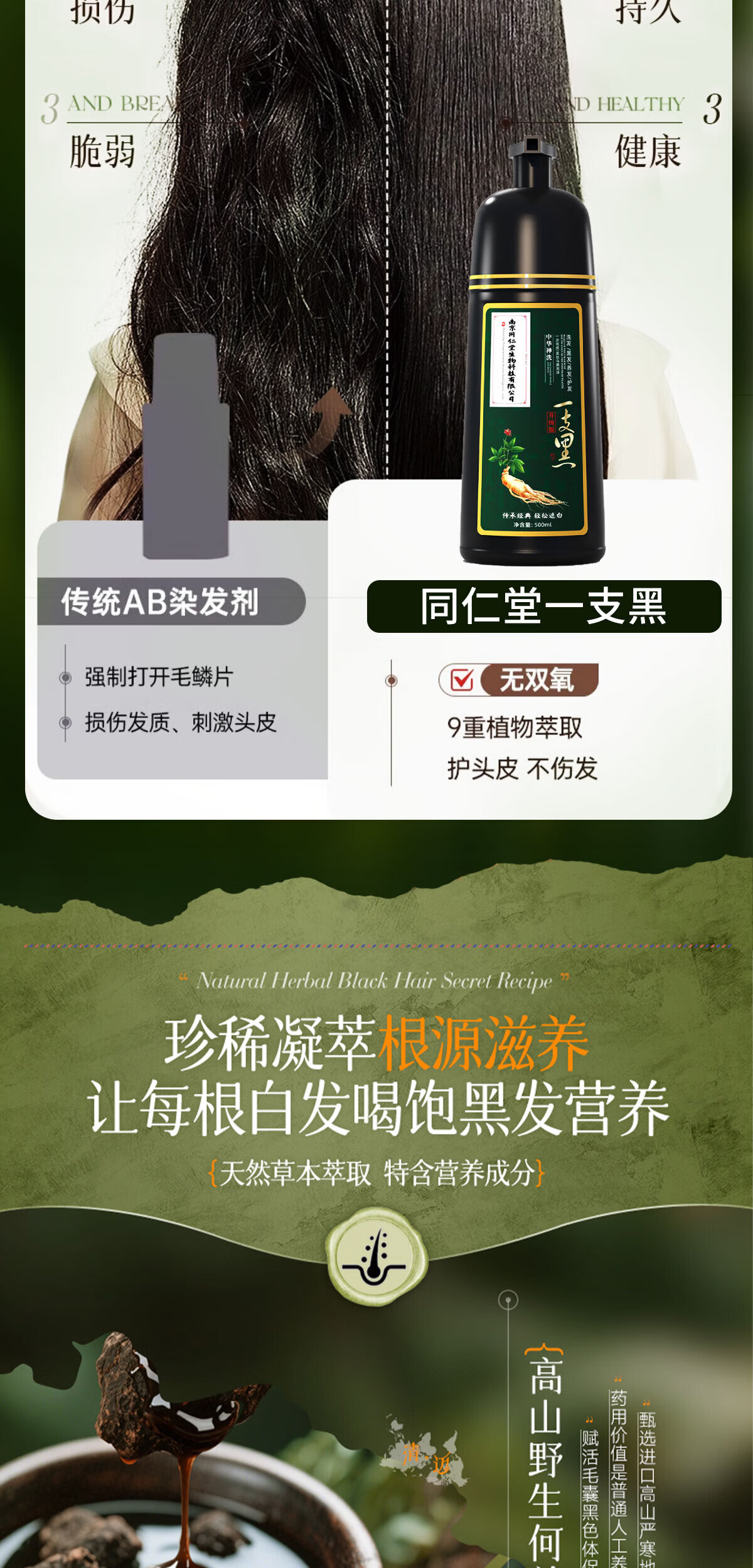 同仁堂染发膏纯天然植物无刺激不沾头皮孕妇可用一洗黑染发剂男女士专用 特惠2瓶装其他颜色备注