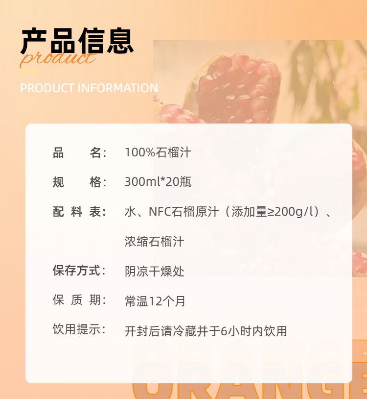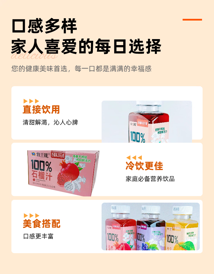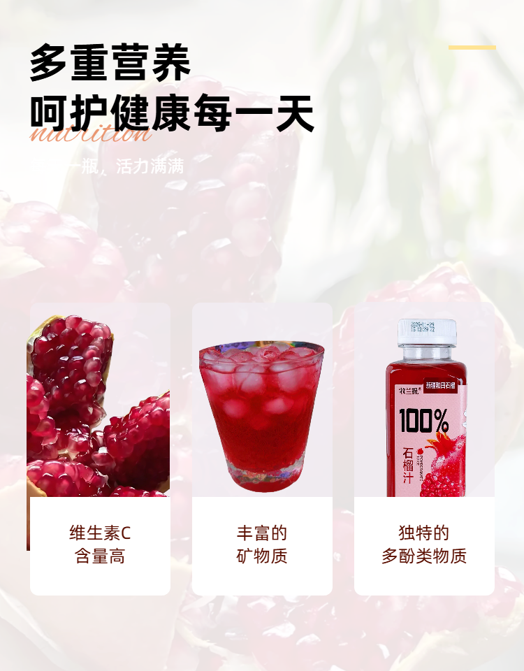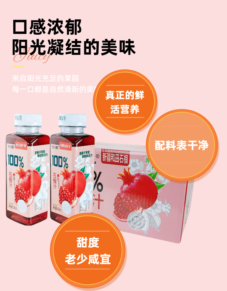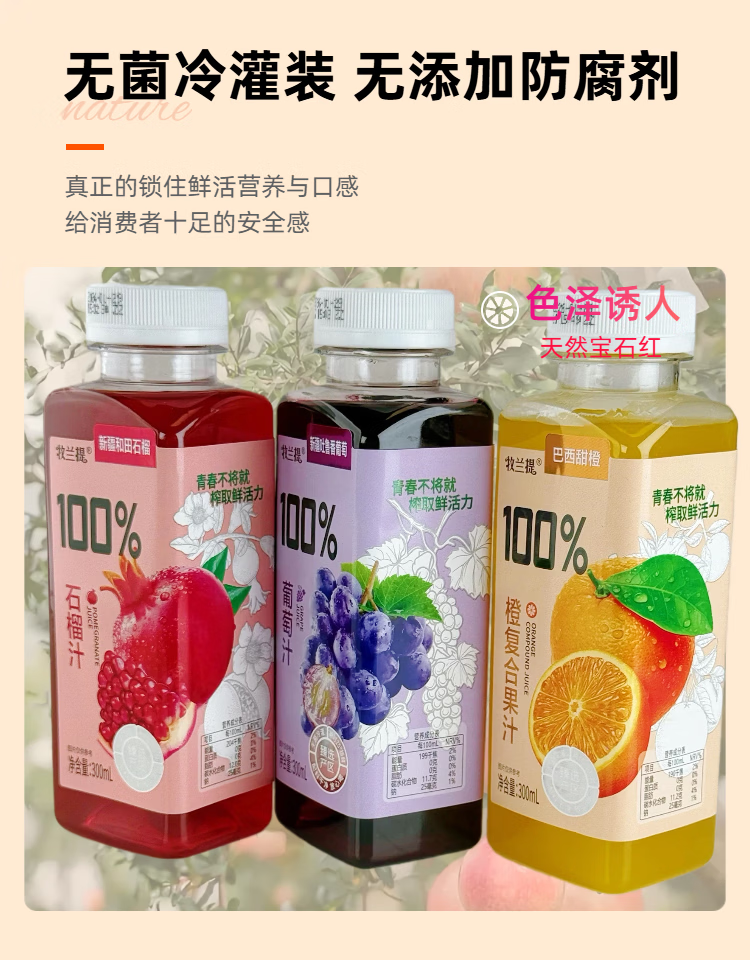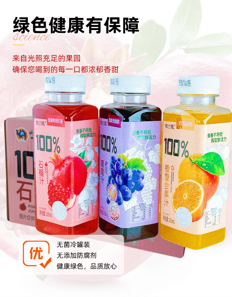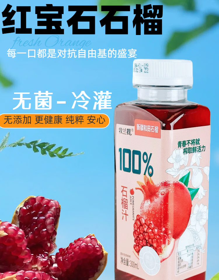 牧兰提100%石榴汁300ml瓶装无菌冷罐技术无添加放心喝商超网红同款饮品 300ml*20瓶 整箱分享装