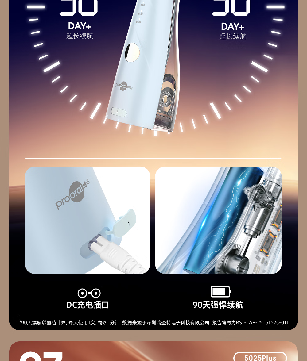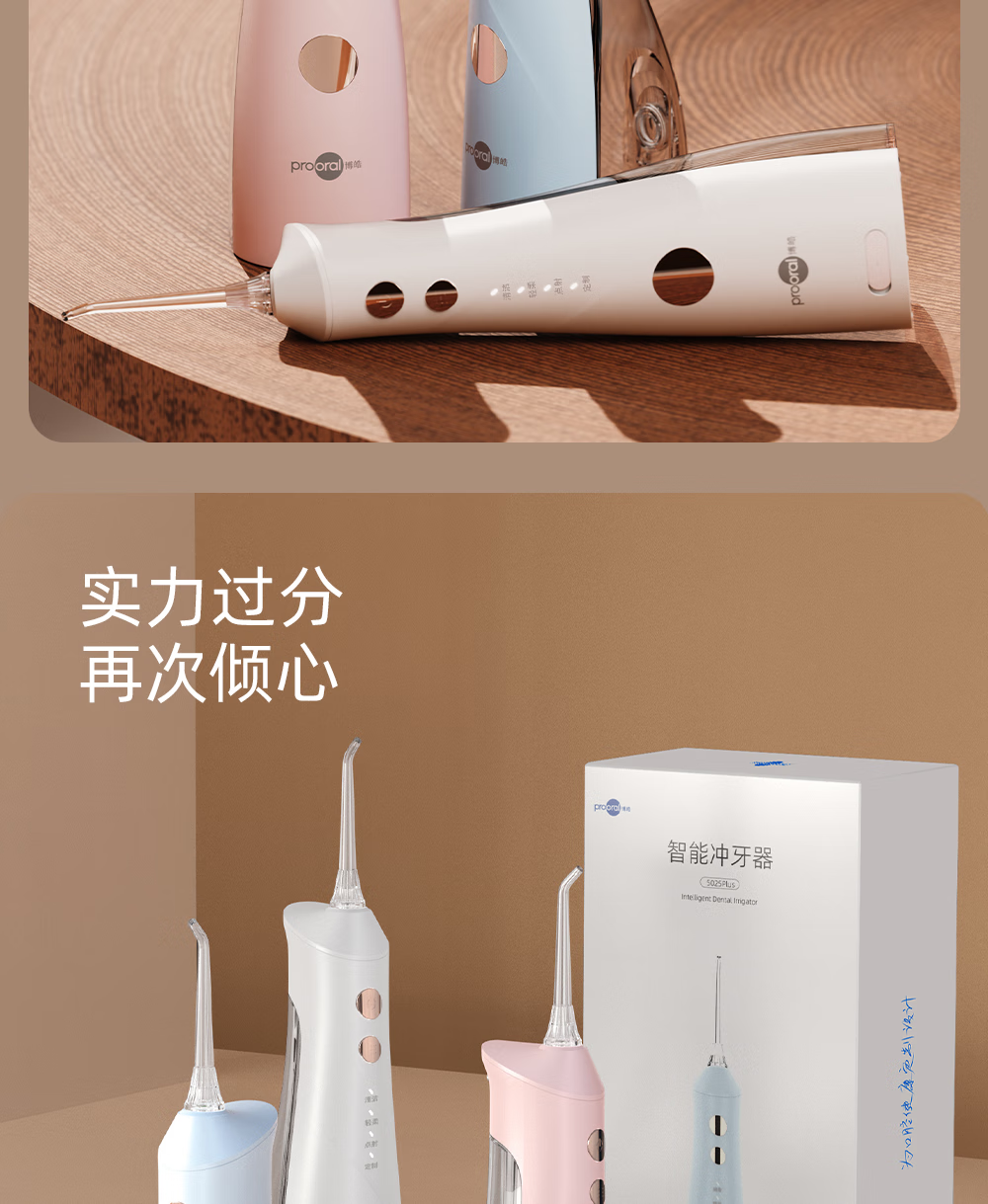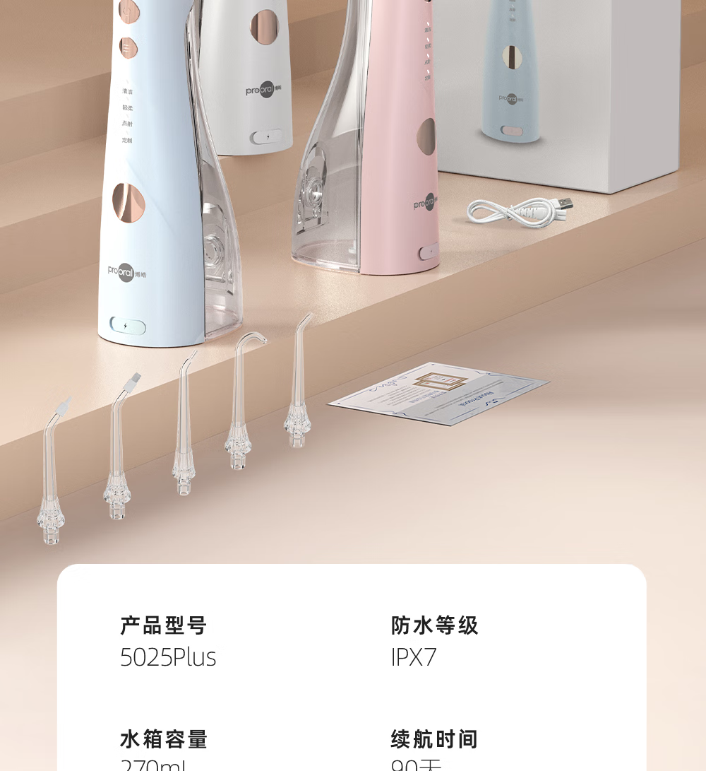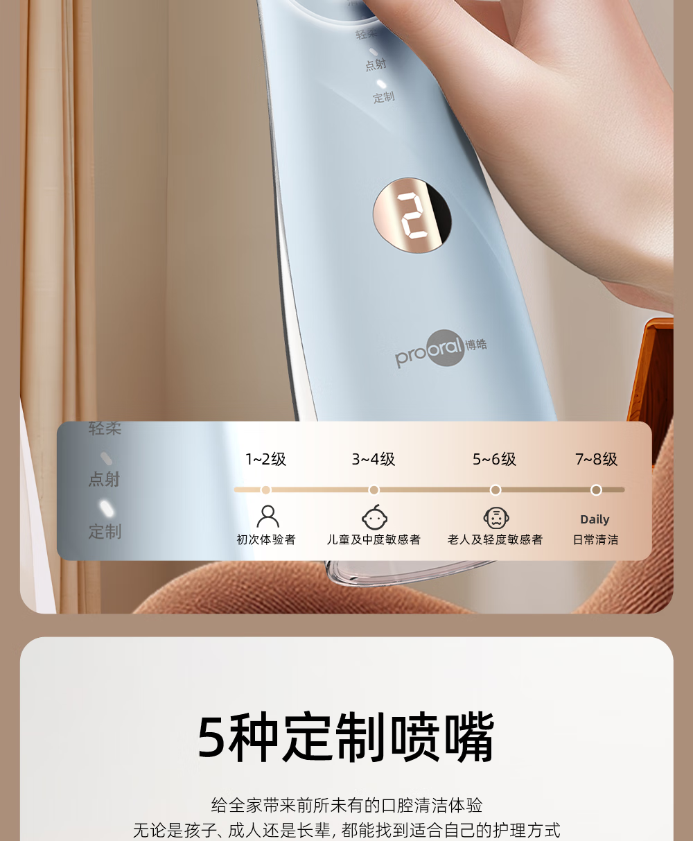 博皓(prooral)电动洗牙器冲牙器家用水牙线清洁牙齿冲洗器牙垢去除工具口腔清洗器便携正畸呵护立式手持5025Plus 瓷白 |智能数显屏