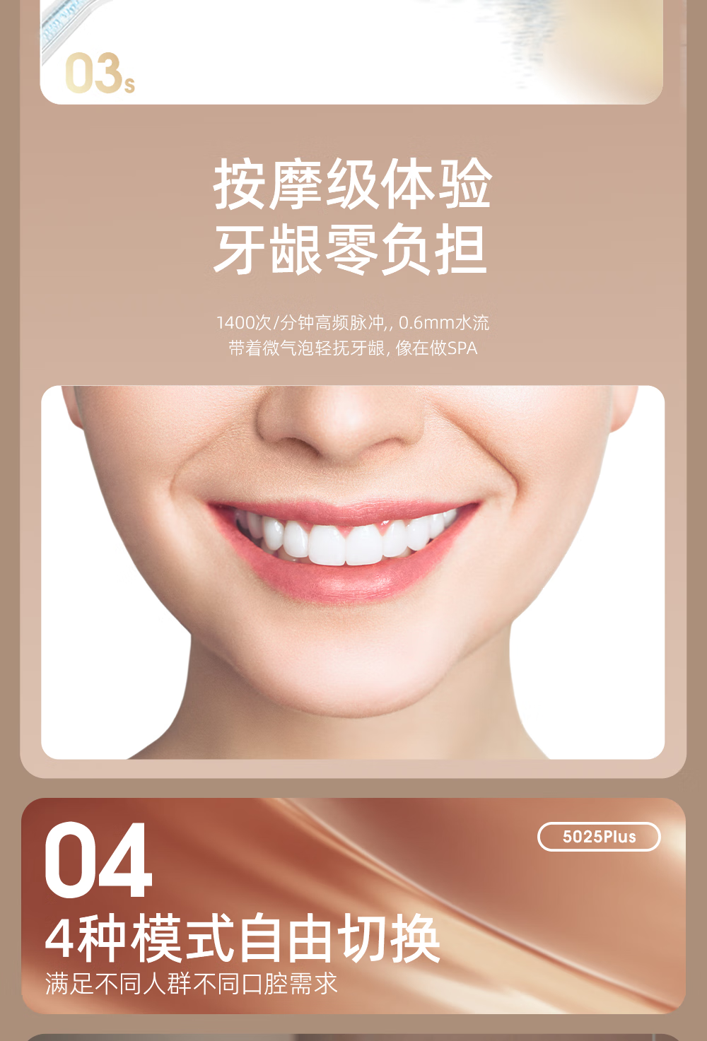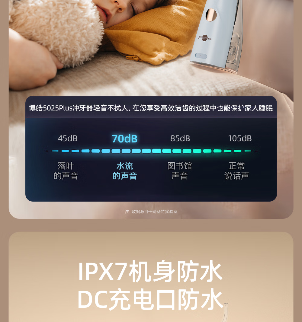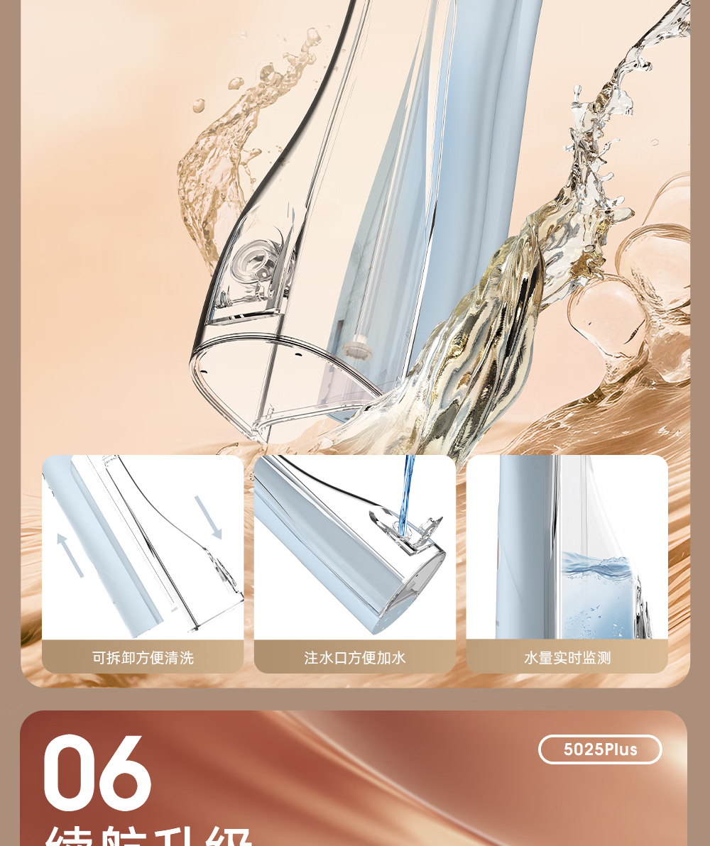 博皓(prooral)电动洗牙器冲牙器家用水牙线清洁牙齿冲洗器牙垢去除工具口腔清洗器便携正畸呵护立式手持5025Plus 瓷白 |智能数显屏