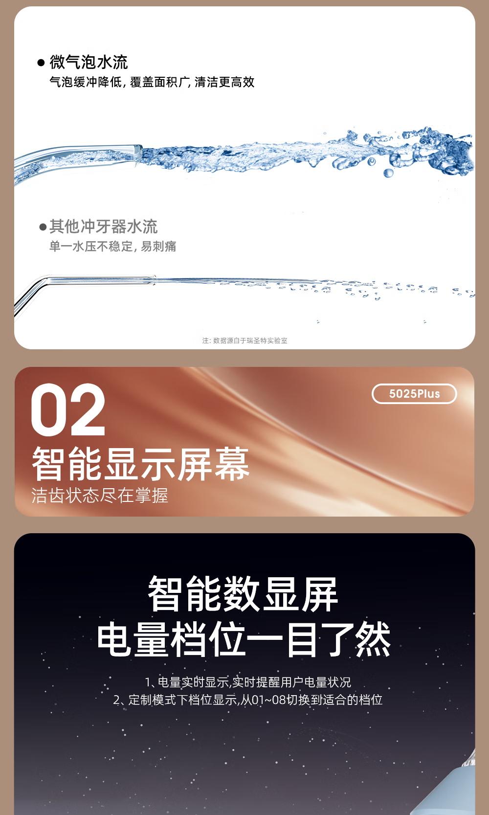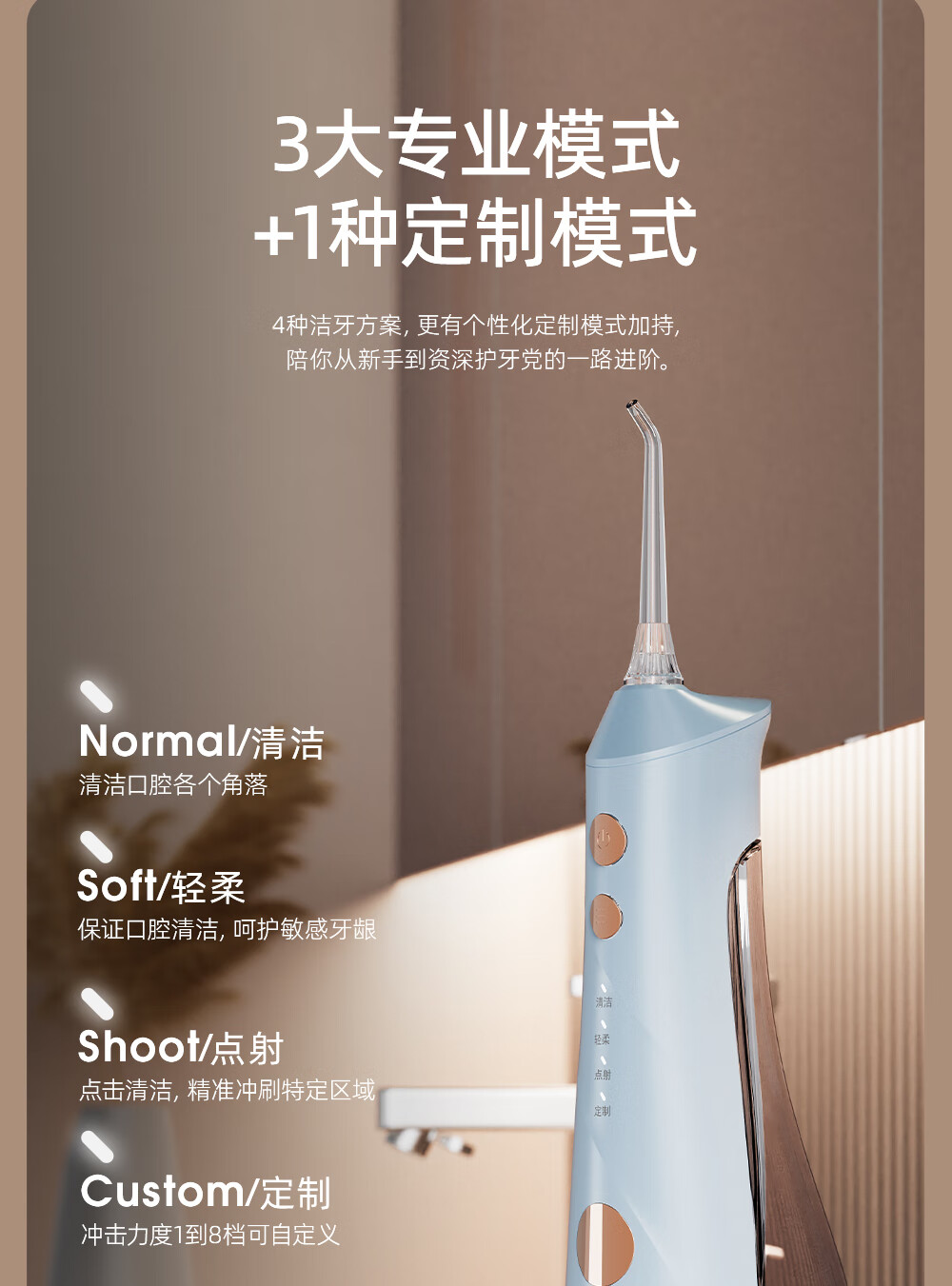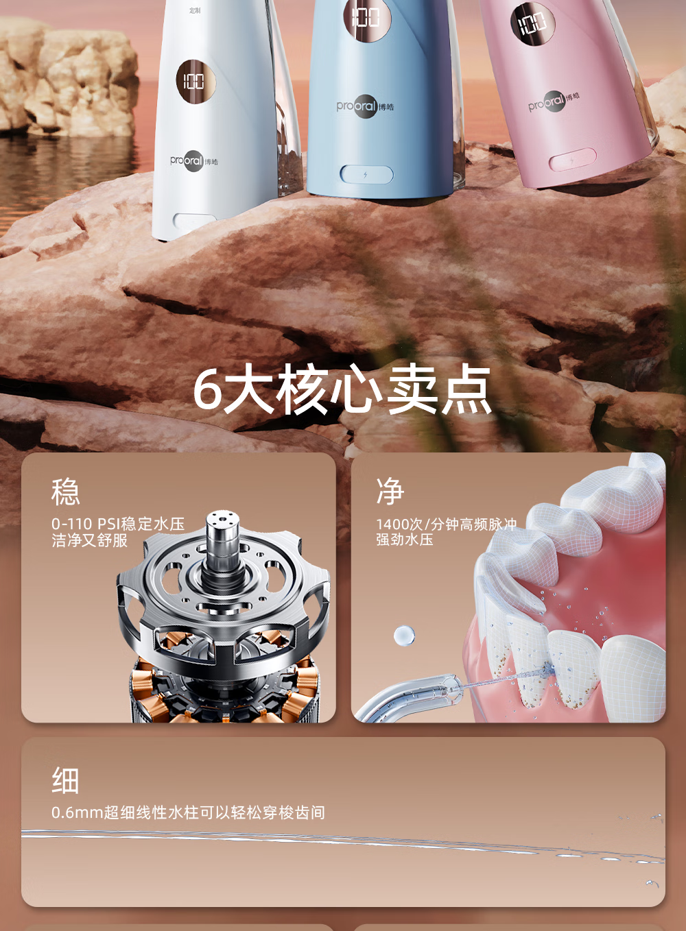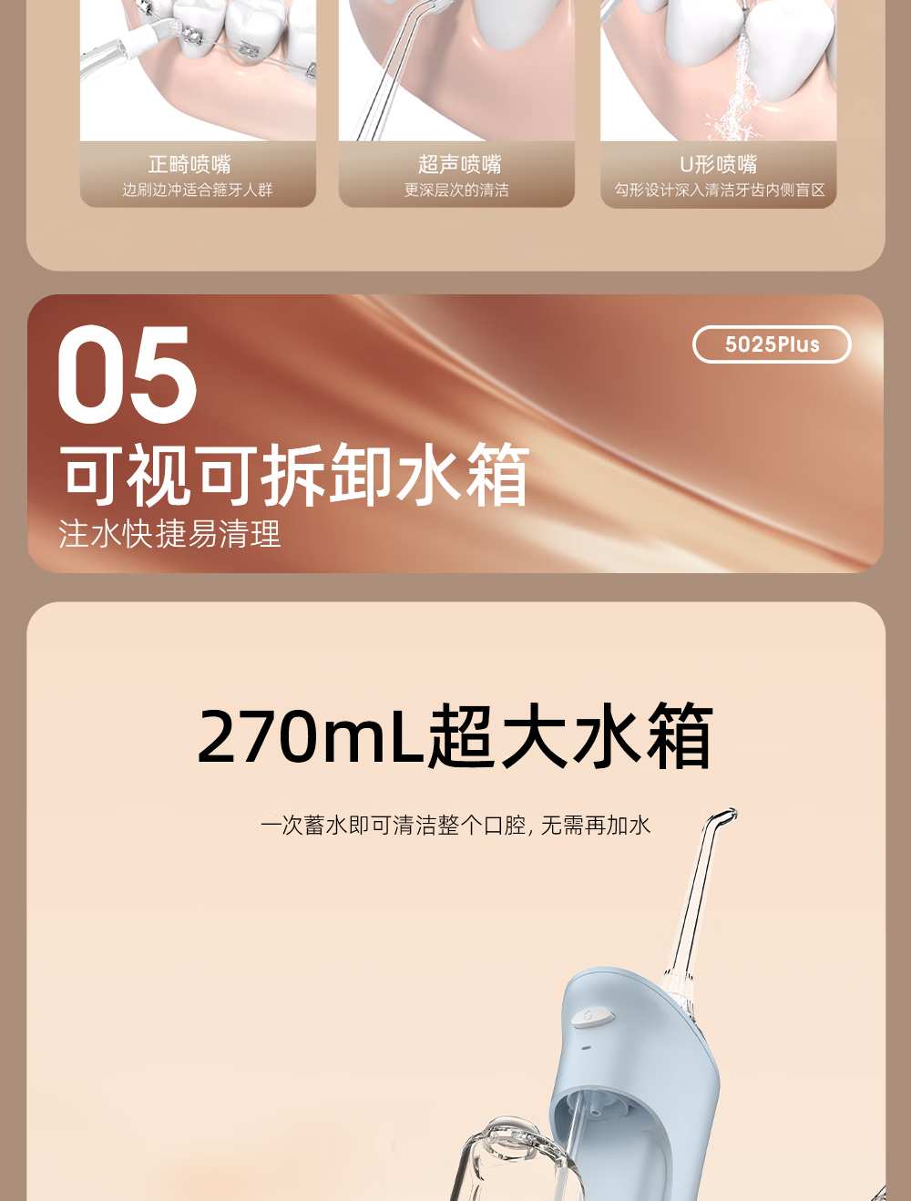 博皓(prooral)电动洗牙器冲牙器家用水牙线清洁牙齿冲洗器牙垢去除工具口腔清洗器便携正畸呵护立式手持5025Plus 瓷白 |智能数显屏