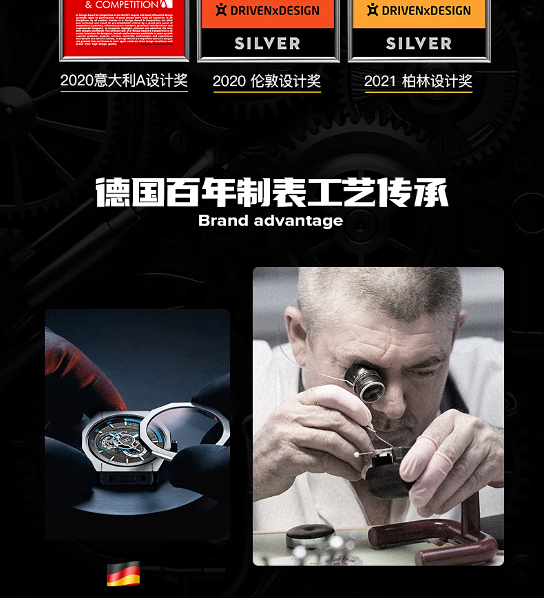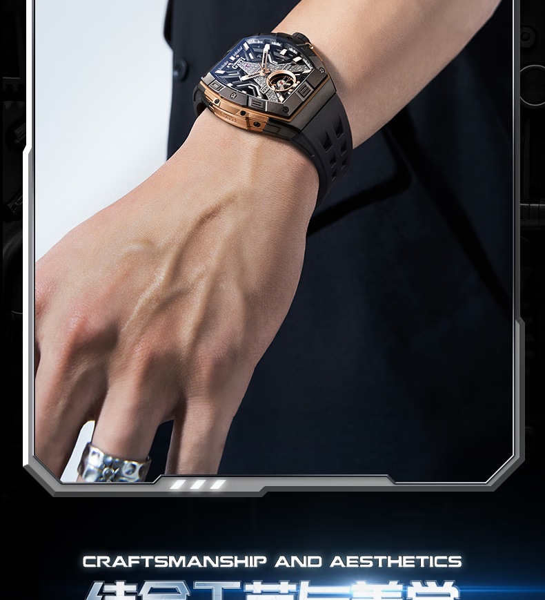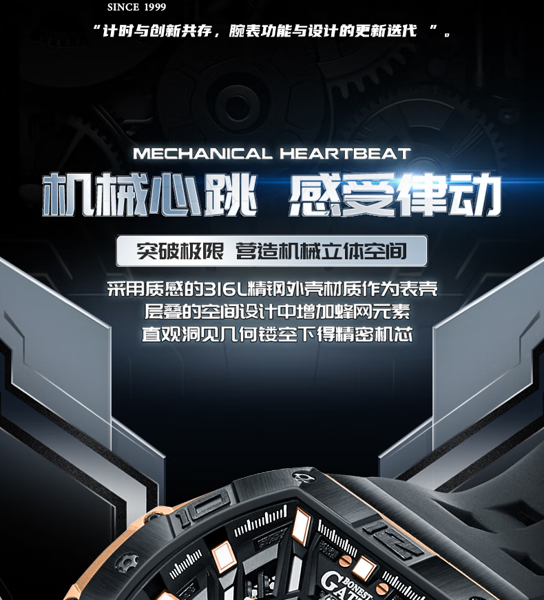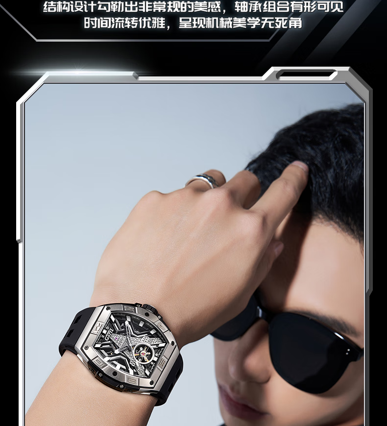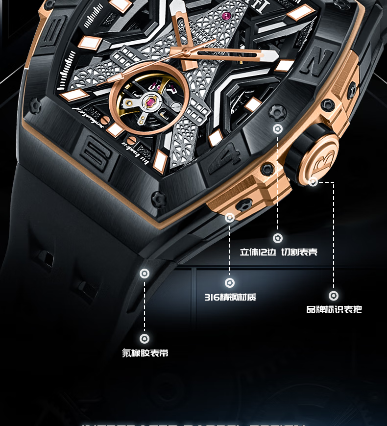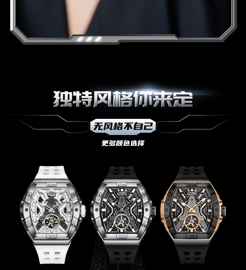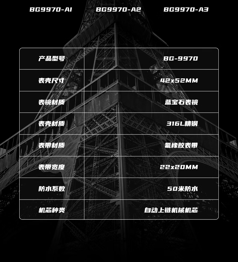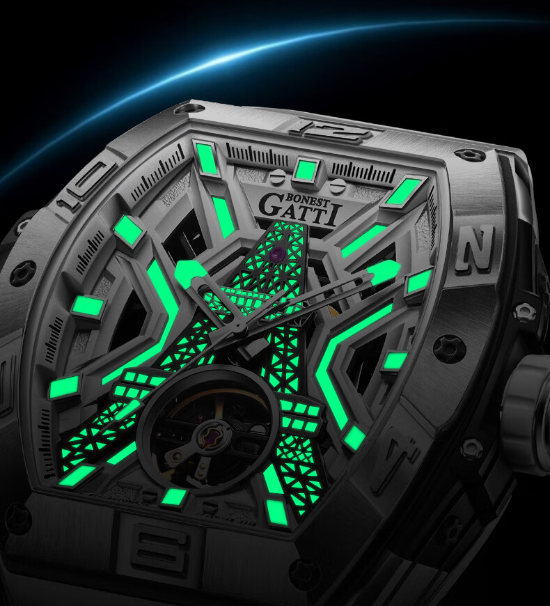 布加迪(BONEST GATTI)德国手表男士全自动机械名表夜光镂空腕表情人节新年礼物送男友 BG5001-R2 银壳黑面黑胶带