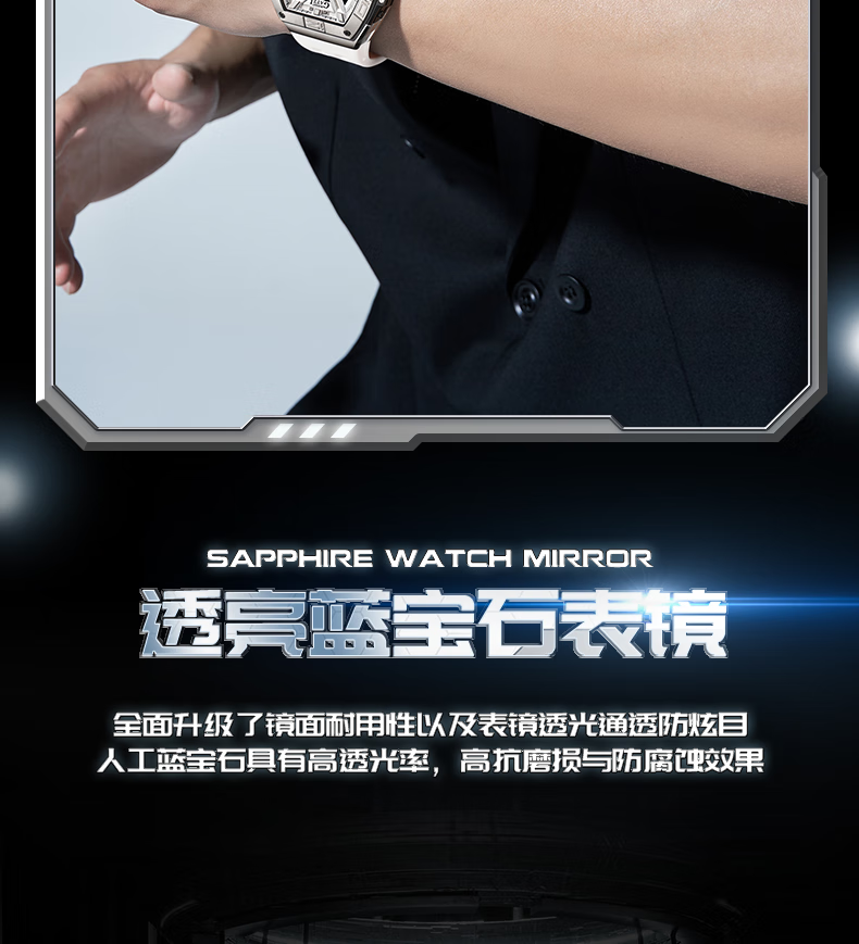 格伦瑞表新款捷克豹按键音乐盒多功能全自动机械表男士手表十大名表 音乐盒银黑皮