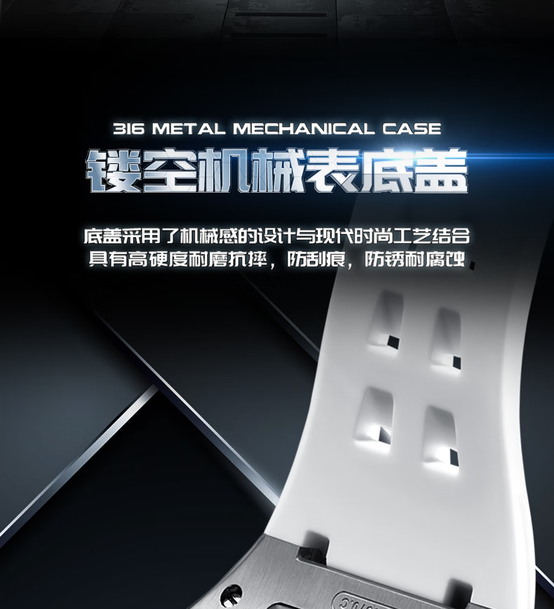 布加迪(BONEST GATTI)手表德国全自动机械表镂空男士腕表钢带款新年情人节礼物送男友 BG8006玫壳白面玫钢带