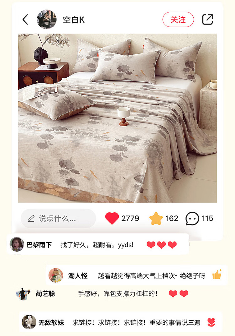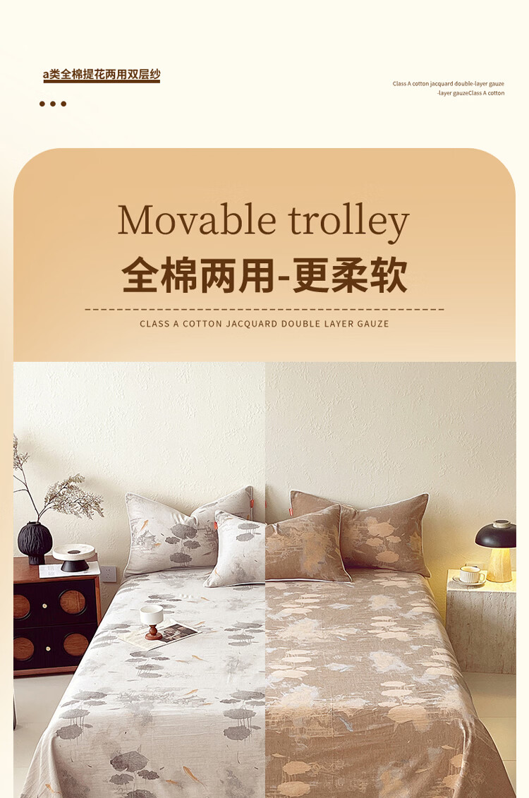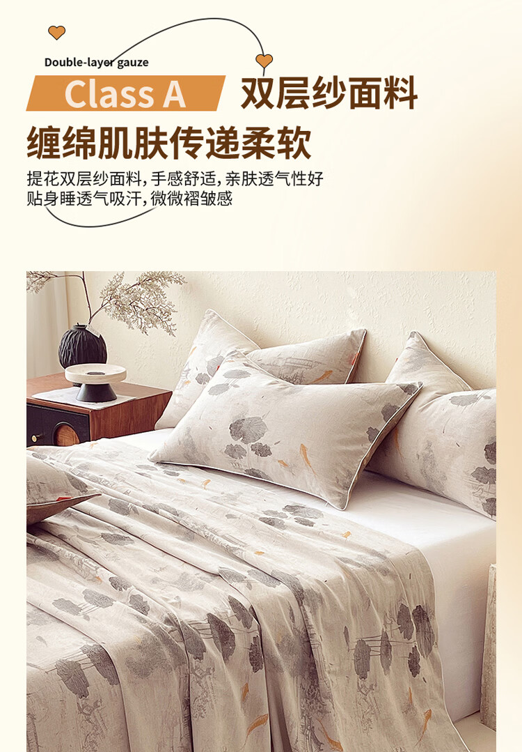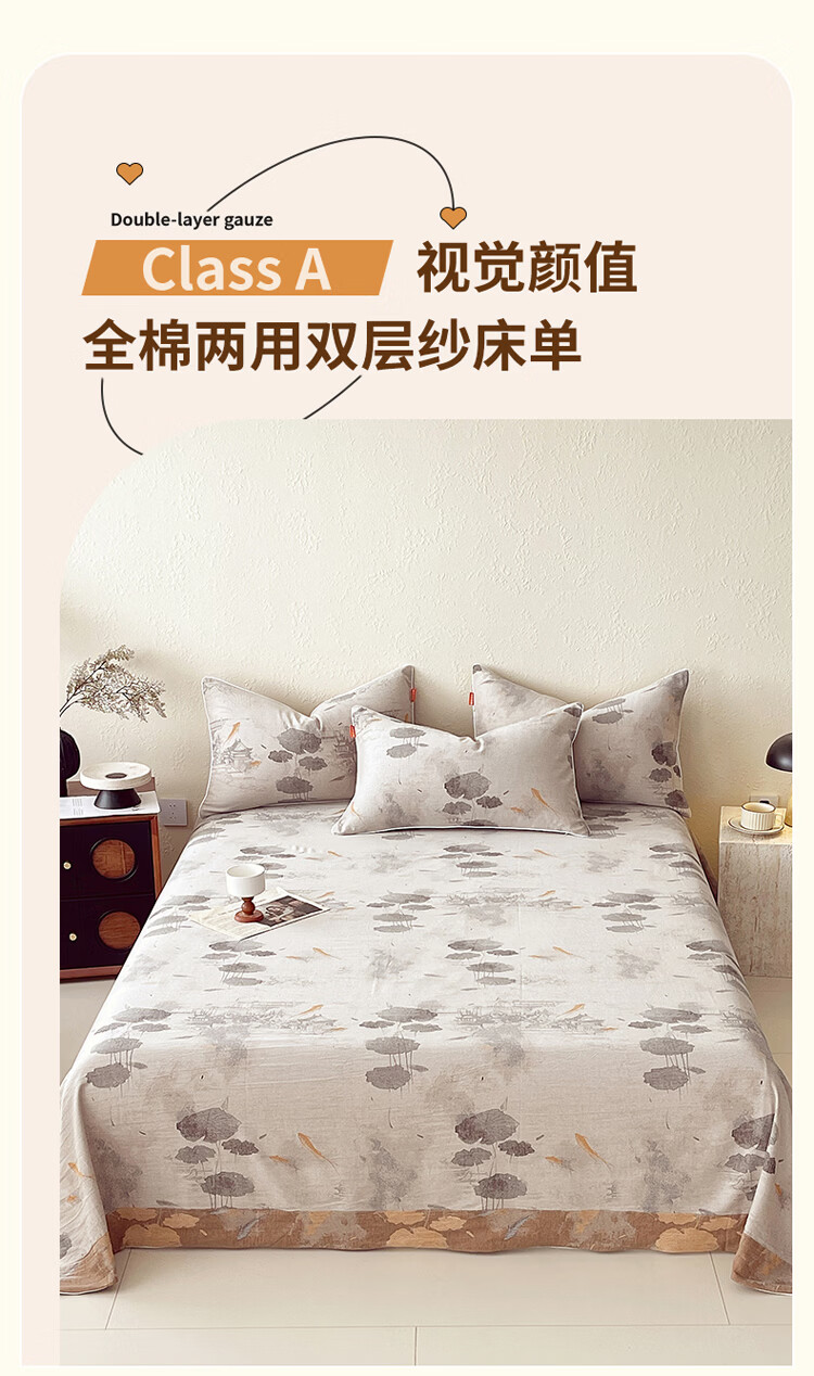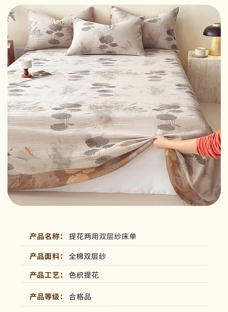 ROLAND LIVE全棉A类提花双层纱单床单正反两用单双人床床单单件亲肤透气 CW 全棉双层纱单床单-荷芷 单床单160*230cm