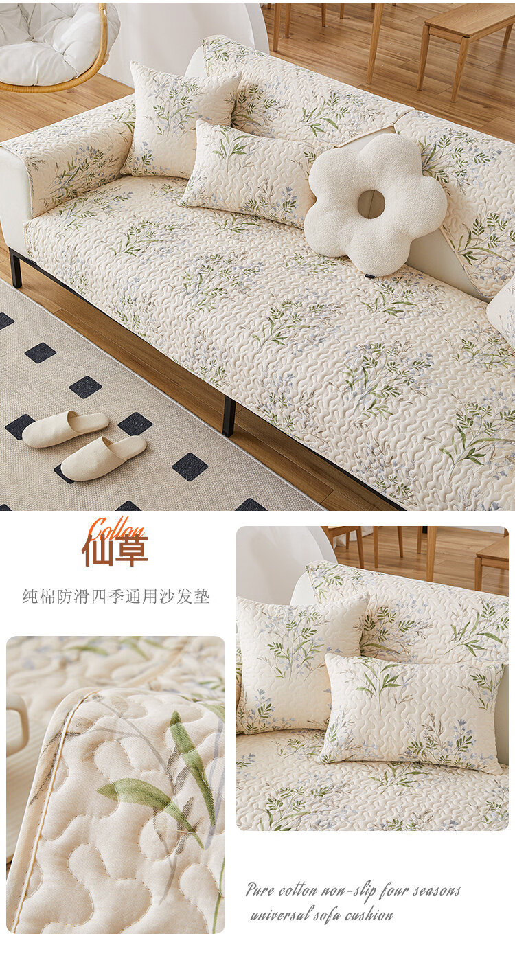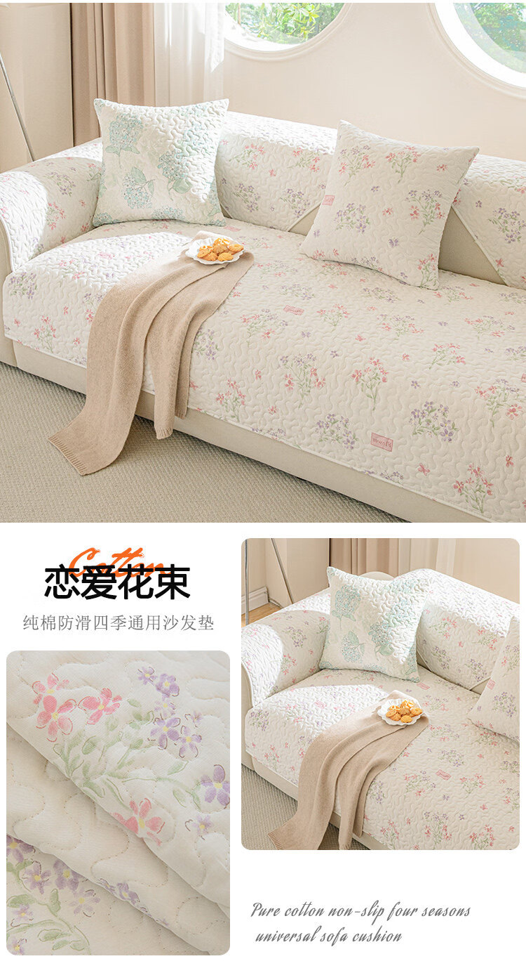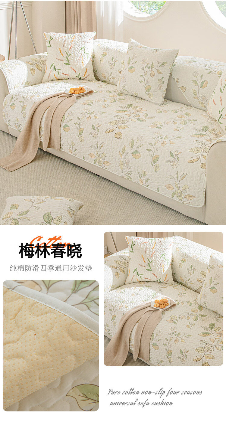 正圣纯棉全棉沙发垫四季通用防滑2026年新款直排小清新沙发坐垫盖布 梅林春晓 定做(凑金额)不支持退换