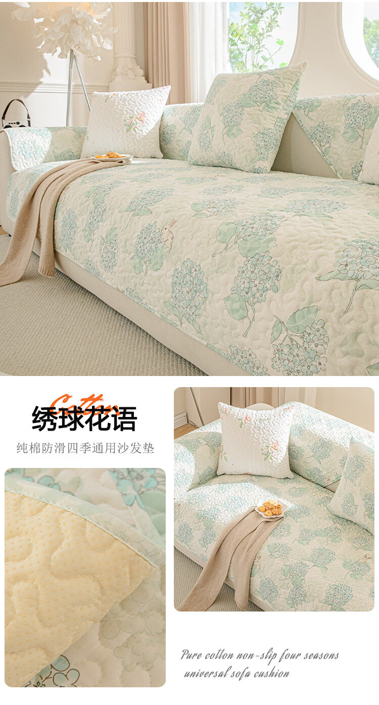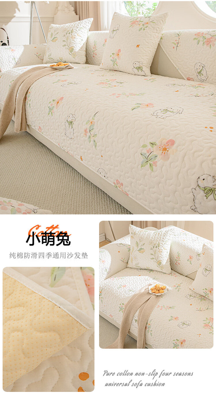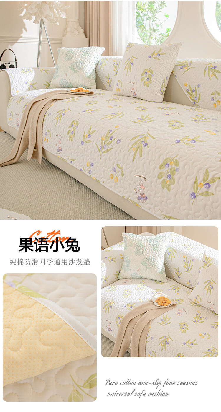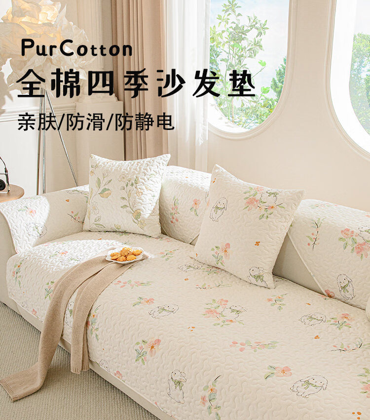 正圣纯棉全棉沙发垫四季通用防滑2026年新款直排小清新沙发坐垫盖布 梅林春晓 定做(凑金额)不支持退换