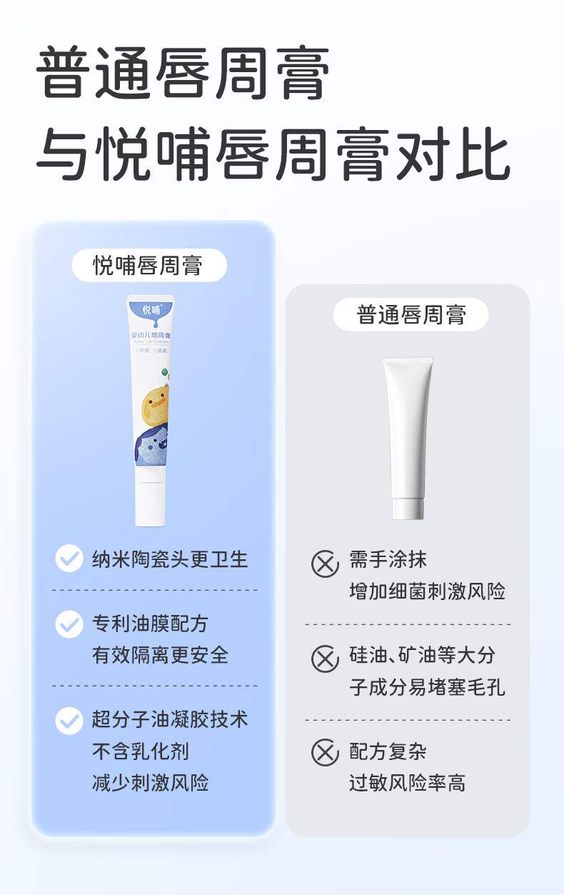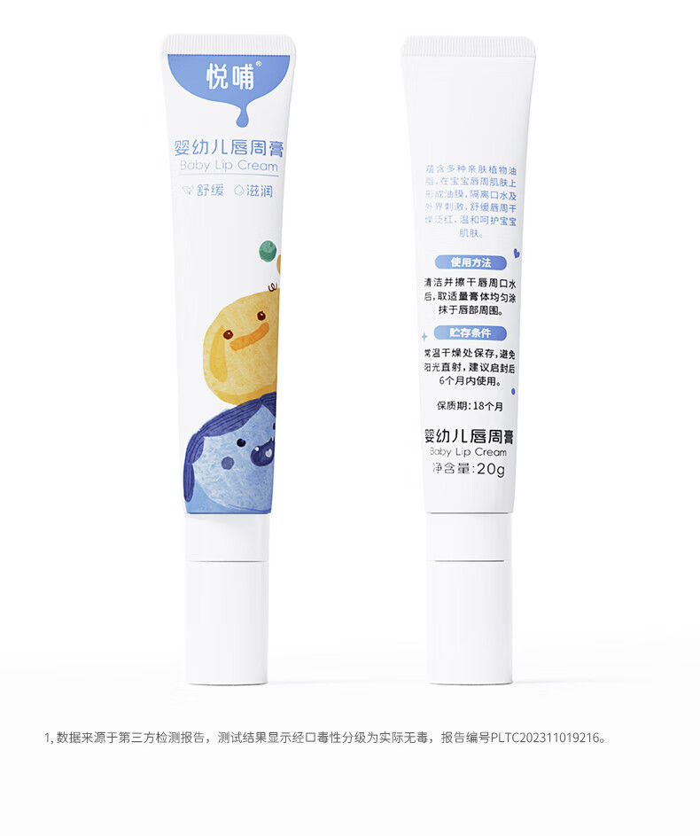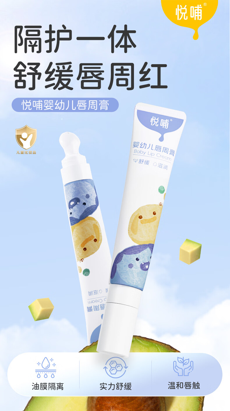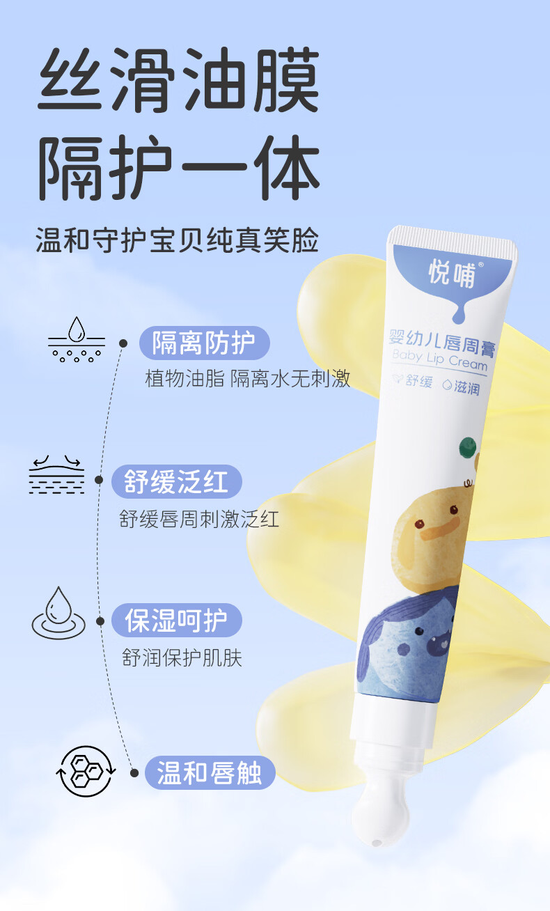 悦哺婴儿唇周口水膏 宝宝嘴部滋润护唇膏润肤舒缓霜非疹膏新生儿可用 唇周膏 20g*2支