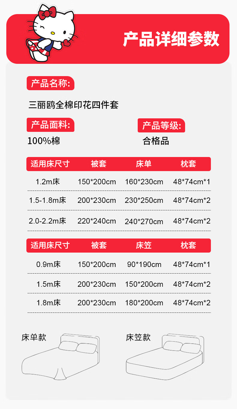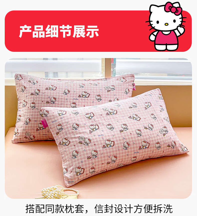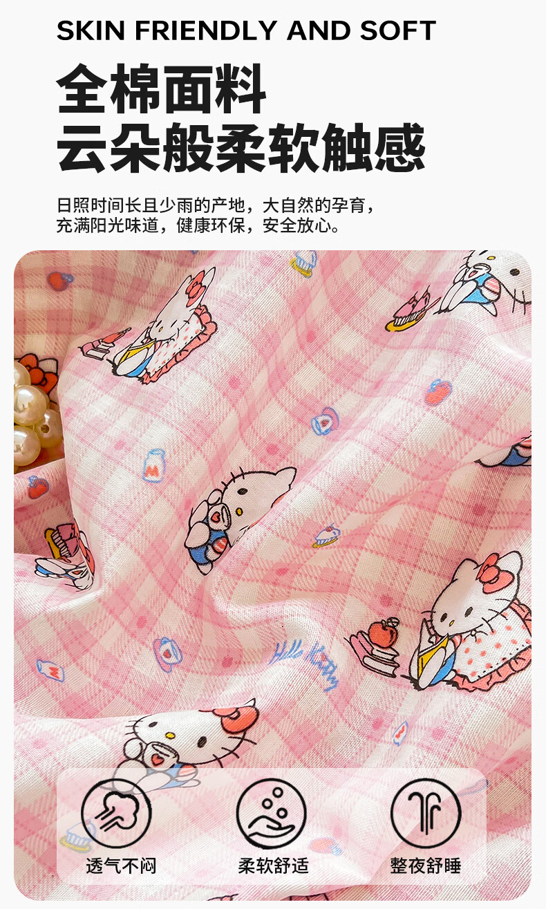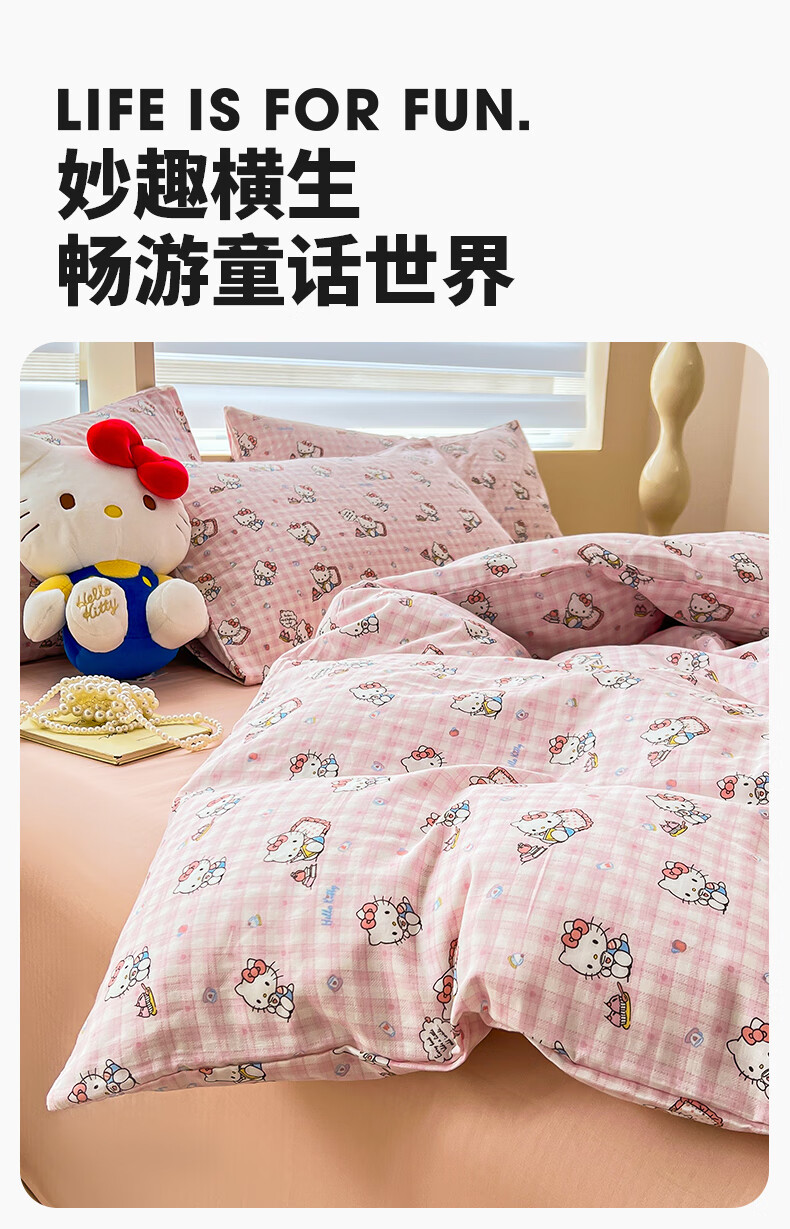 名创优品三丽鸥纯棉床上四件套 全棉床单被套罩床笠单双人学生宿舍床品 MINISO-悠闲午后粉 1.2 床单款 三件套(被套150*200cm)