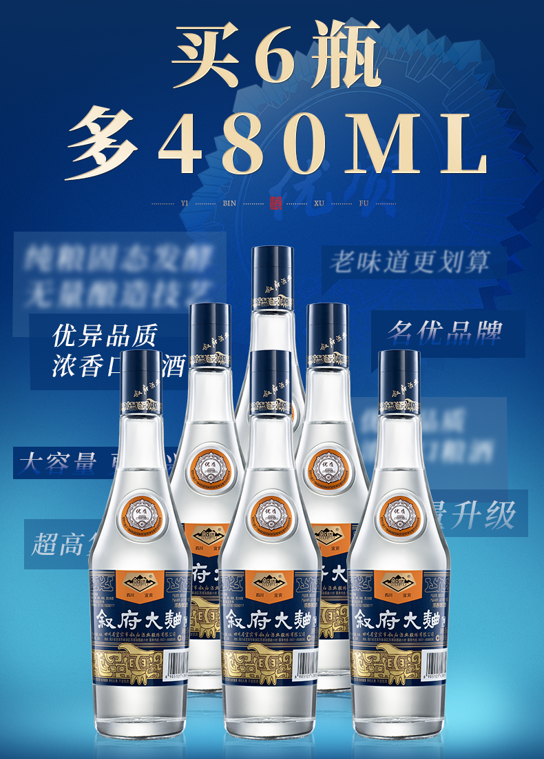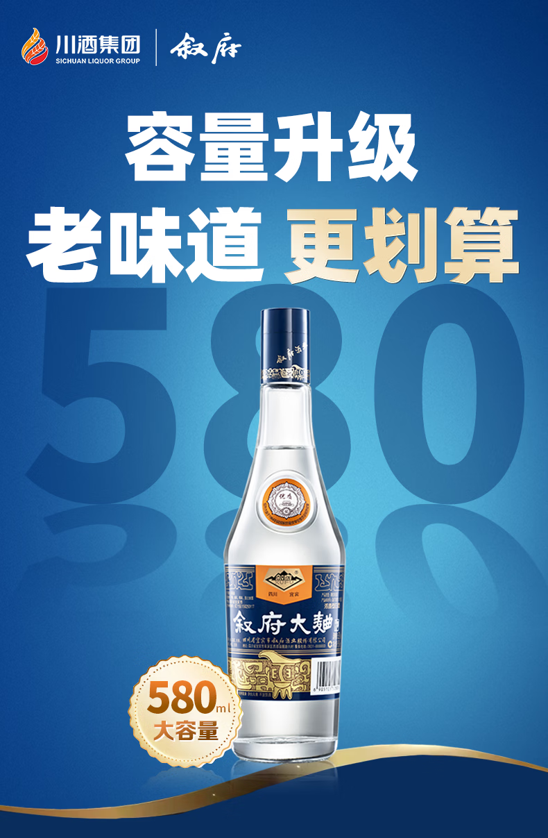 叙府酒 蓝标大曲 五粮浓香型白酒 纯粮食酒 口粮酒 光瓶酒 整箱装 52度 500mL 6瓶 整箱装
