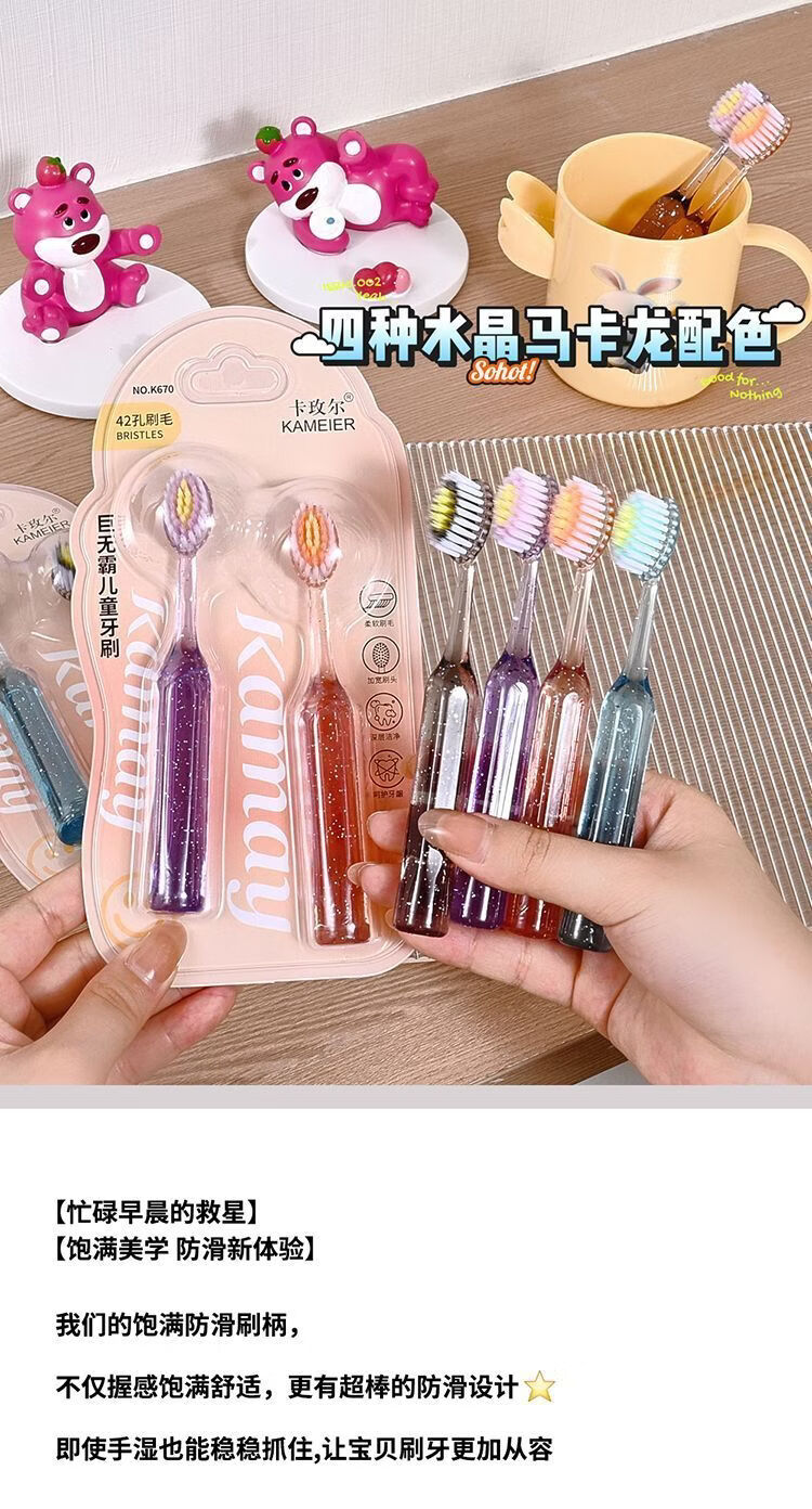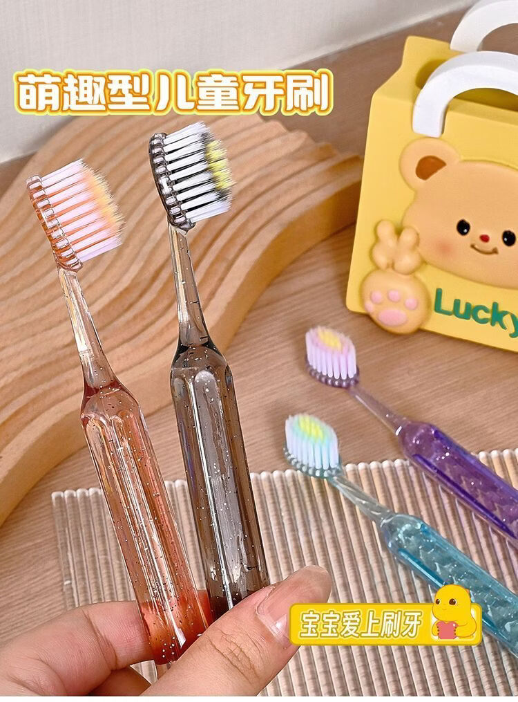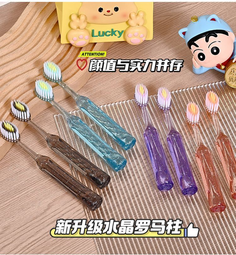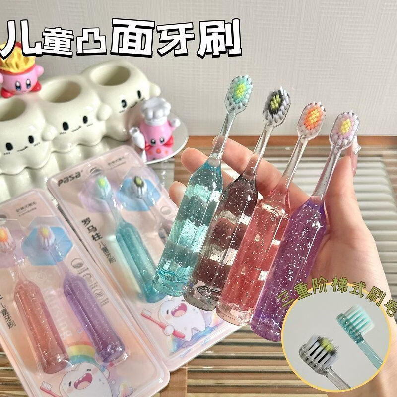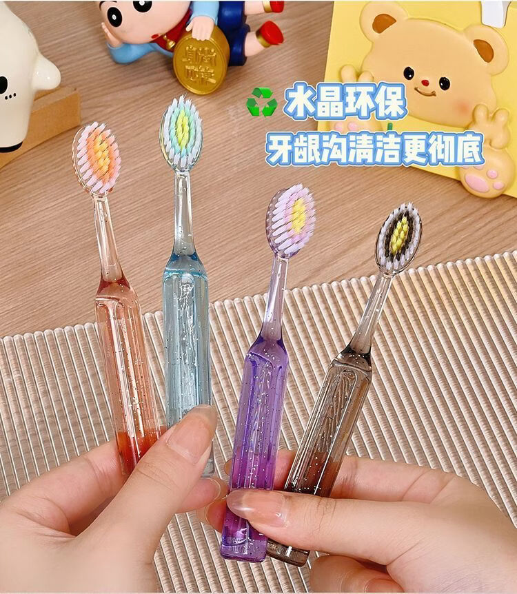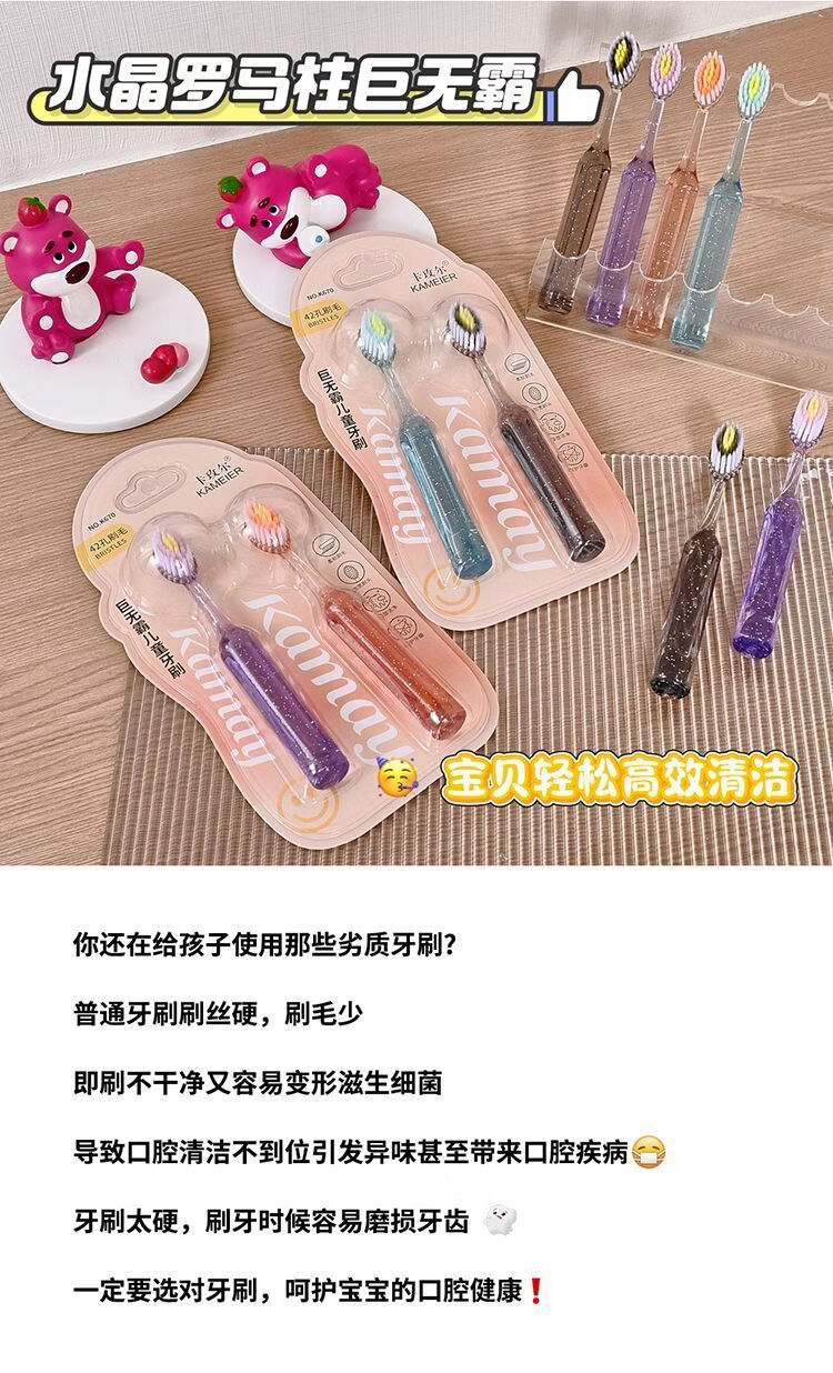 小红书同款水晶高档新款AA 4支装(缤纷色系) 牙刷3-12岁儿童水晶罗马柱凸面