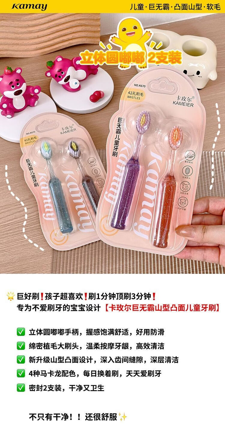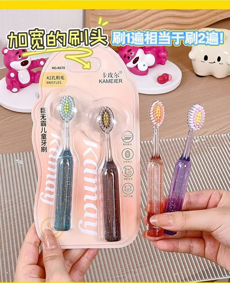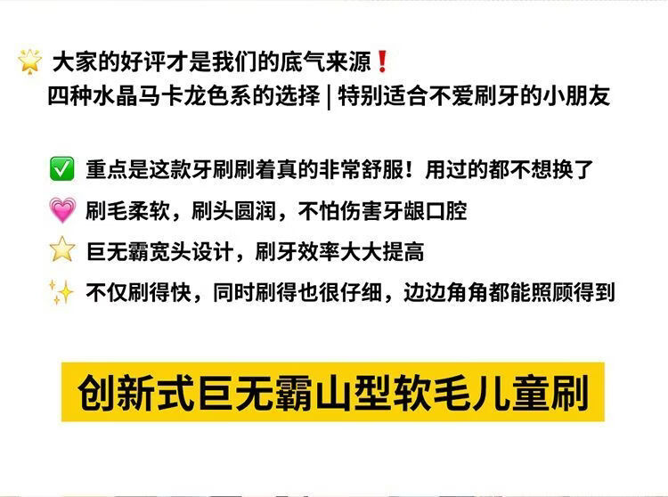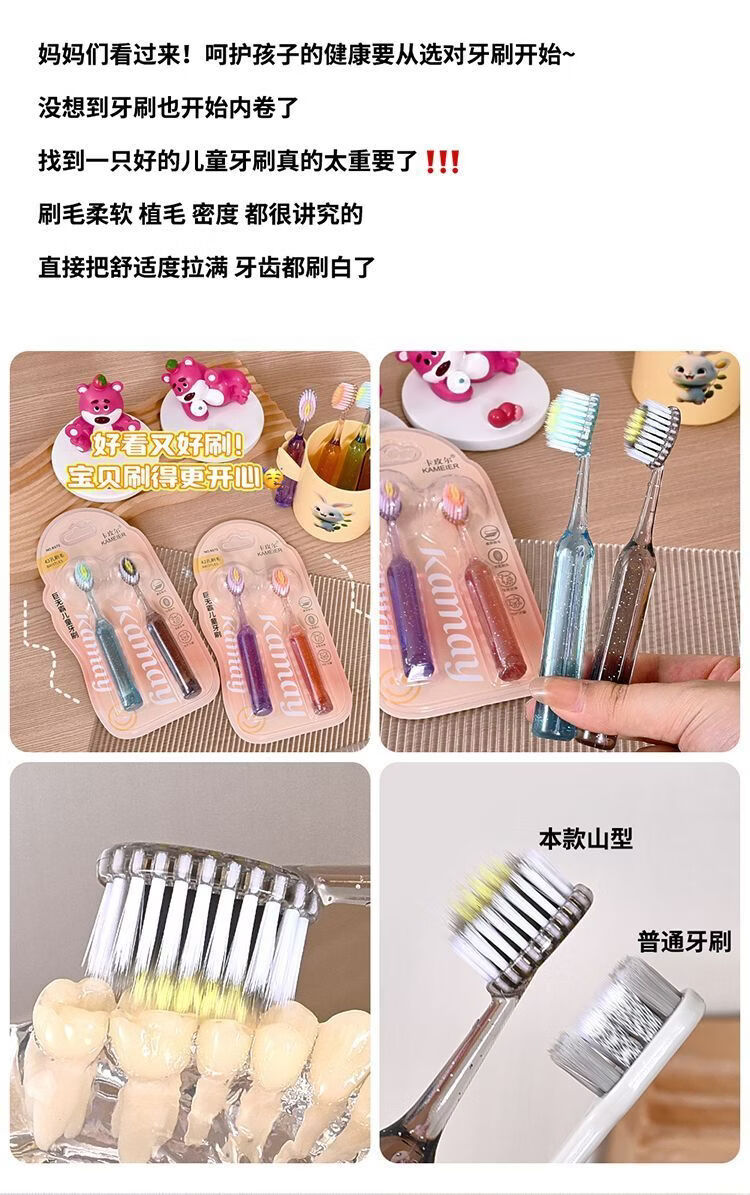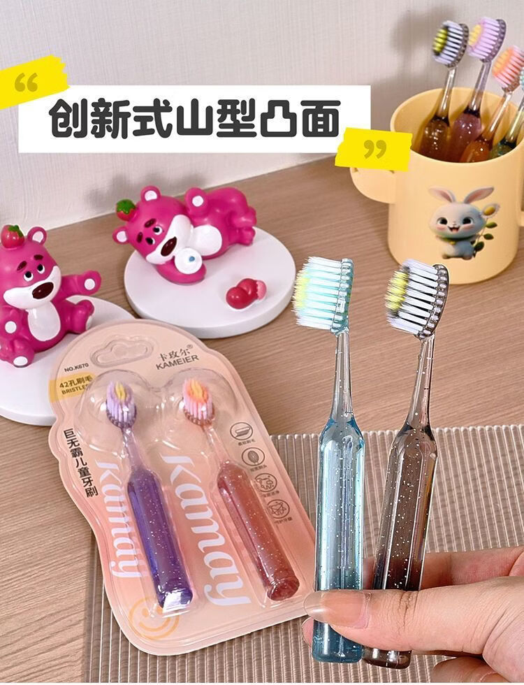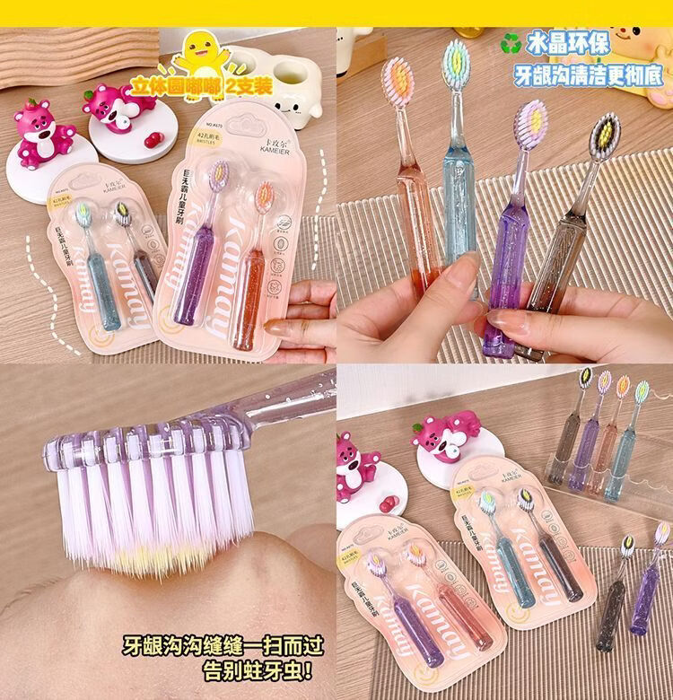 小红书同款水晶高档新款AA 4支装(缤纷色系) 牙刷3-12岁儿童水晶罗马柱凸面