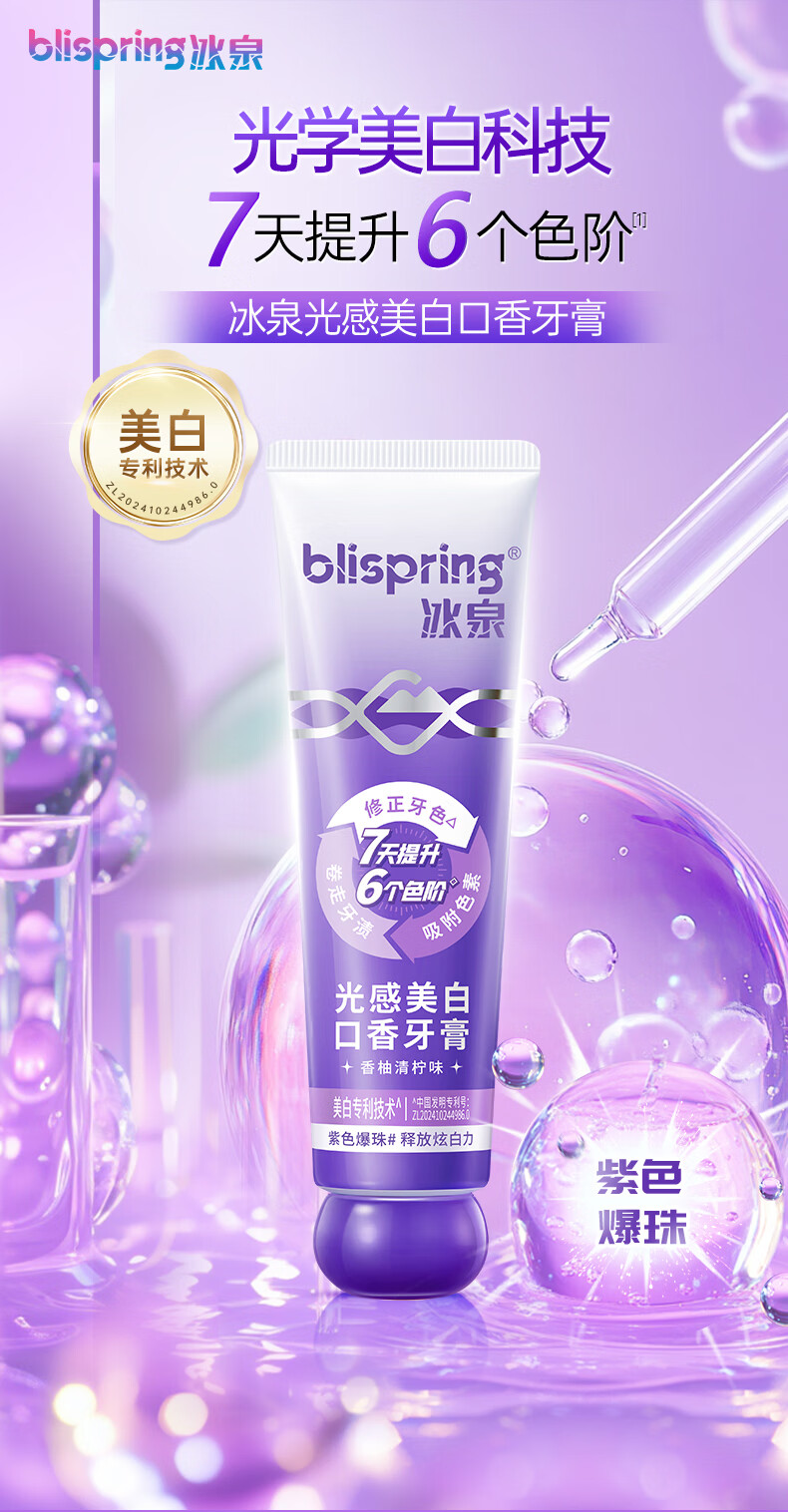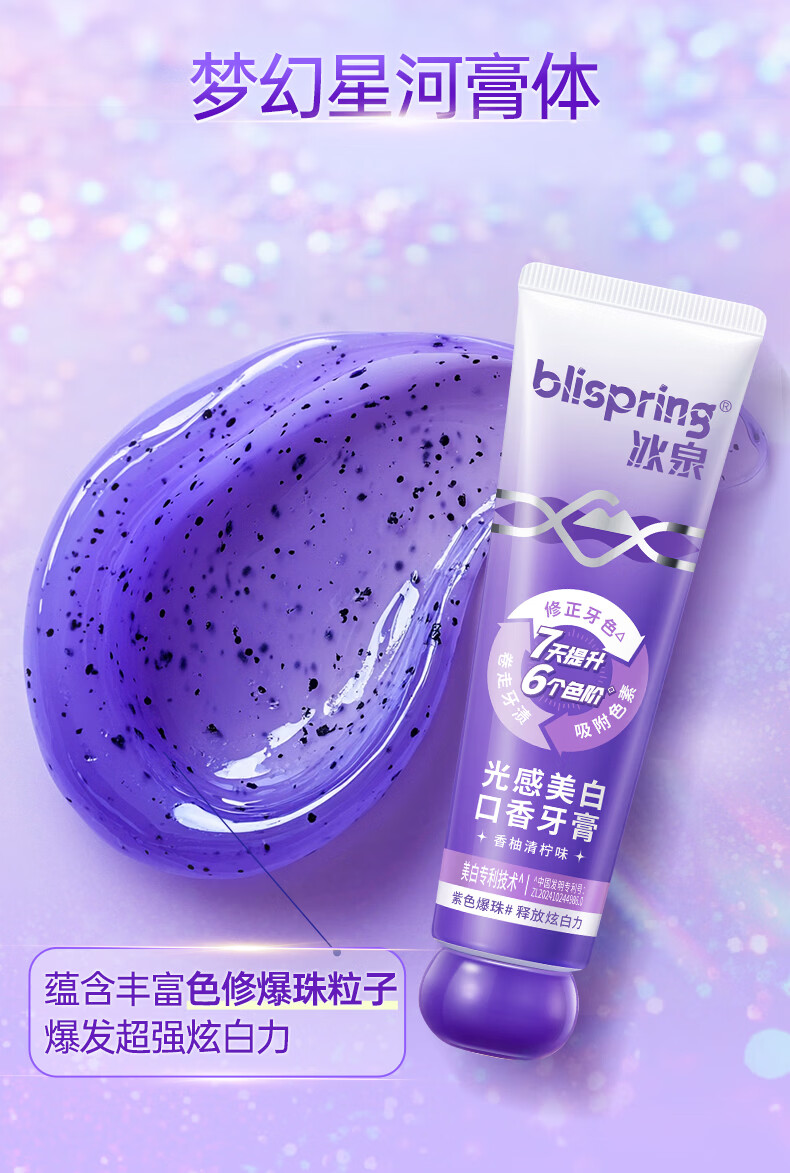 冰泉(blispring)色修光感美白口香牙膏去牙渍牙黄去口臭口气 【拍1到手9件】色修100g*2+旅行装50g*4+牙刷*3