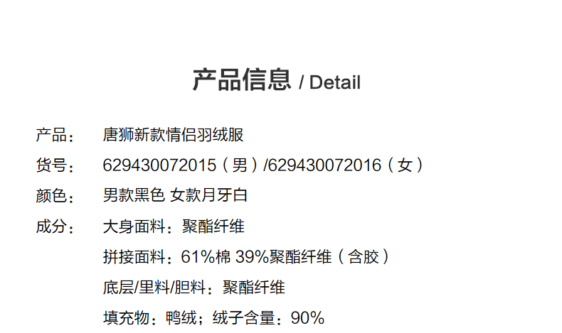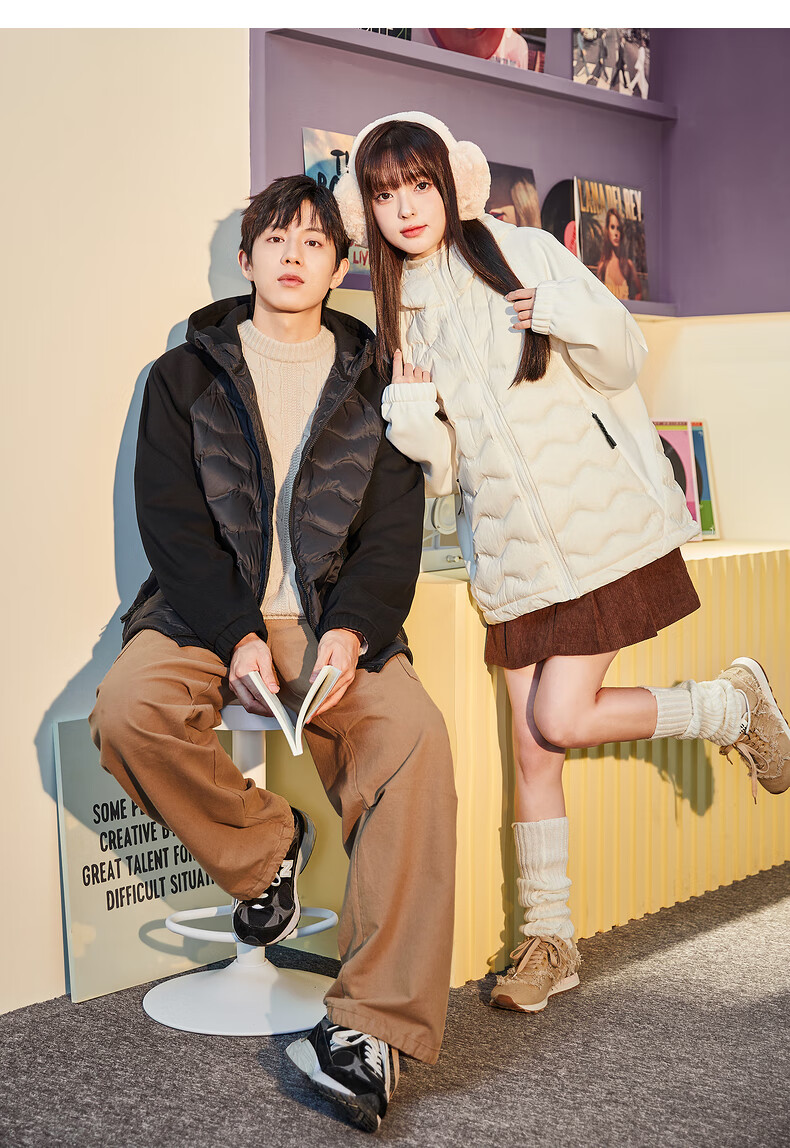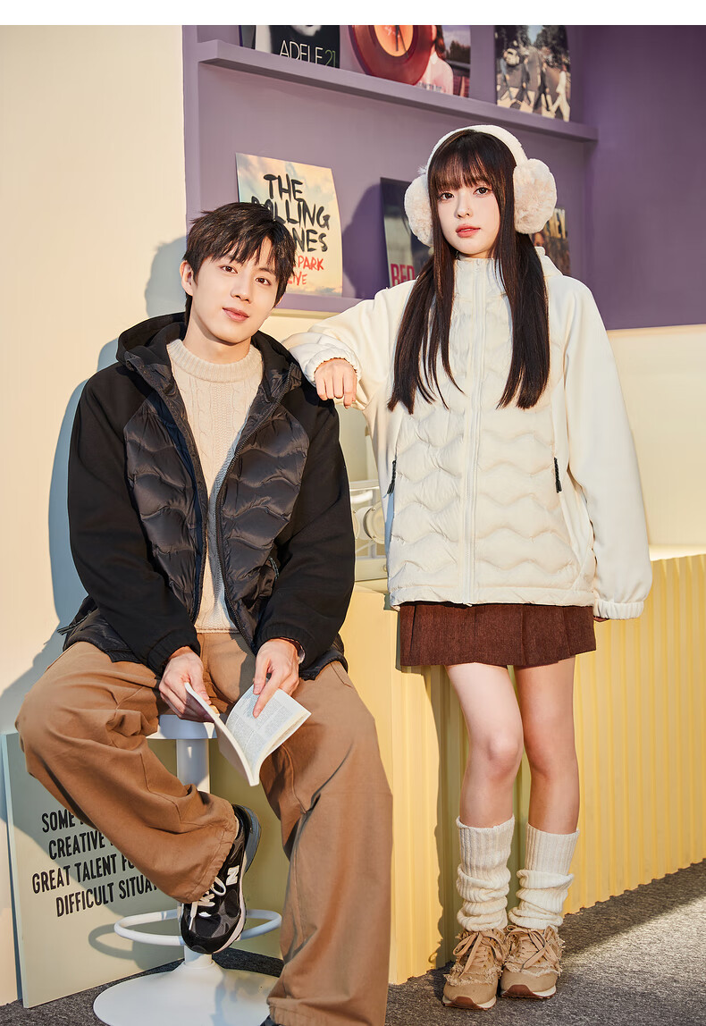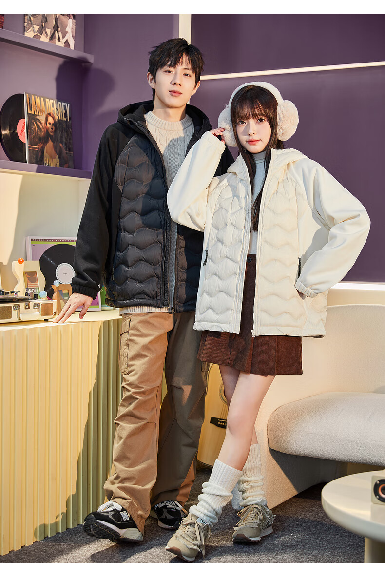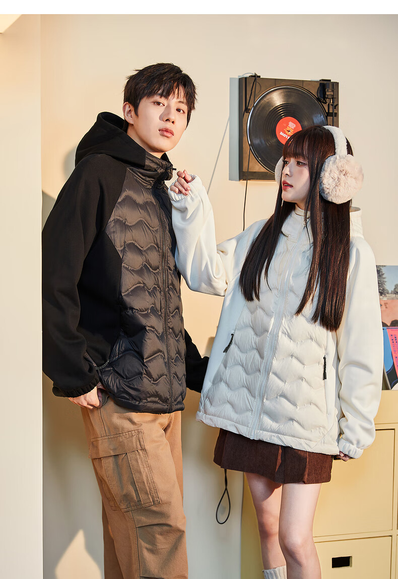 唐狮冬季新款情侣羽绒服轻薄连帽针织拼接外套TB 男款黑色 2XL