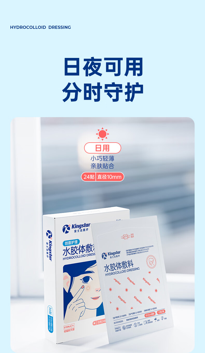 金士达医用水胶体痘痘贴36贴/盒 隐形防水透气日夜两用吸收渗液 【舒适隐形】10mm&12mm净痘贴36贴/盒