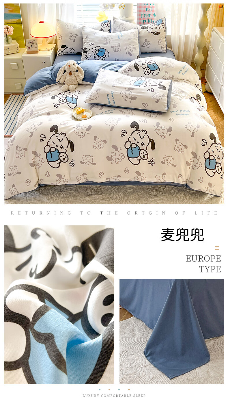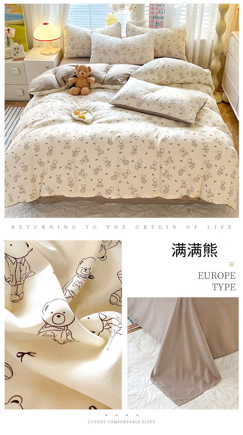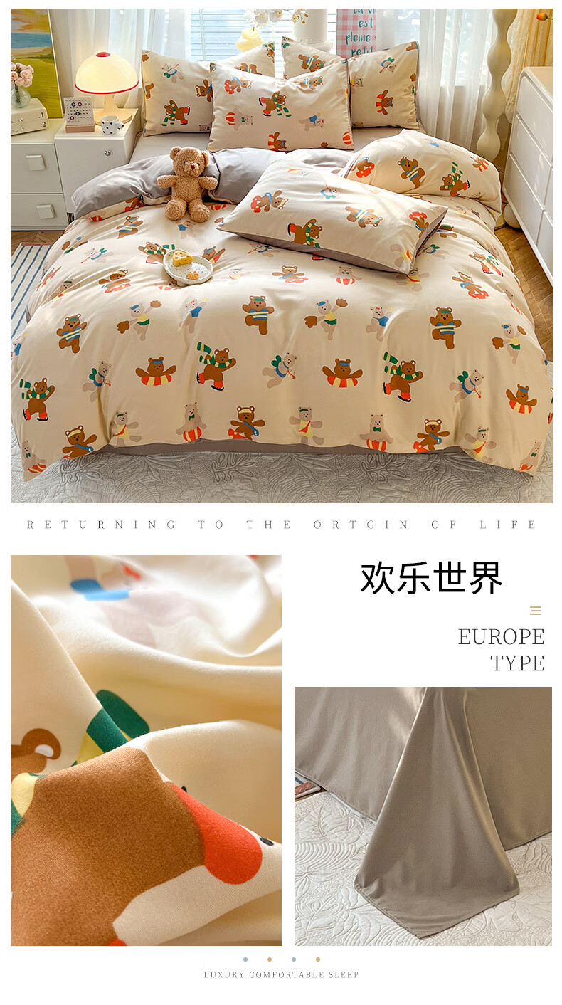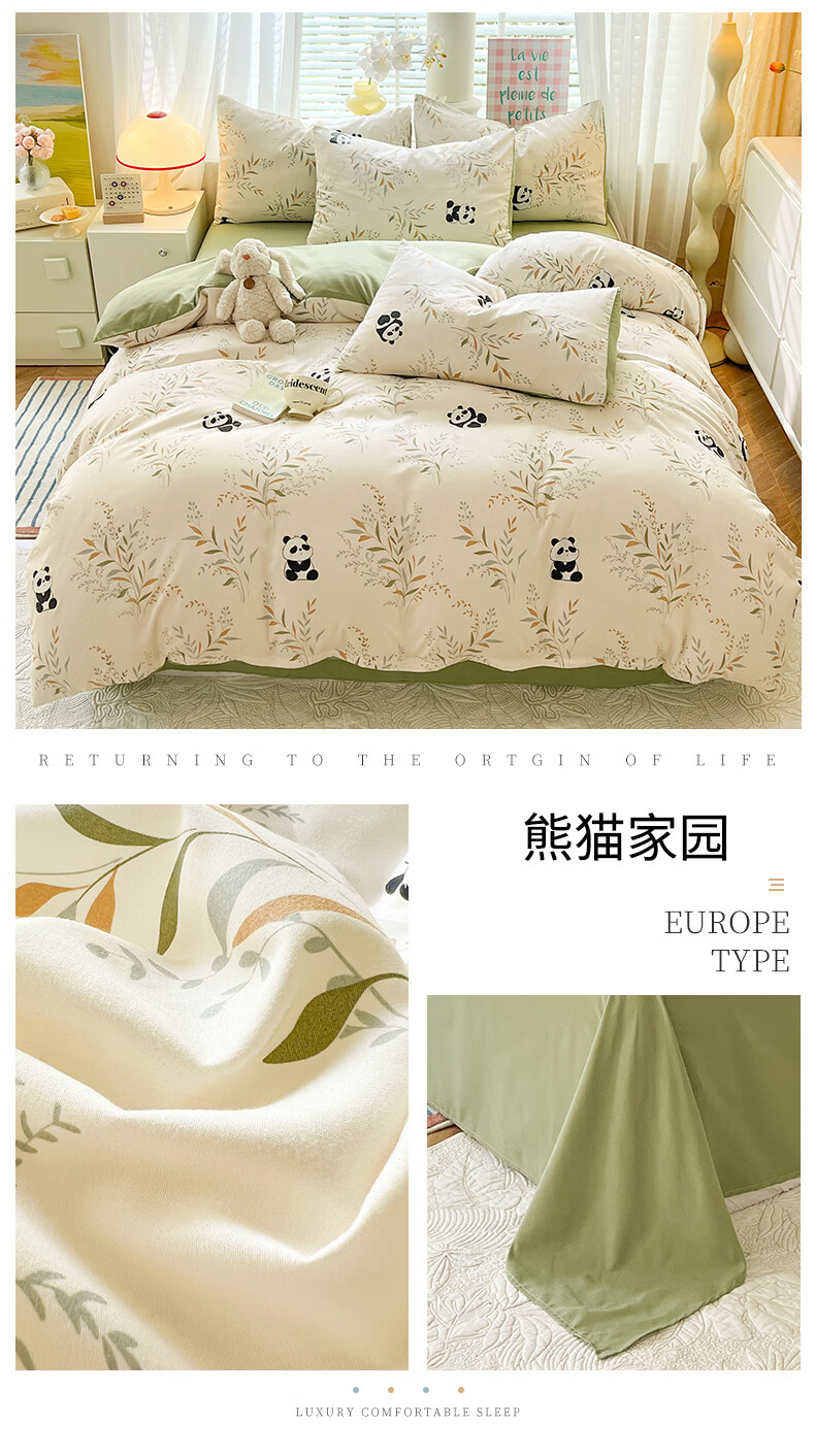 浪莎(LangSha)水洗棉床上四件套亲肤双层纱床单被罩套床笠款学生宿舍三件套床品 熊猫家园 床单款 单被套-150*200cm