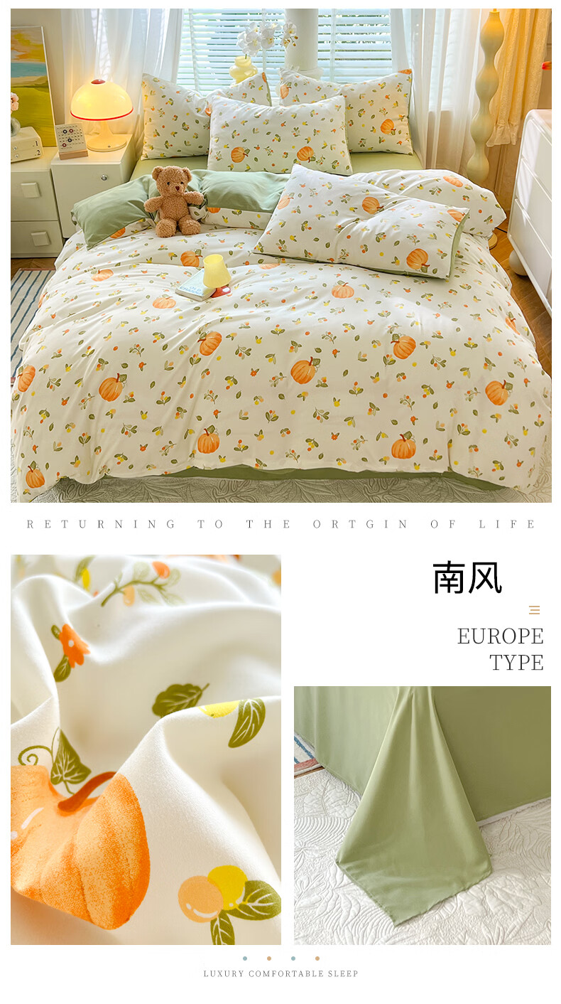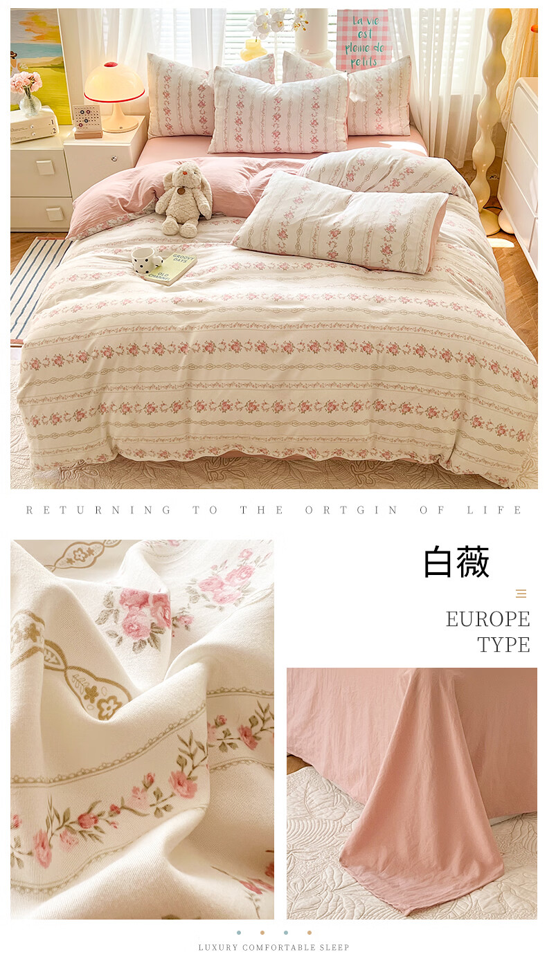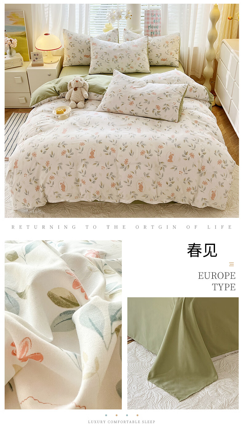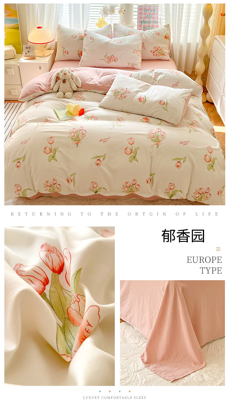 浪莎(LangSha)水洗棉床上四件套亲肤双层纱床单被罩套床笠款学生宿舍三件套床品 熊猫家园 床单款 单被套-150*200cm