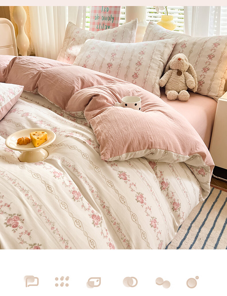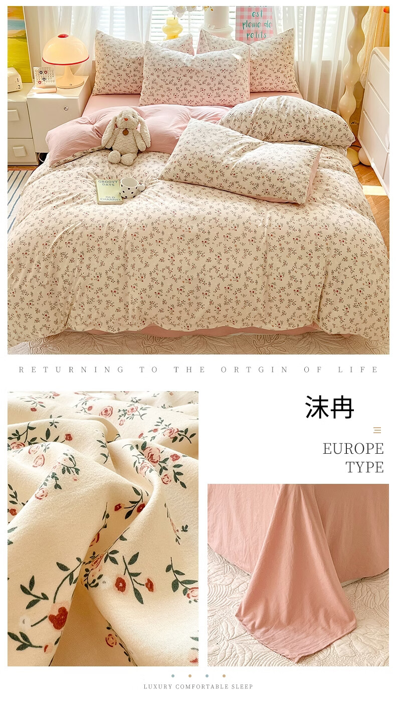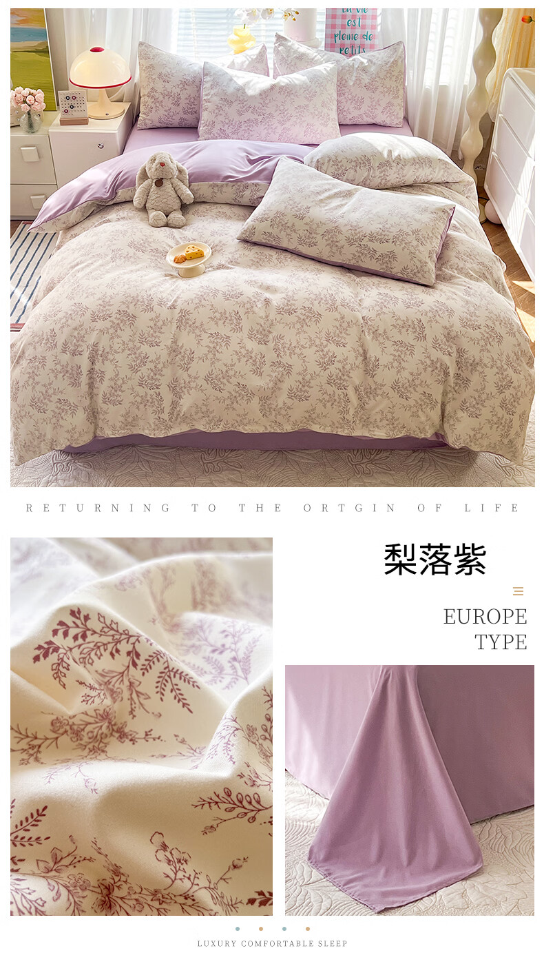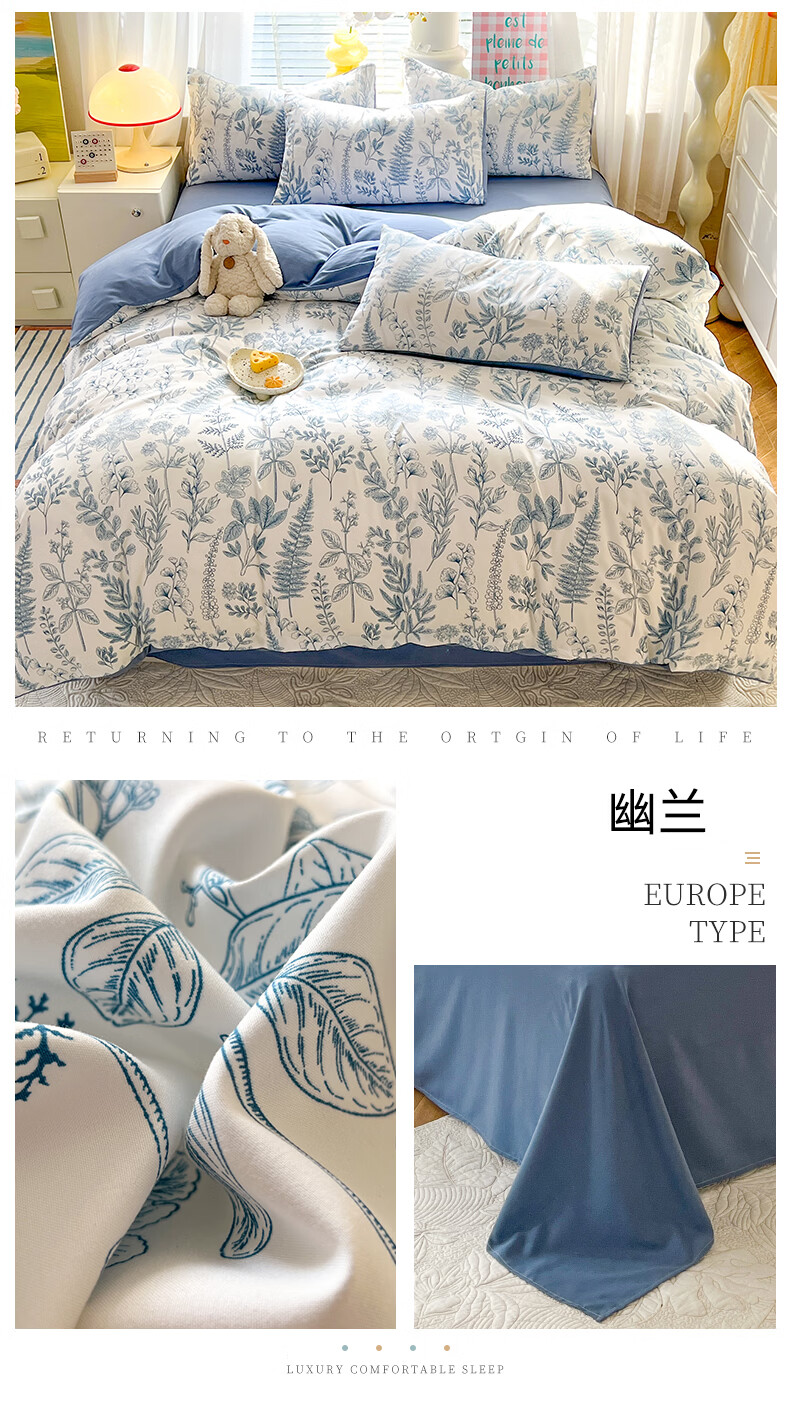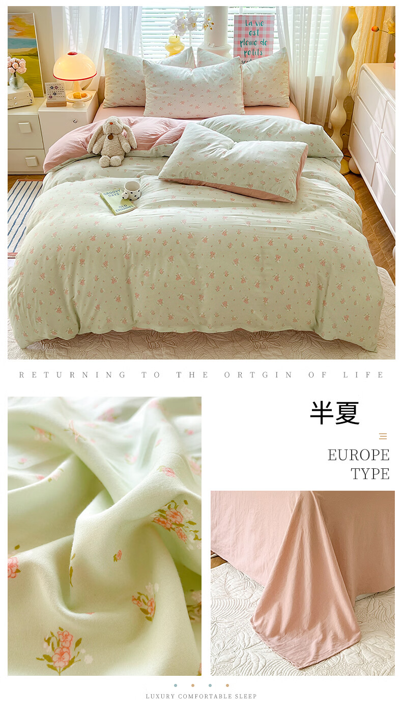 浪莎(LangSha)水洗棉床上四件套亲肤双层纱床单被罩套床笠款学生宿舍三件套床品 熊猫家园 床单款 单被套-150*200cm