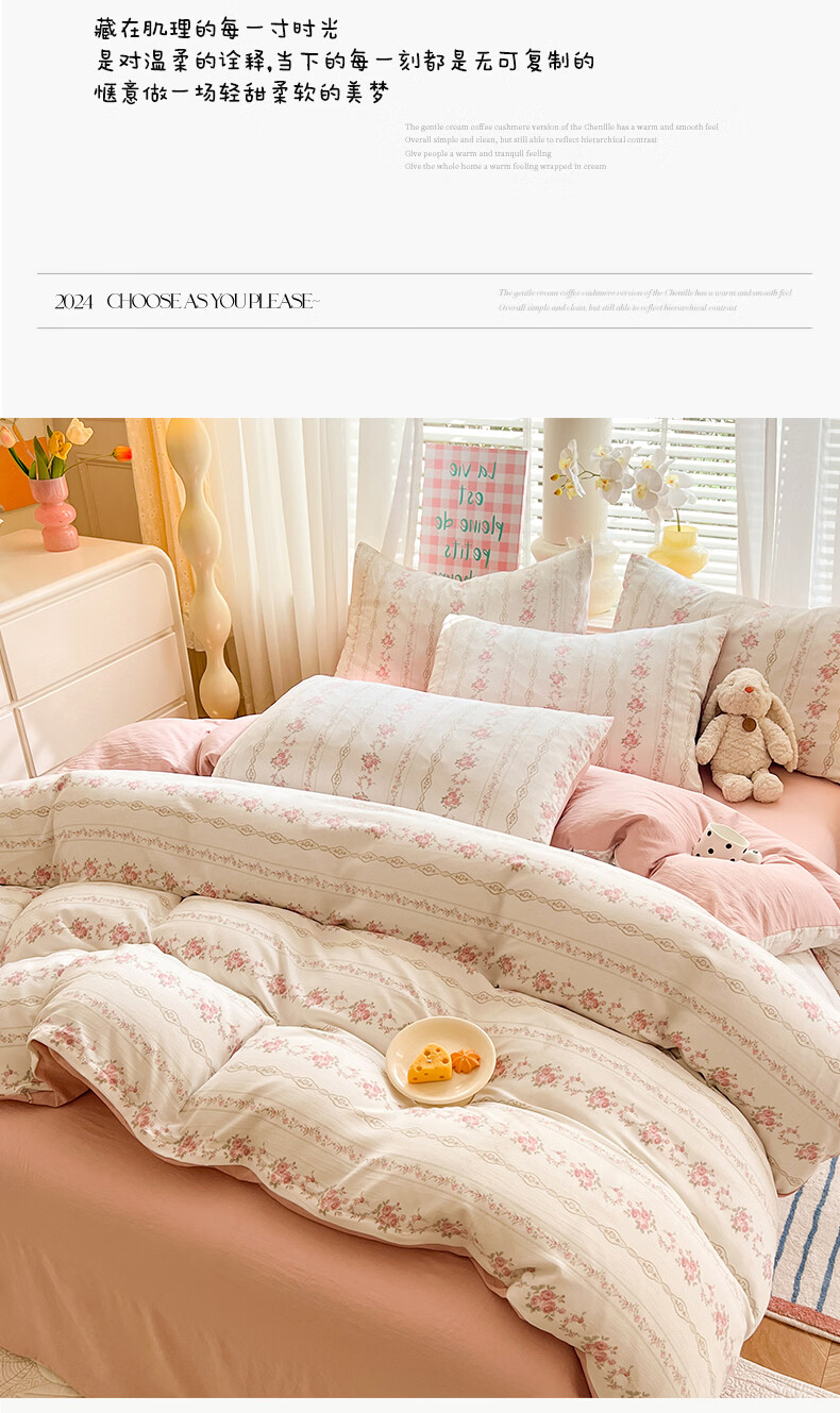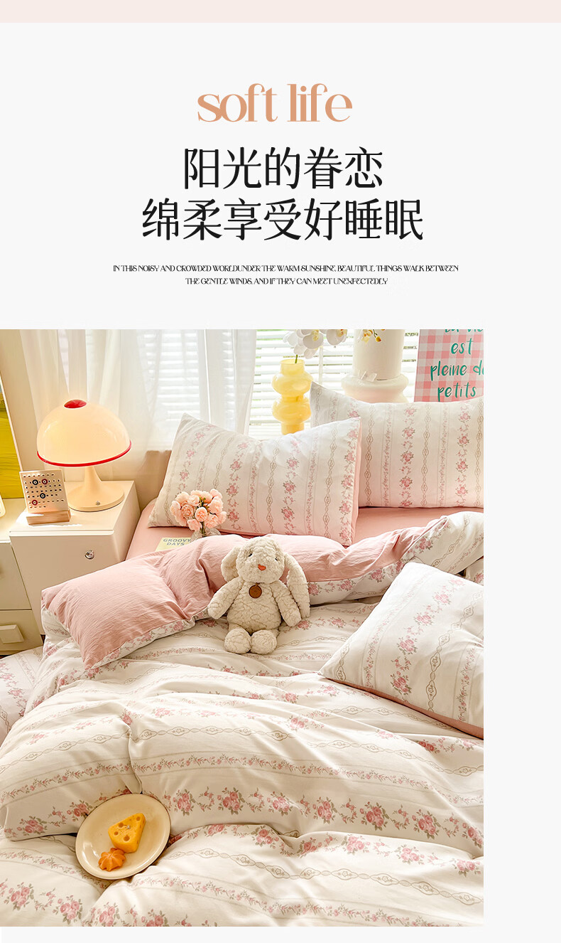水星家纺甜格软萌长绒棉印花床笠 甜格软萌长绒棉印花床笠 195cm*120cm