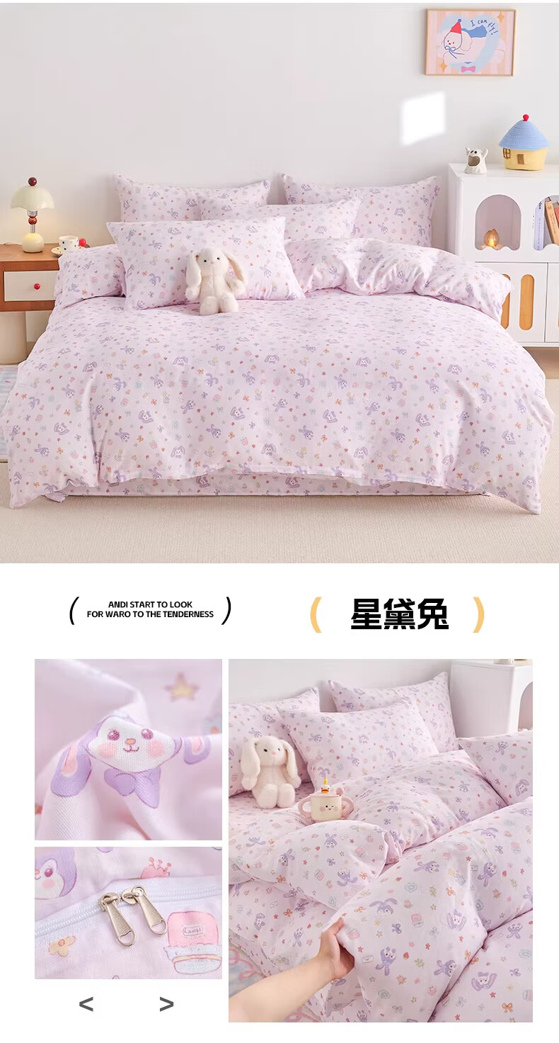 苏萱公主风爱心兔兔全棉四件套少女心花边纯棉1.8米被套床单床上用品3 爱丽丝花园 1.8m 床单款 四件套-被套200x230cm