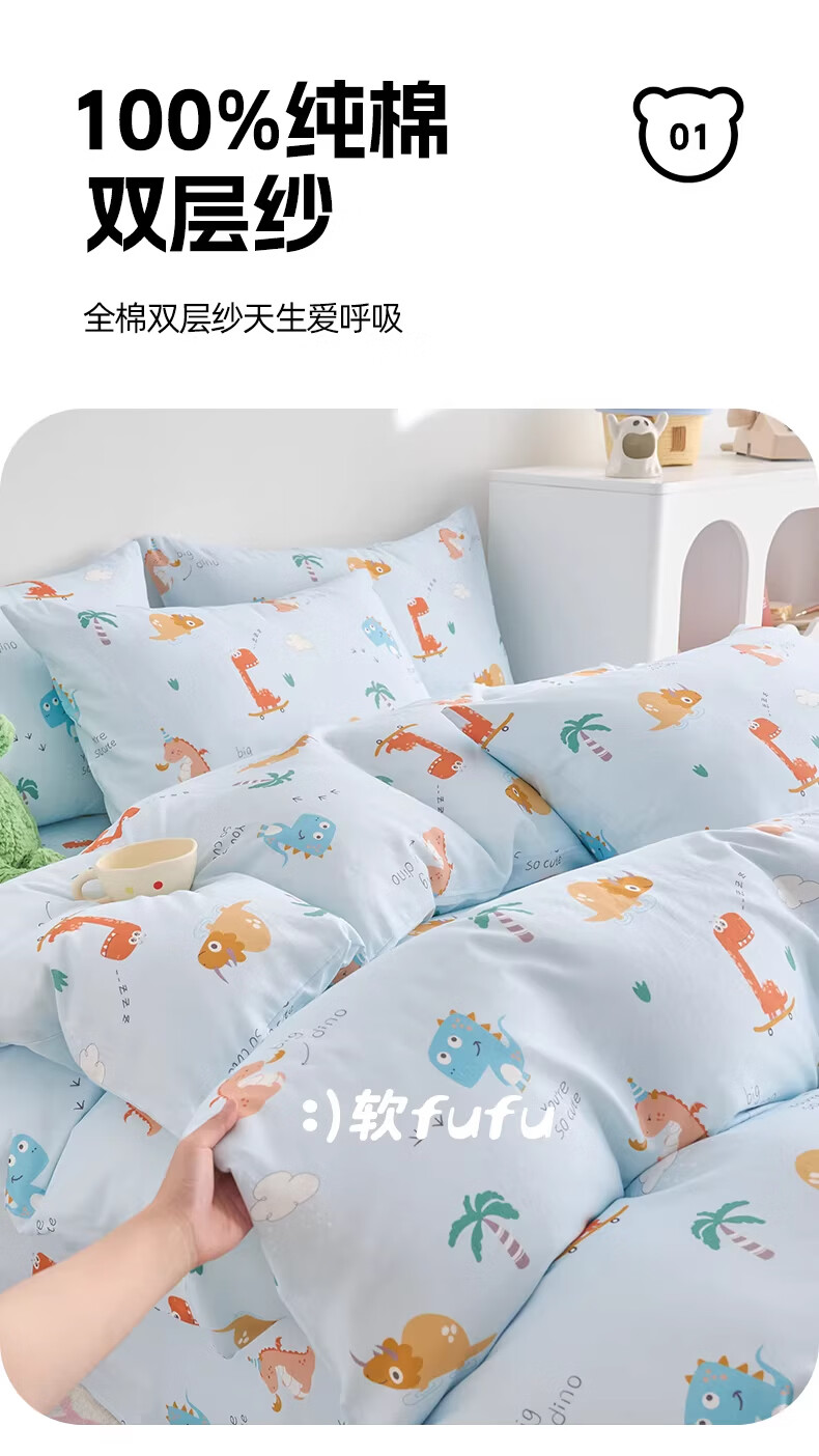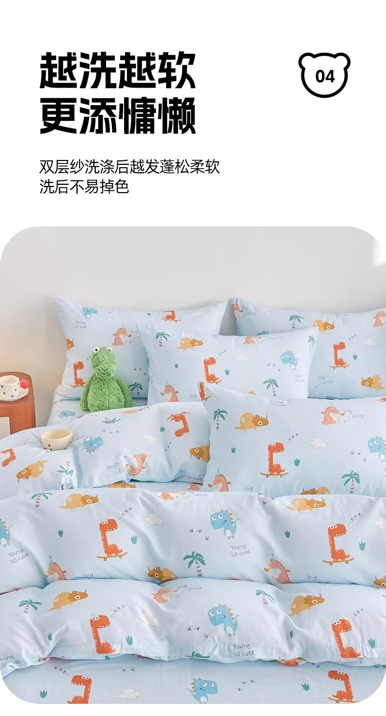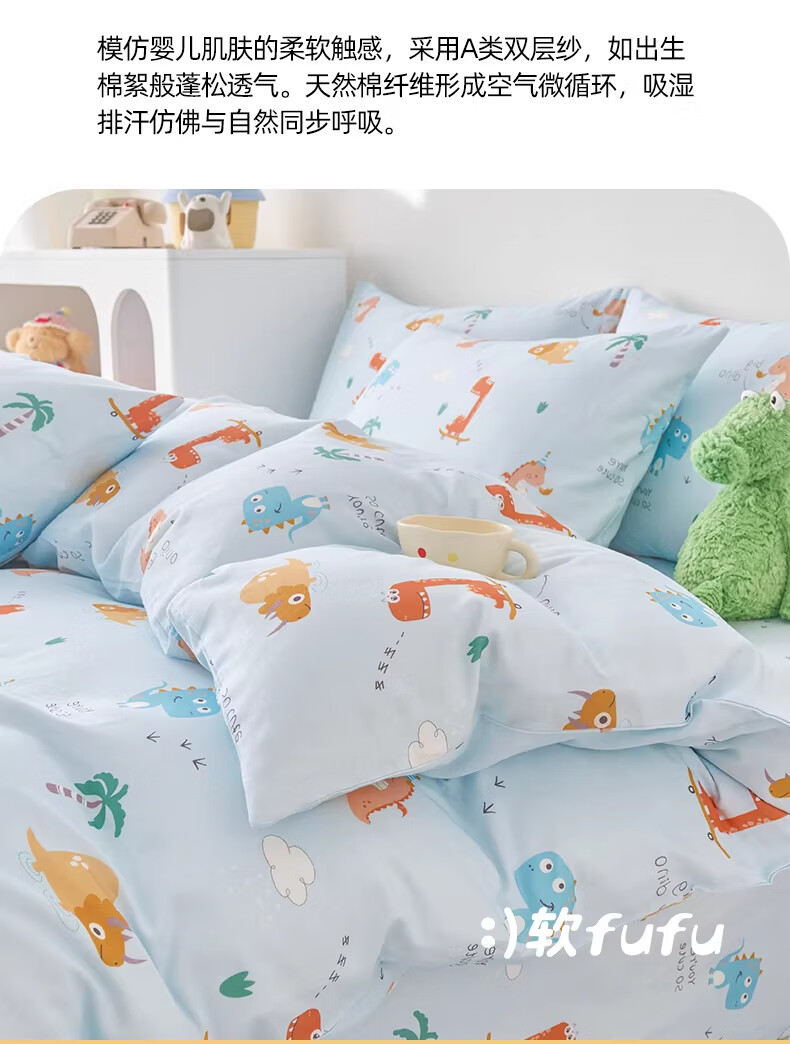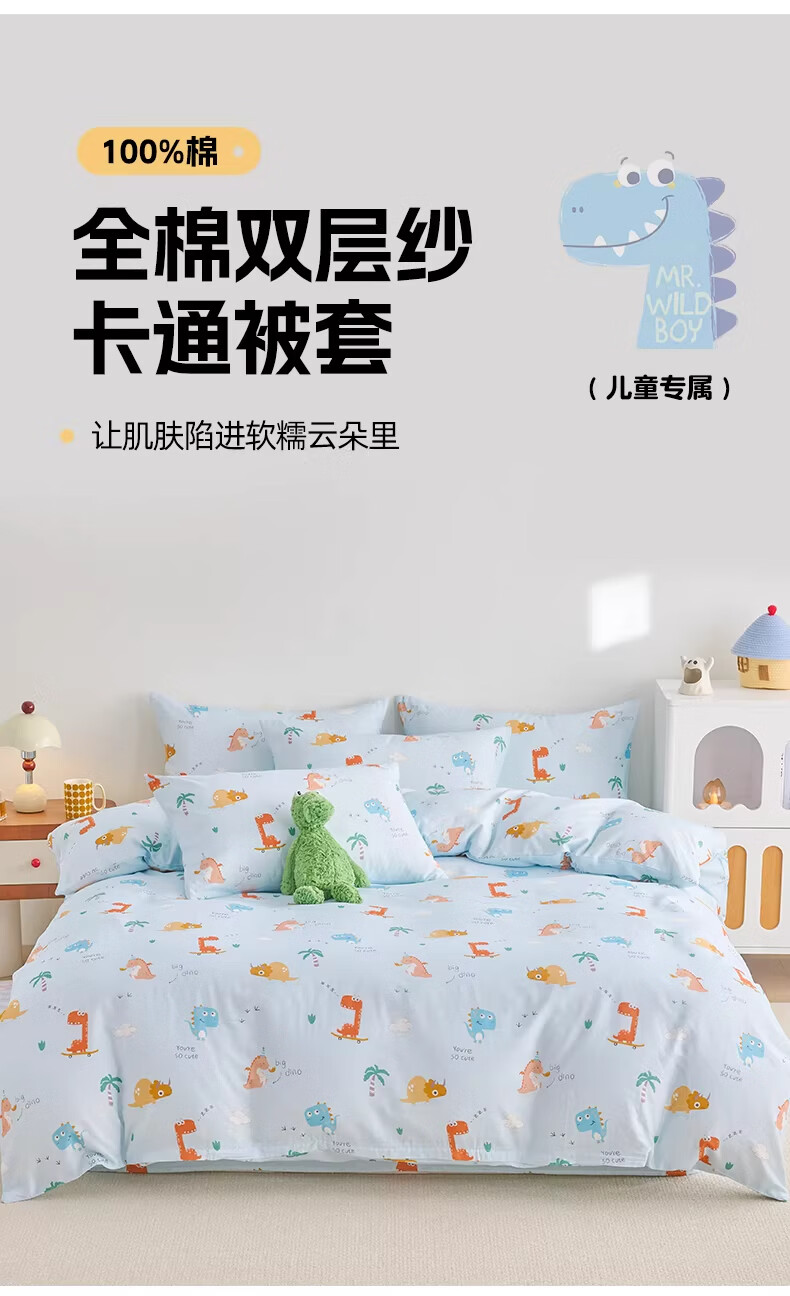 云瑾A类双层纱纯棉儿童被套单件全棉被罩幼儿园男孩女孩被罩 汽车狗蓝(A类亲肤,柔软透气) 200x230cm【双人被套单件】