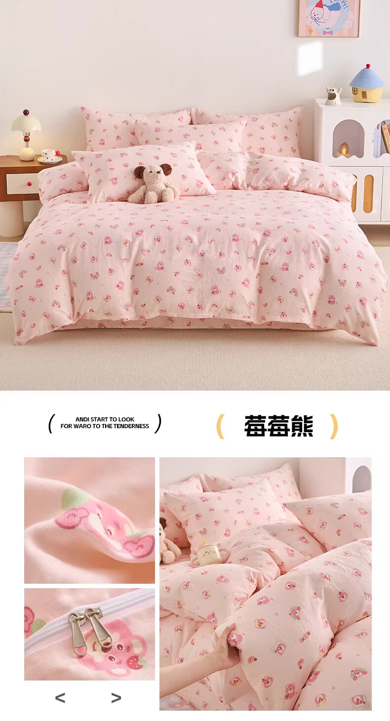 苏萱ins粉色波点纯棉床上四件套全棉毛球款被套床单1.8米少女公寓床品 海派甜心 1.8m 床单款 四件套-被套200x230cm