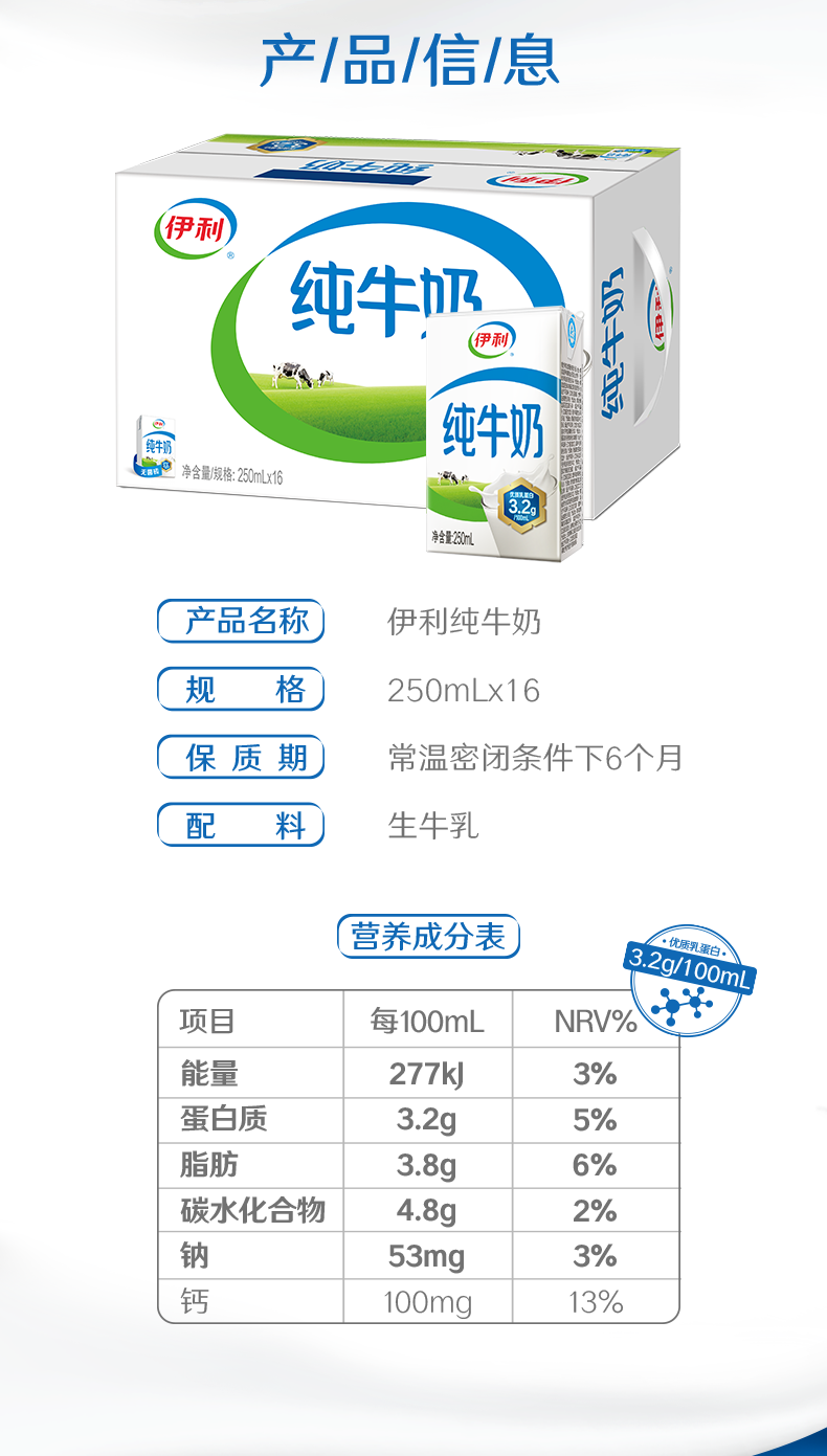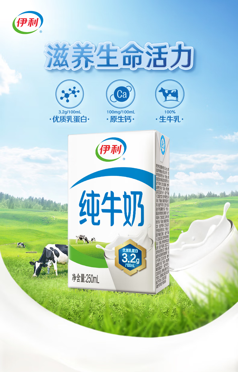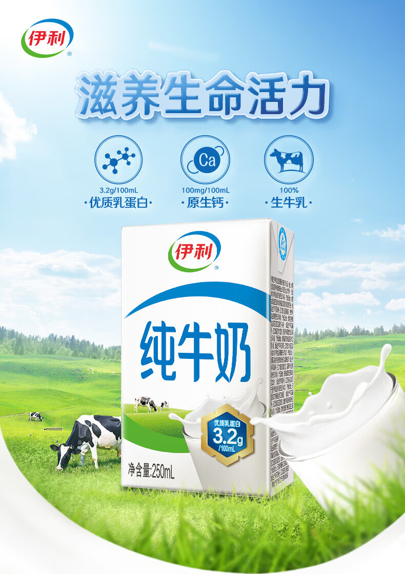 伊利纯牛奶系列 全脂营养乳蛋白 营养细化 多种规格可选 年货礼盒 【更小规格】纯牛奶200ml*24盒 部分11月产
