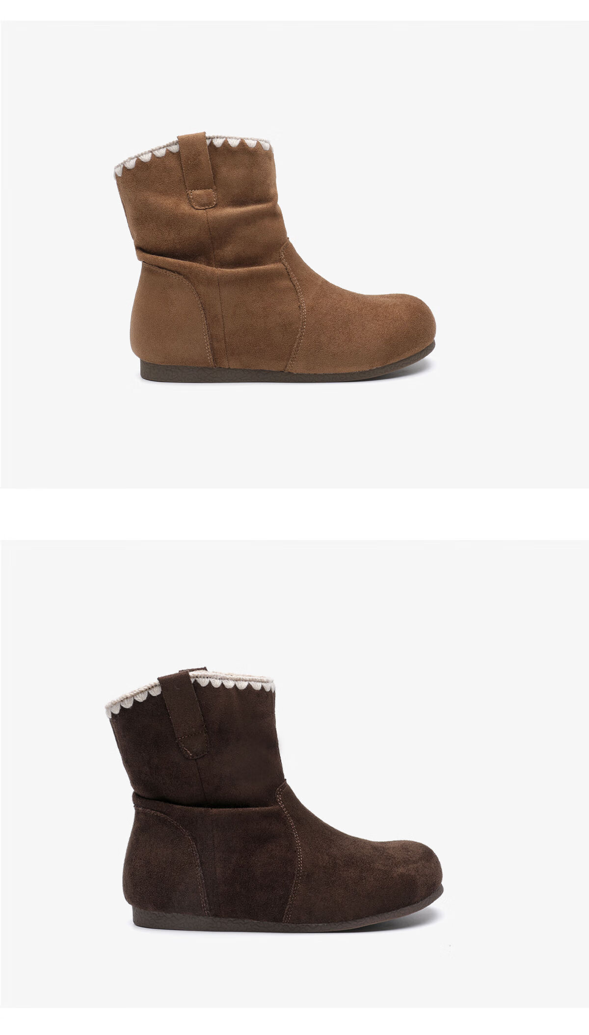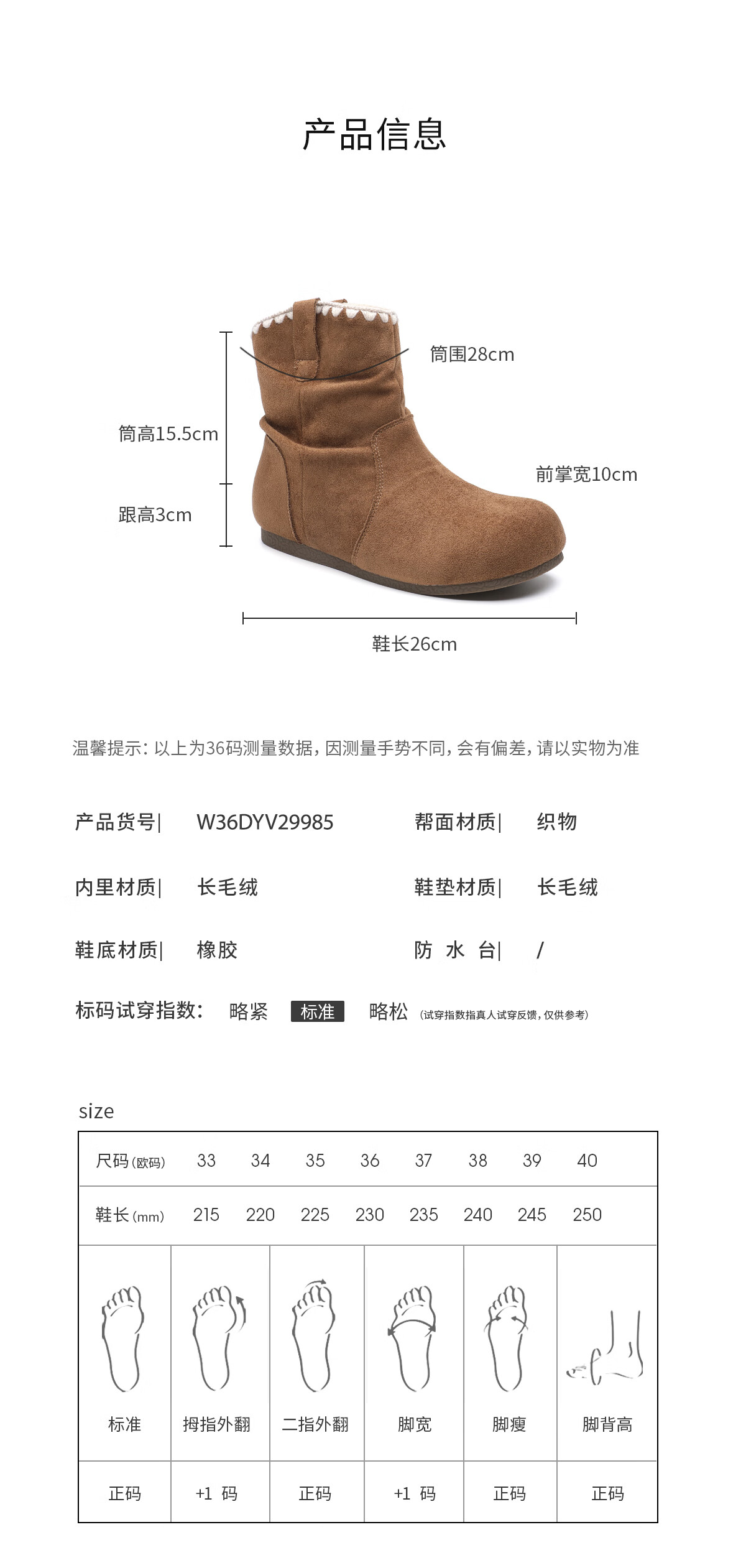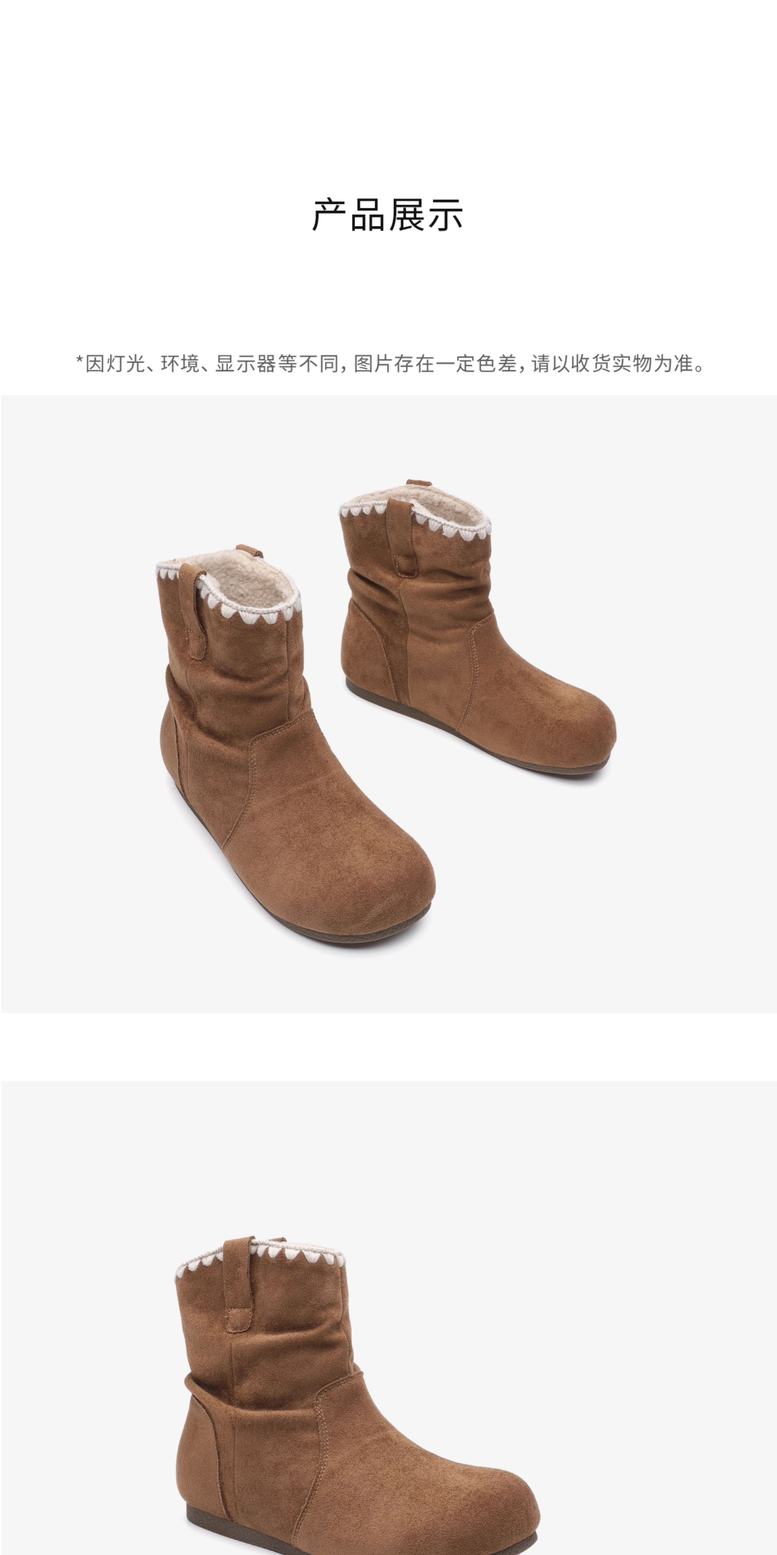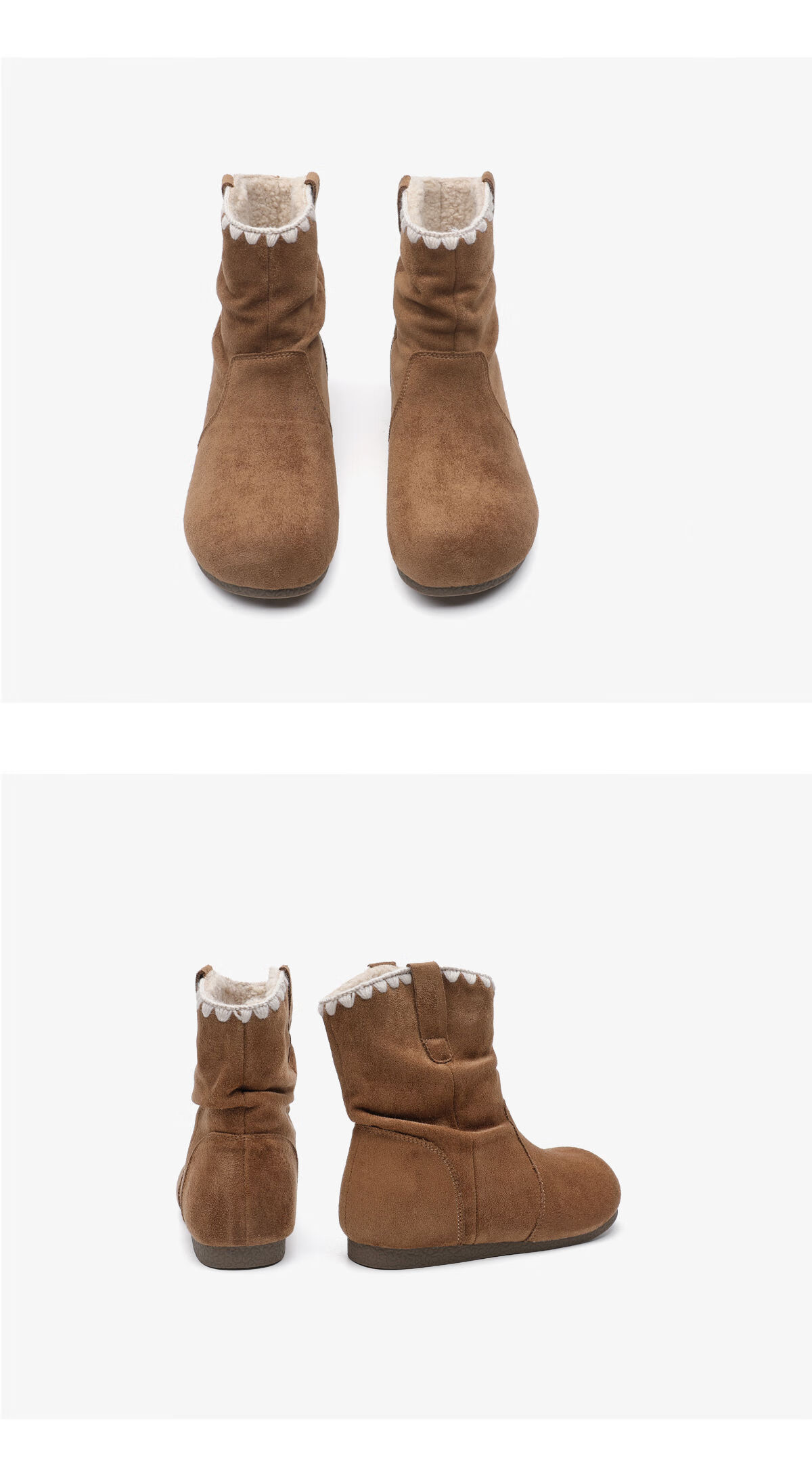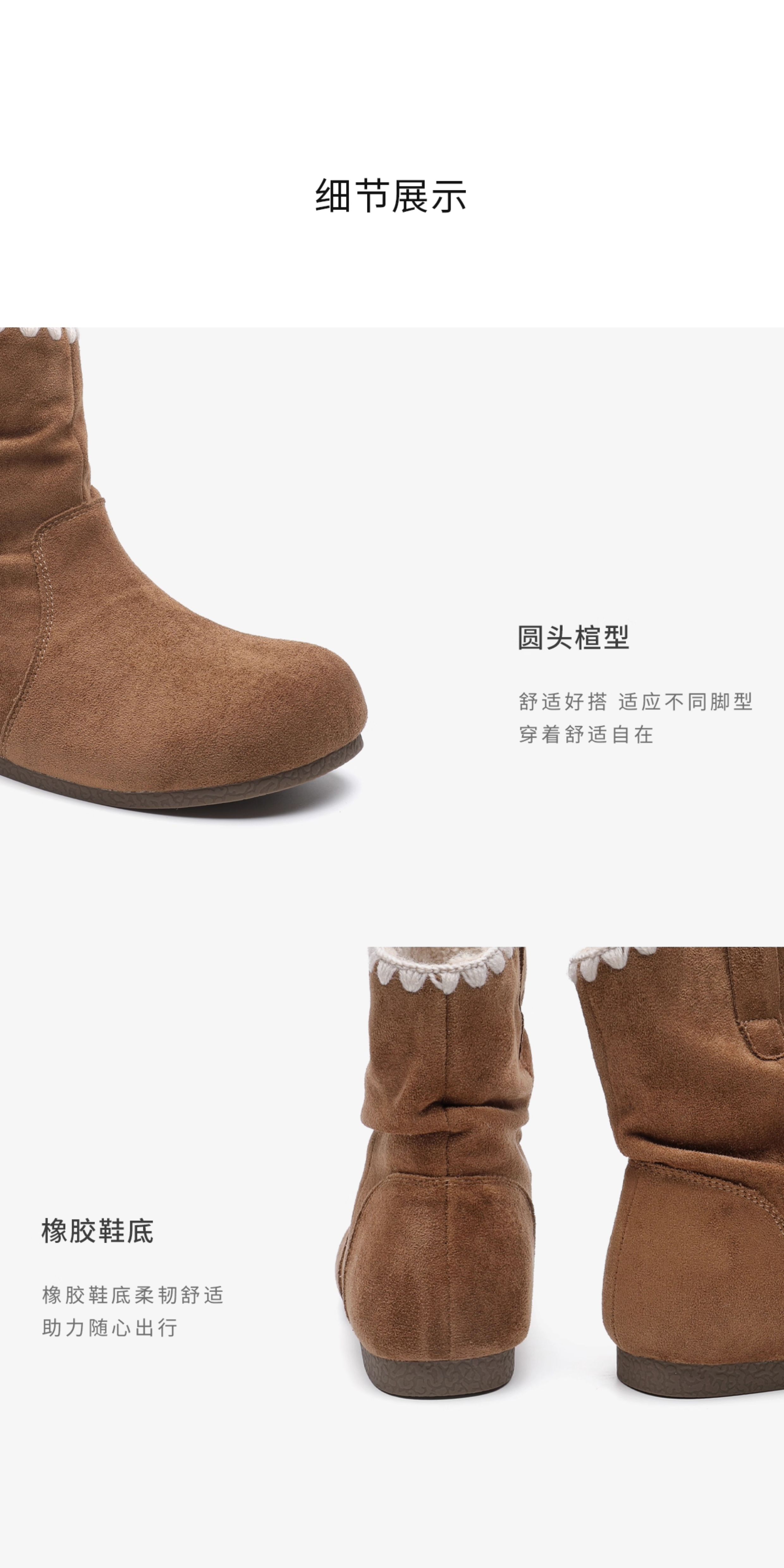 月芽儿复古磨砂短靴女2025新款秋冬加绒保暖中筒靴时尚百搭堆堆靴 绒里棕色03T 34