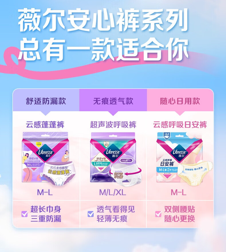 薇尔夜用安睡裤安心裤防漏超薄透气超熟睡加长夜用卫生巾姨妈巾 XL 15条 120-170斤 【蓬蓬裤】