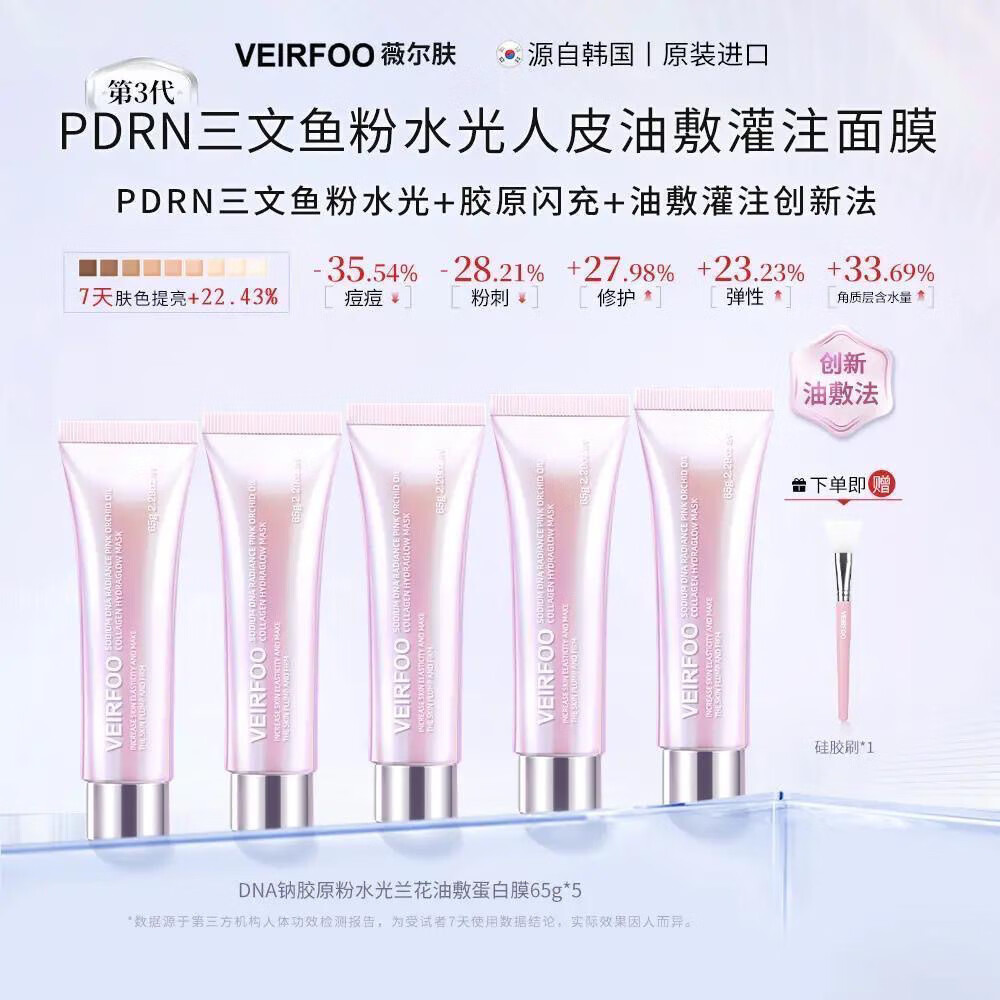 VEIRFOO薇尔肤PDRN DNA三文鱼粉水光兰花油敷蛋白膜人皮油敷灌注面膜 4支装+刷子