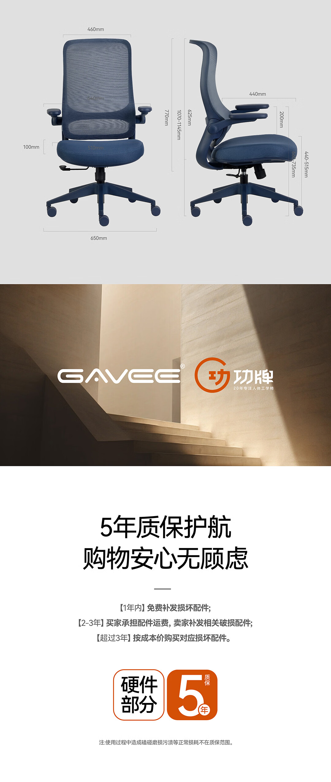 GAVEE精灵系列人体工学椅 可折叠扶手办公椅宿舍书房电脑椅网红款 经典黑网布GAV-精灵系列 网布 120-155度(含) 可旋转可升降扶手