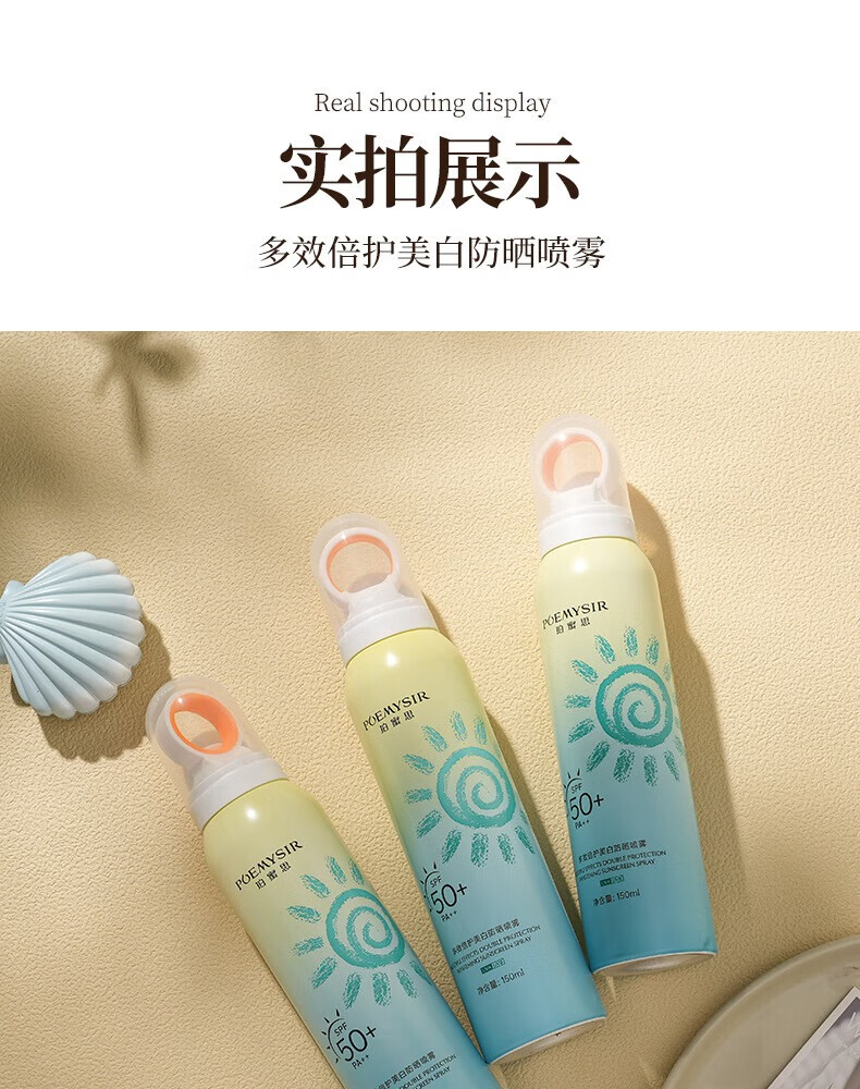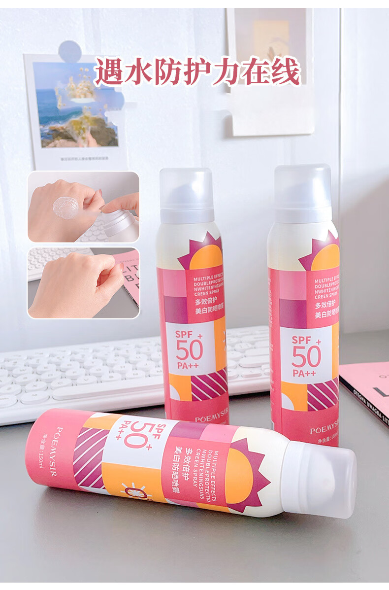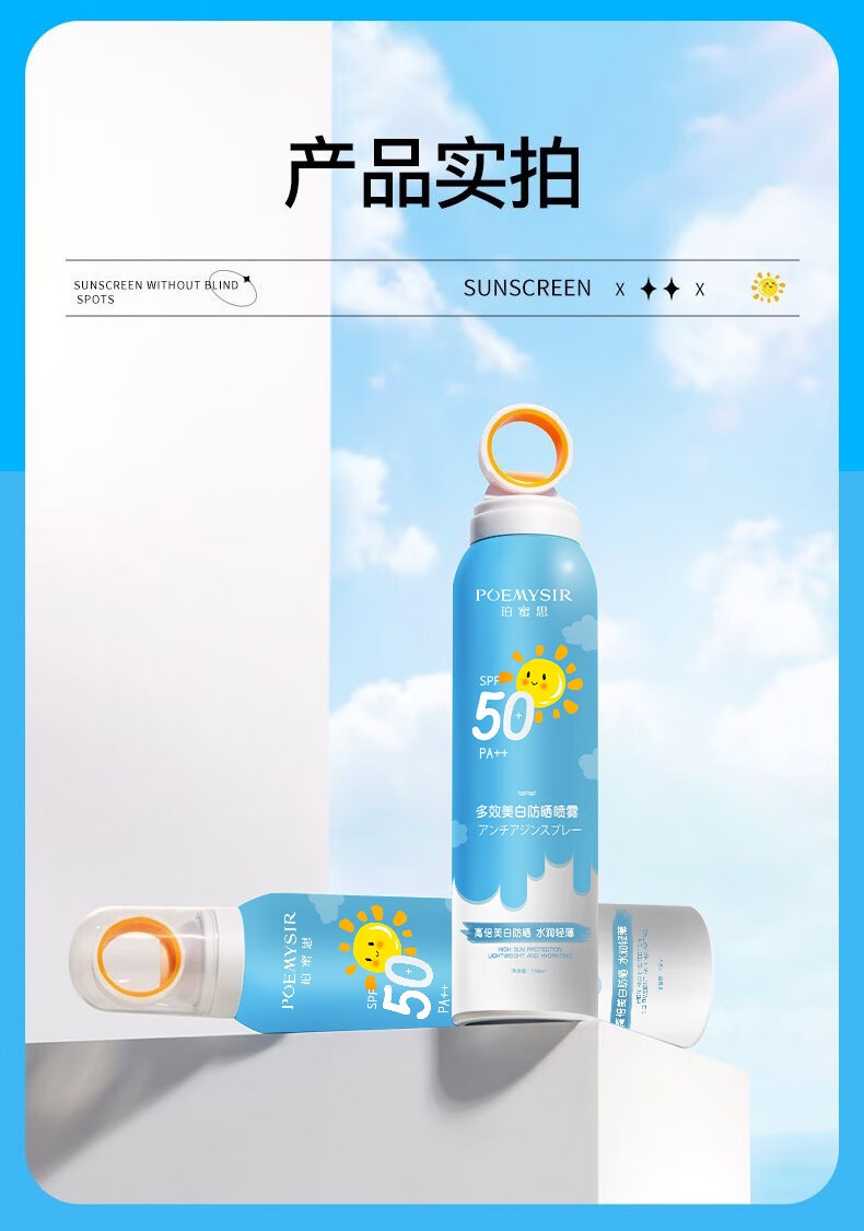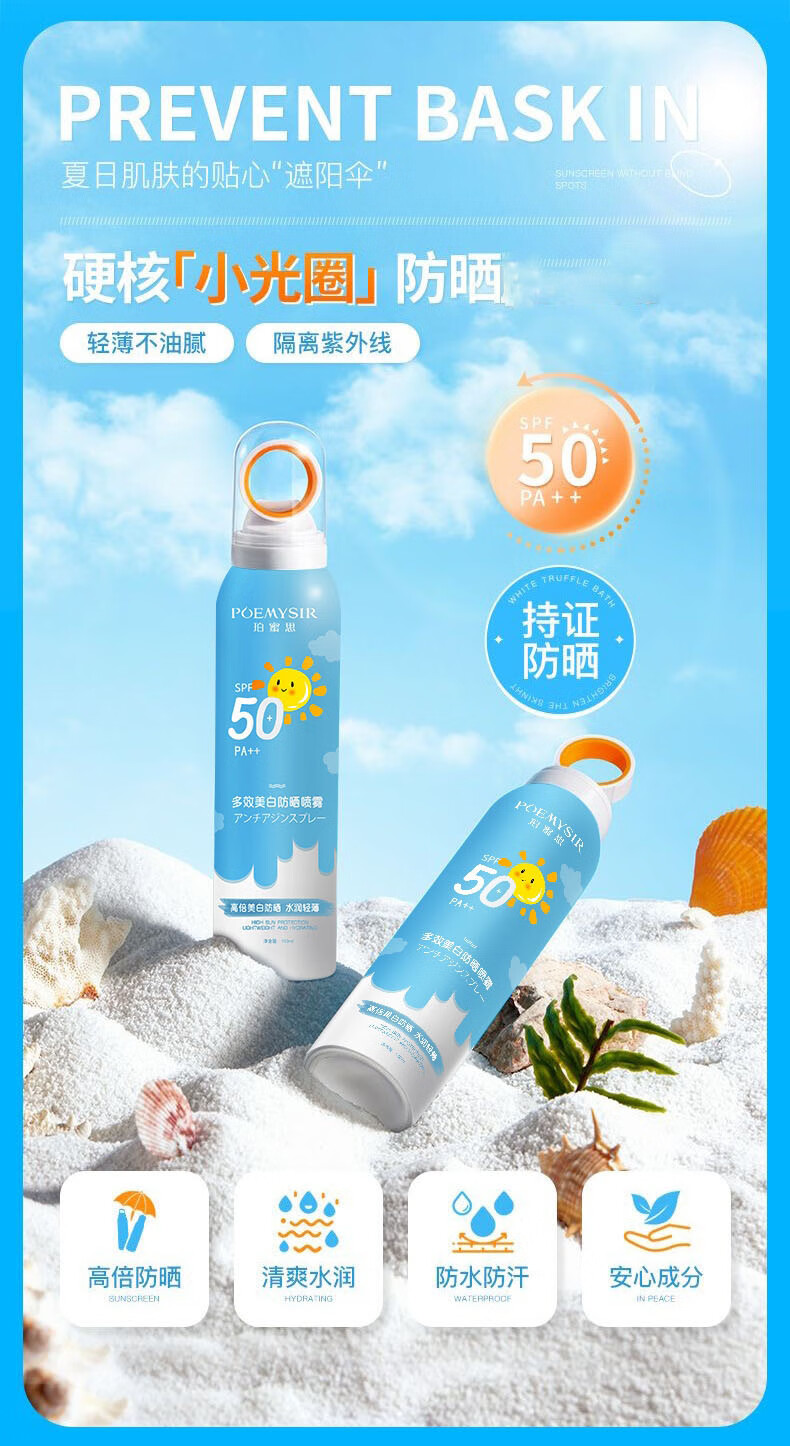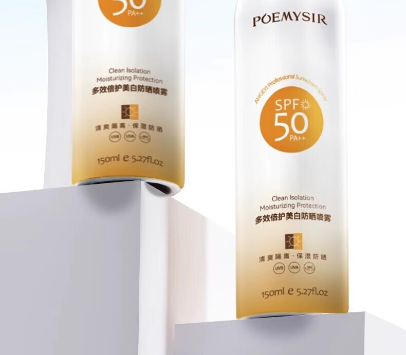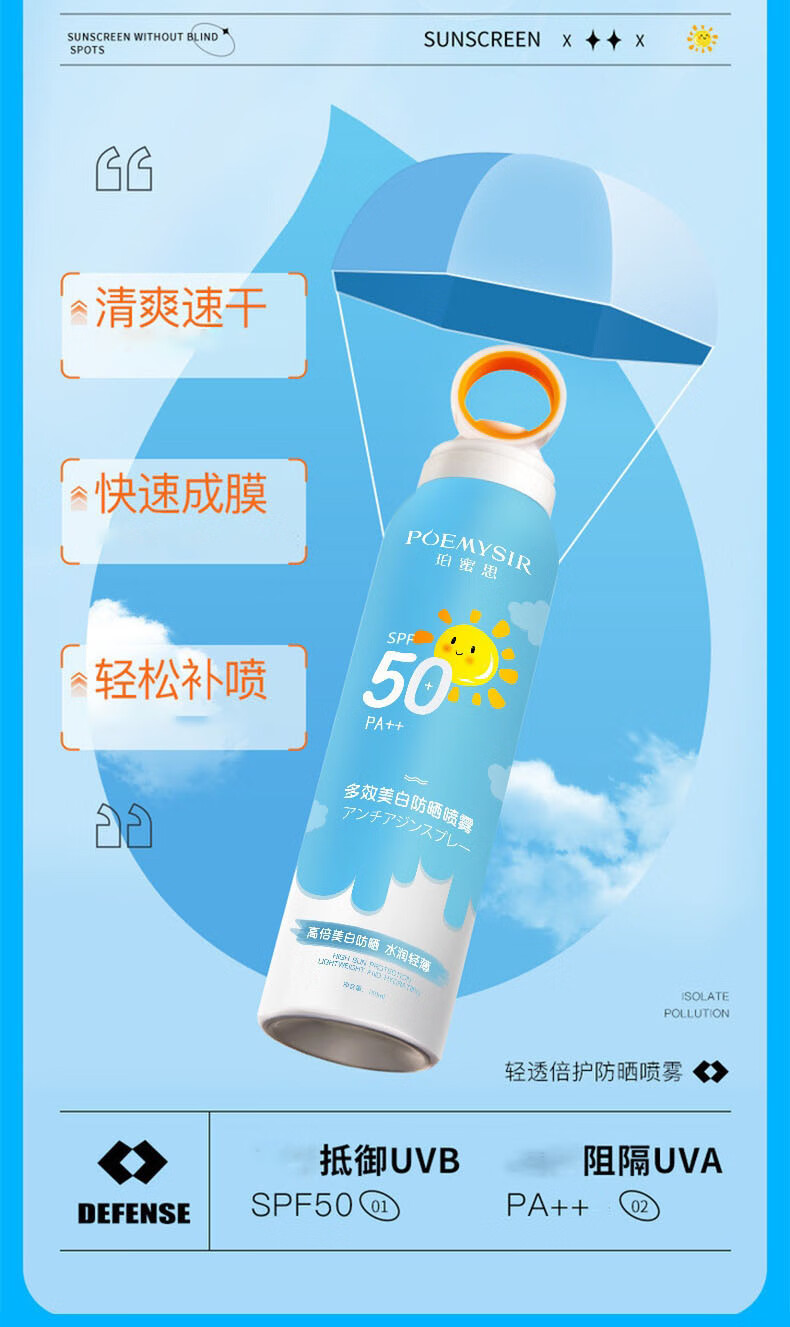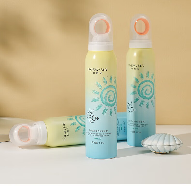 珀蜜思美白防晒喷雾SPF50+高倍小光圈清爽防水紫外线女生全身防晒 珀蜜思美白防晒喷雾(蓝黄瓶) 3瓶装
