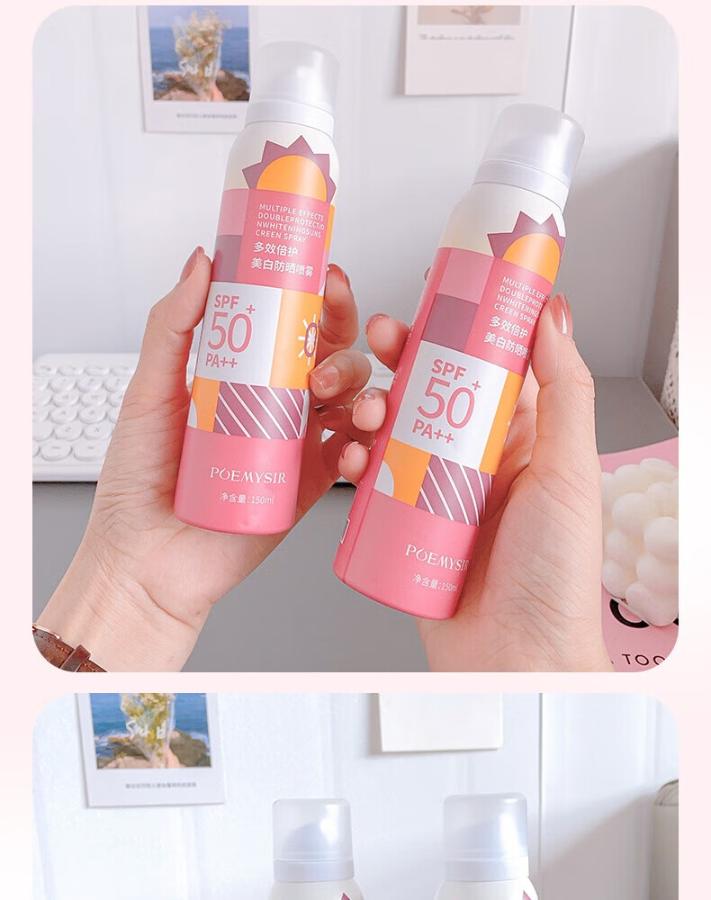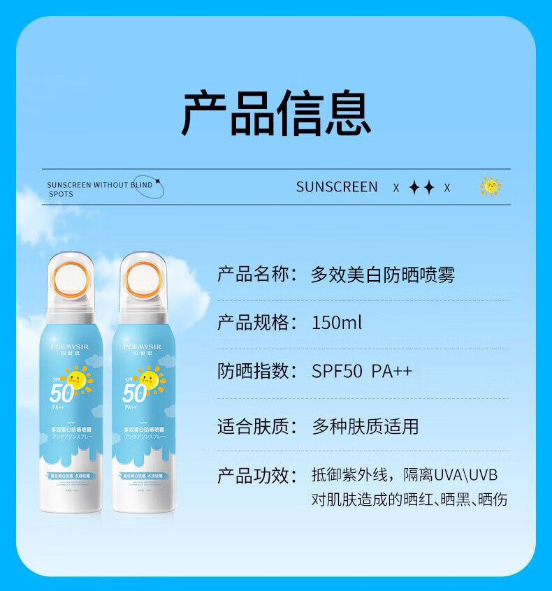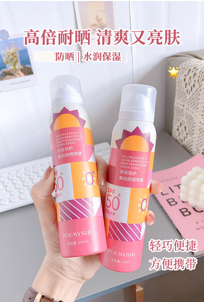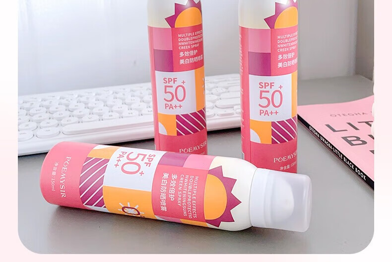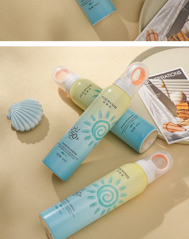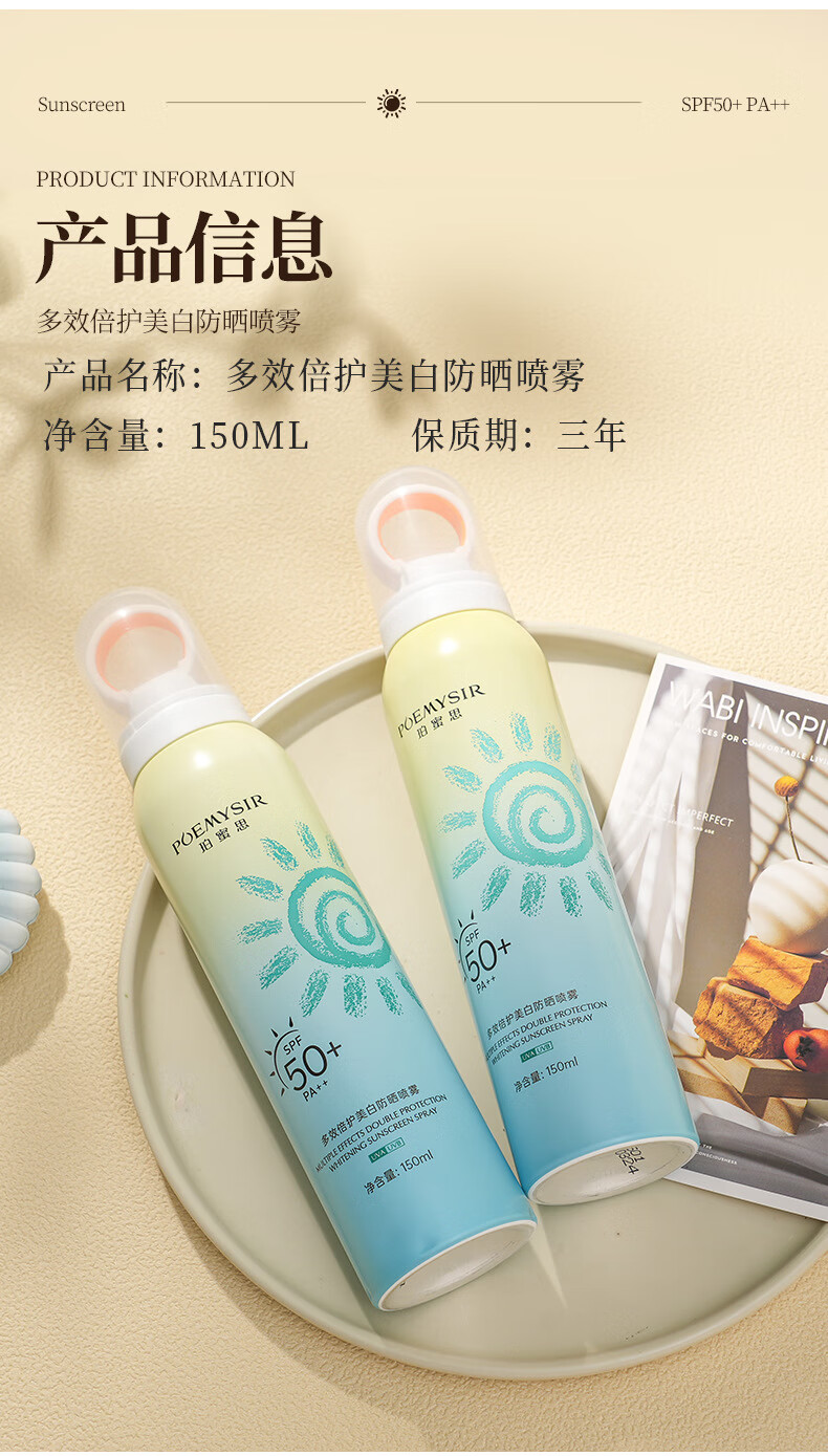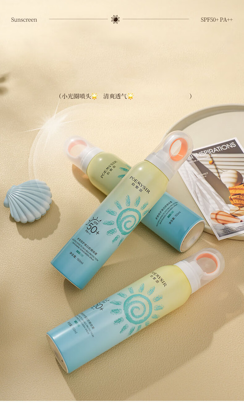 珀蜜思美白防晒喷雾SPF50+高倍小光圈清爽防水紫外线女生全身防晒 珀蜜思美白防晒喷雾(蓝黄瓶) 3瓶装