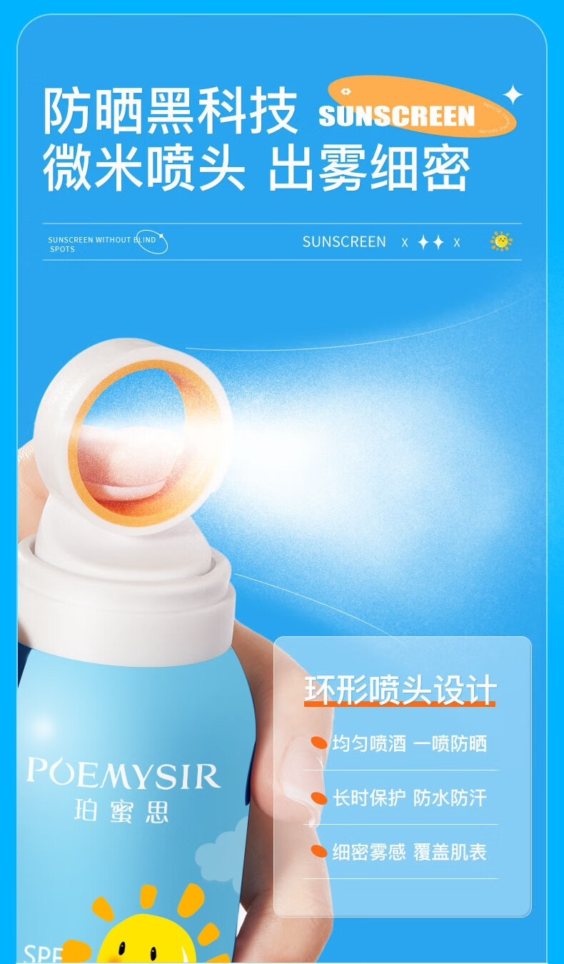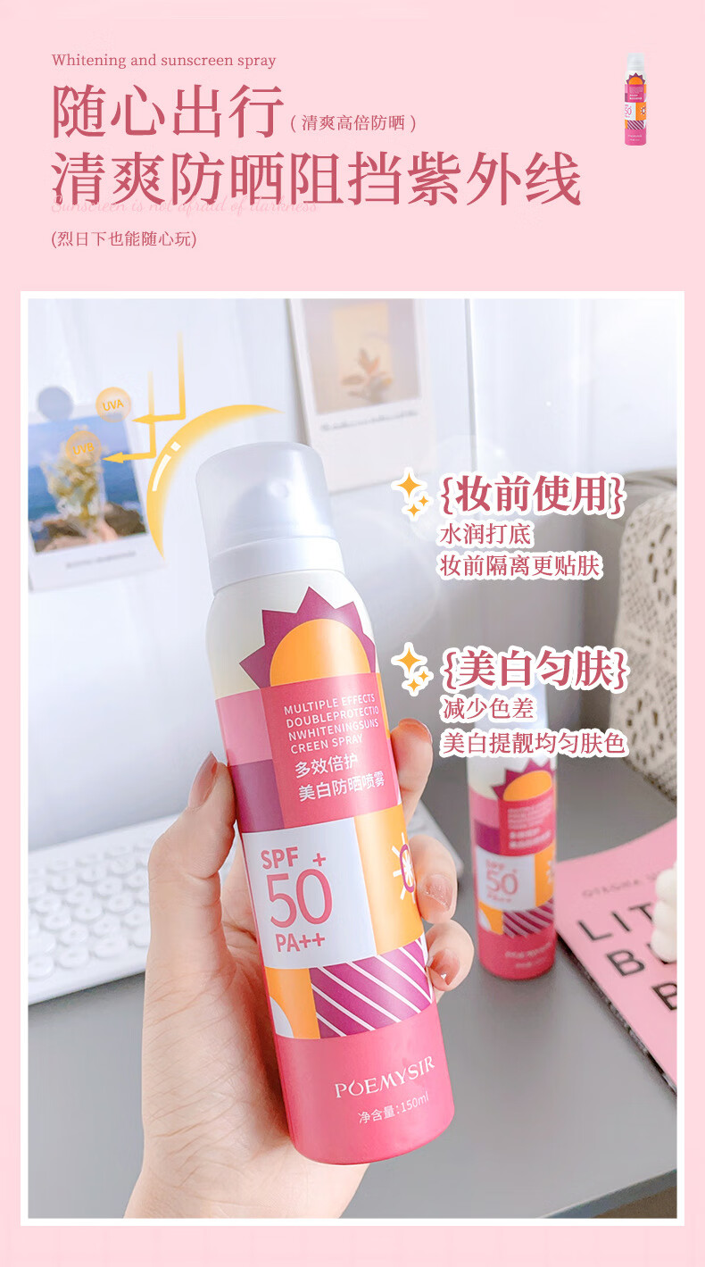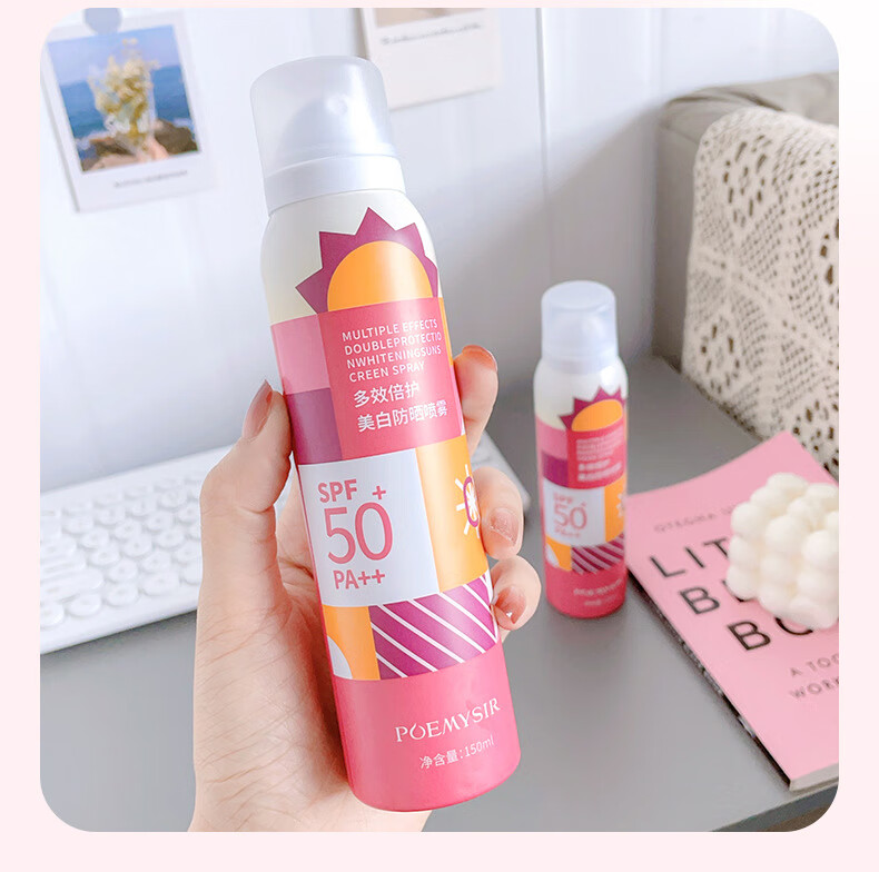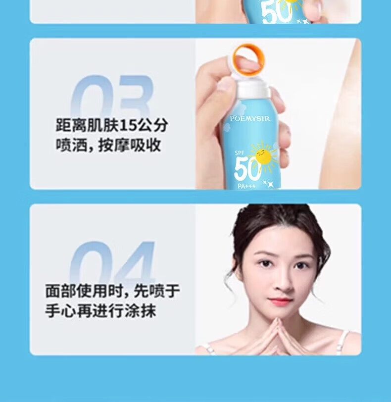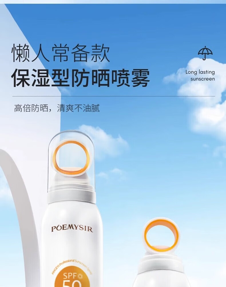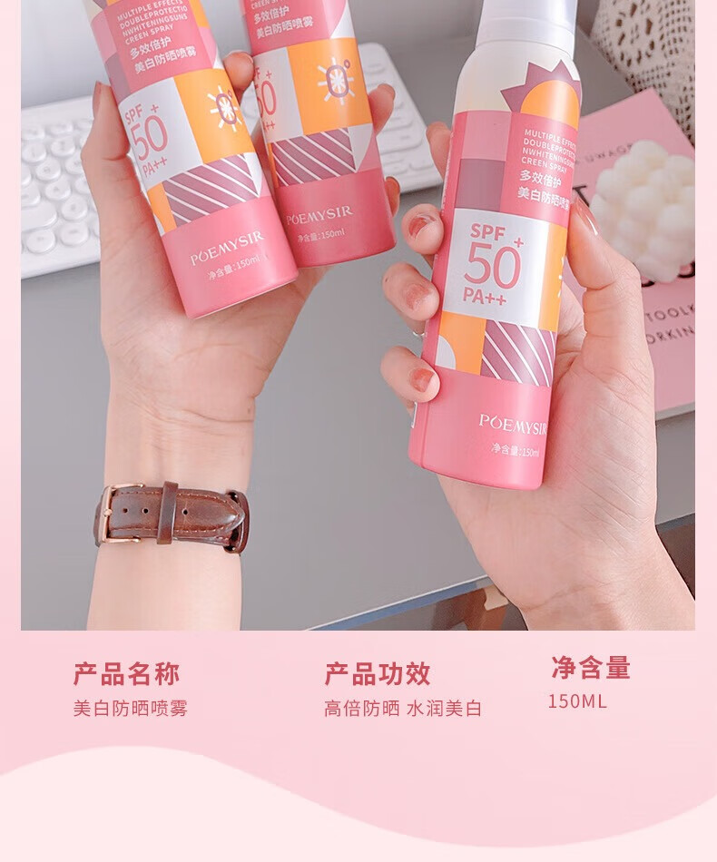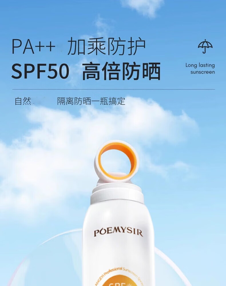 珀蜜思美白防晒喷雾SPF50+高倍小光圈清爽防水紫外线女生全身防晒 珀蜜思美白防晒喷雾(蓝黄瓶) 3瓶装