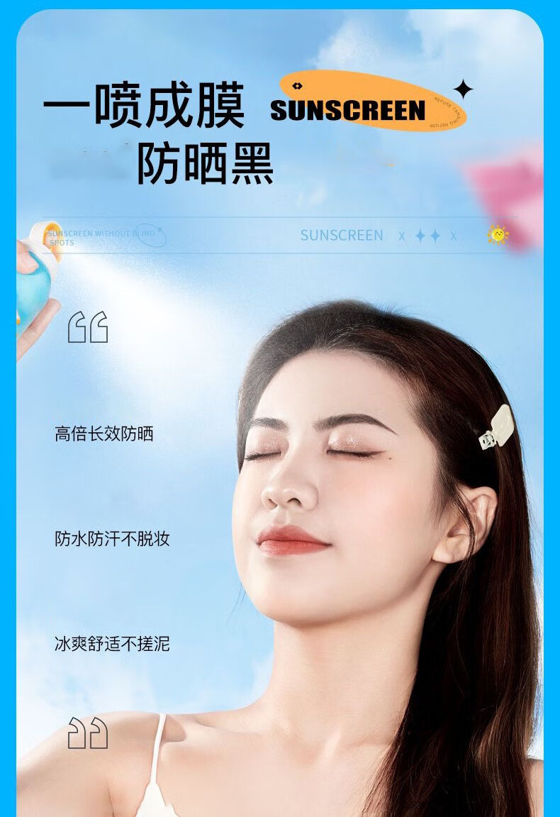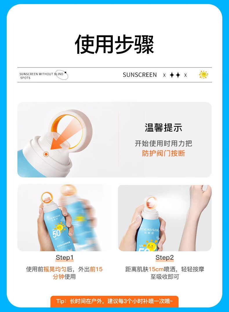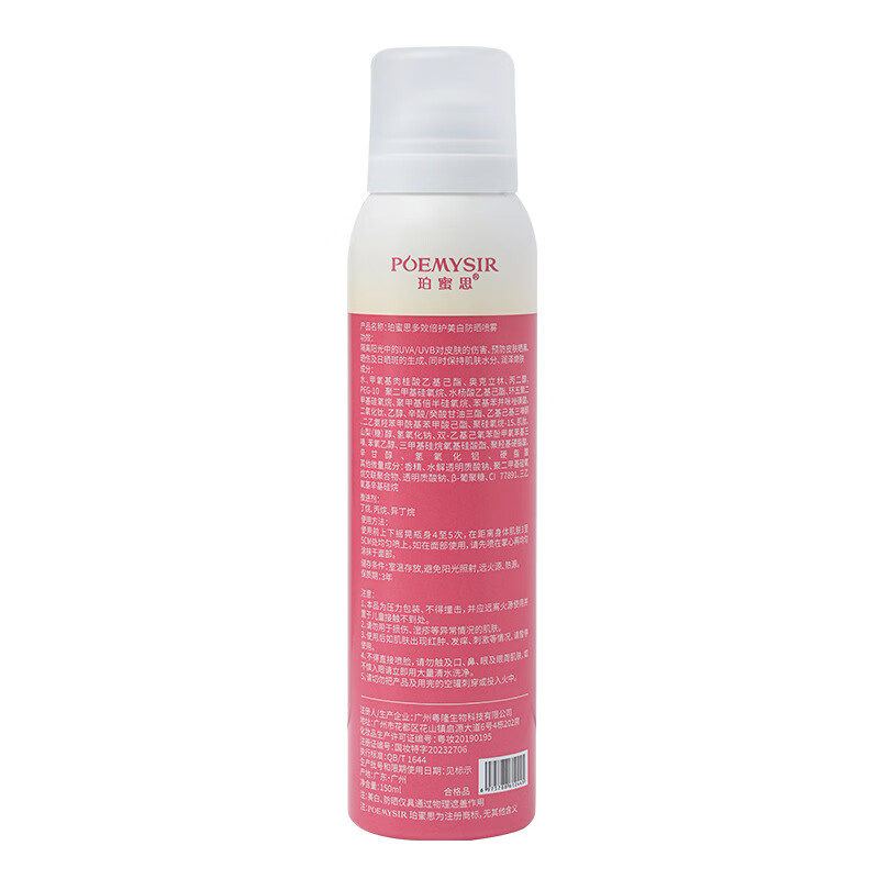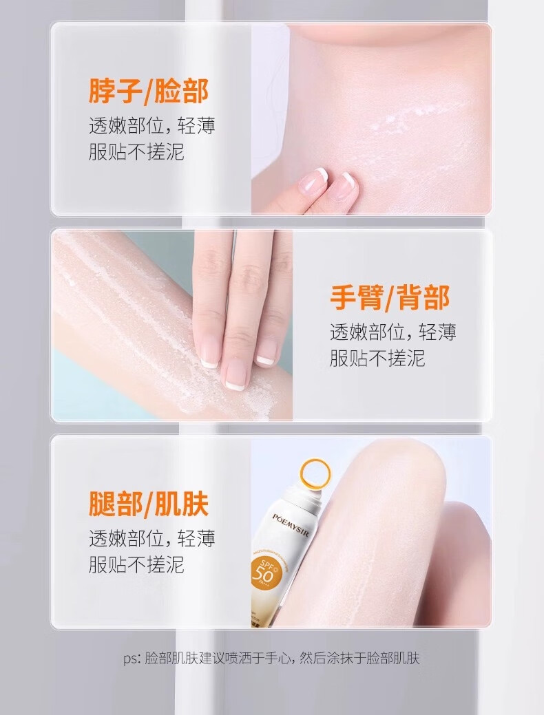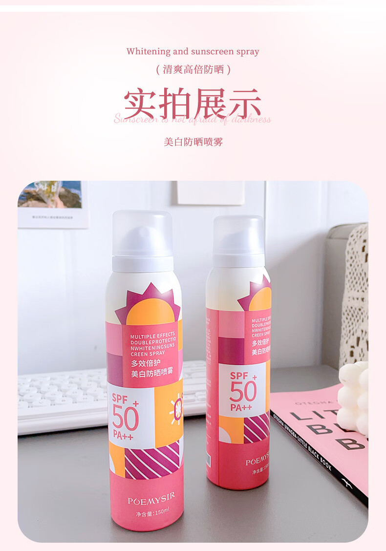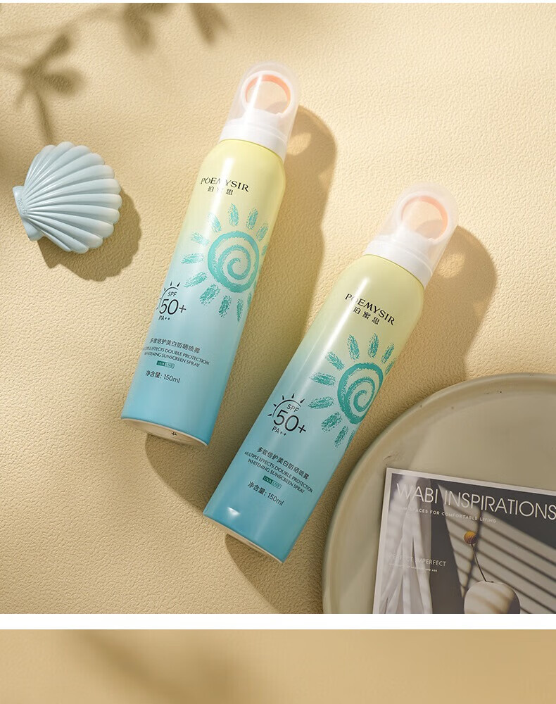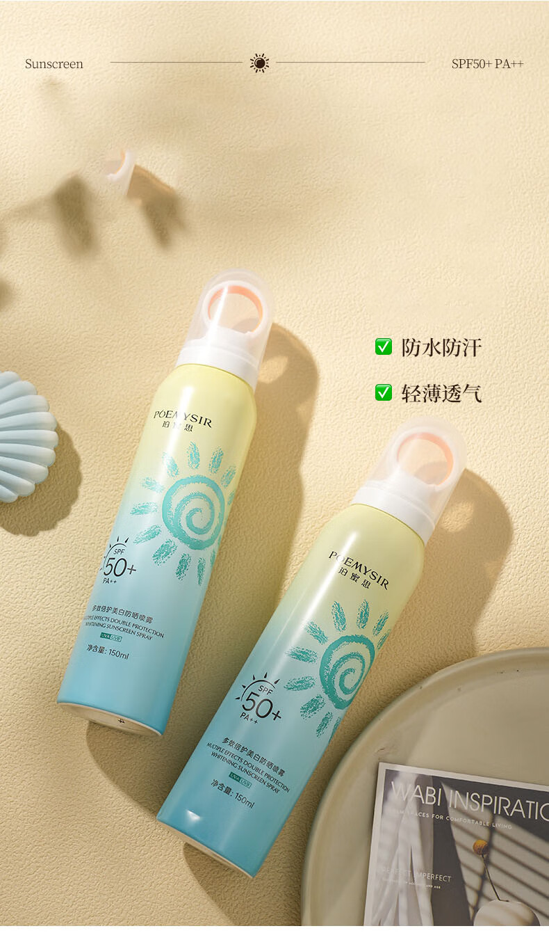 珀蜜思美白防晒喷雾SPF50+高倍小光圈清爽防水紫外线女生全身防晒 珀蜜思美白防晒喷雾(蓝黄瓶) 3瓶装