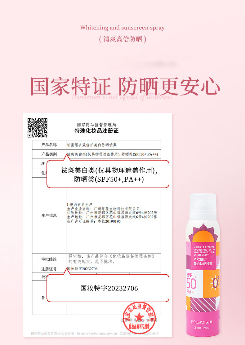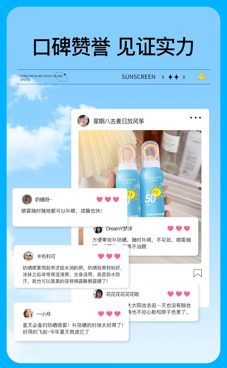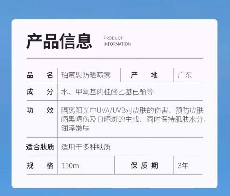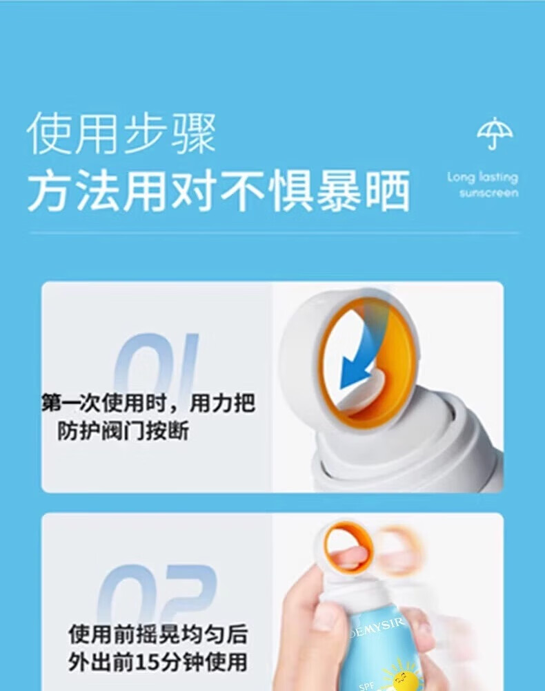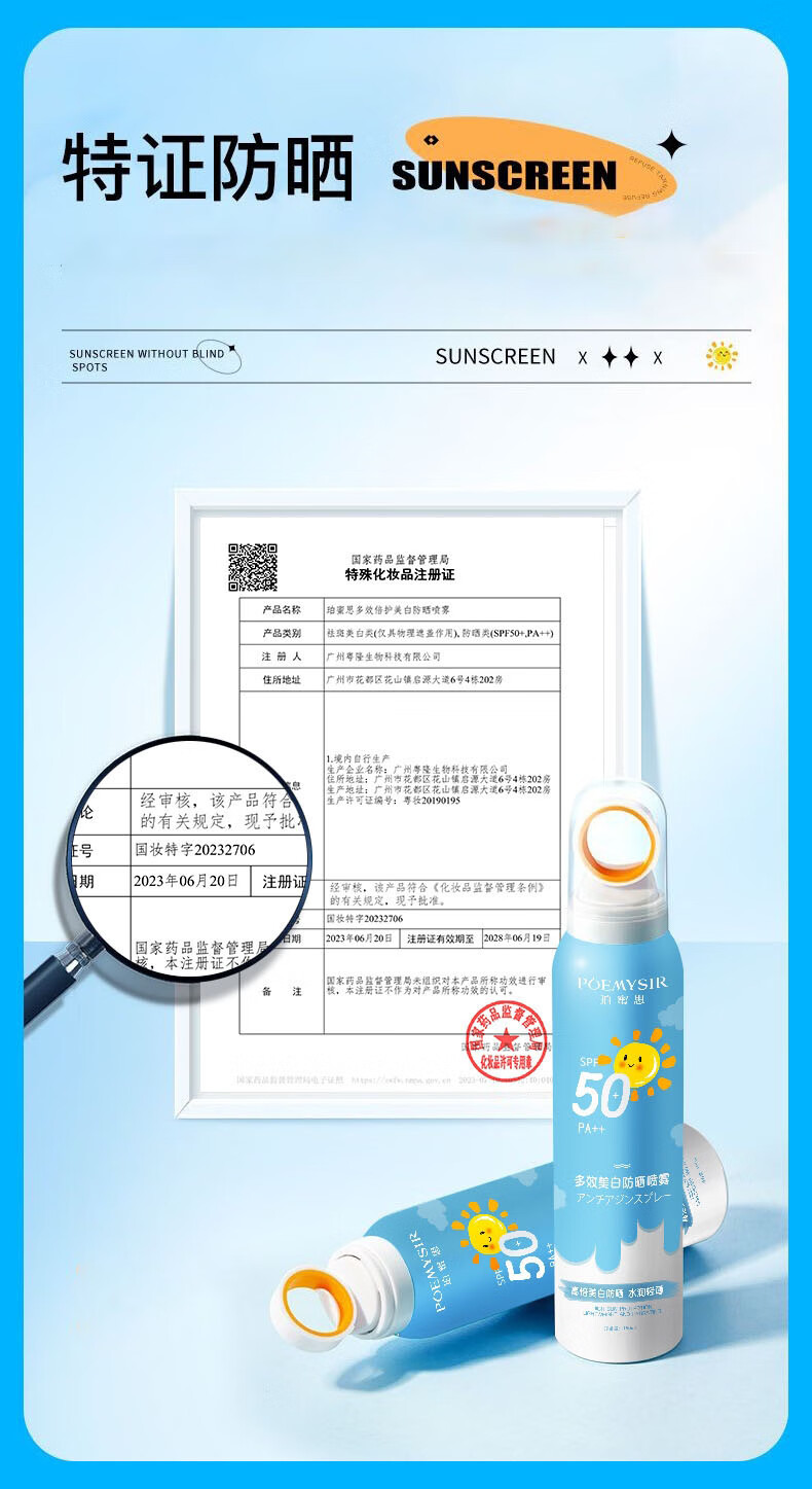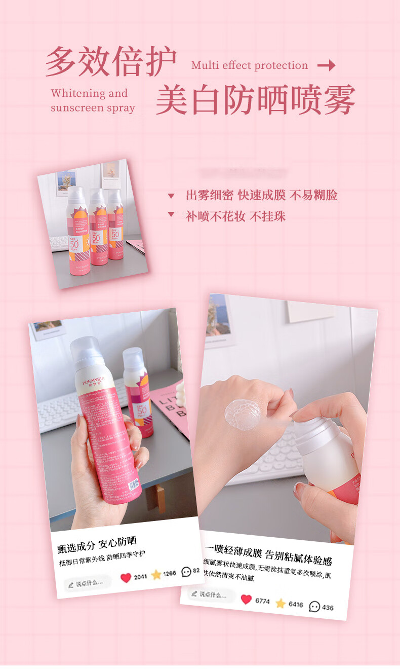 珀蜜思美白防晒喷雾SPF50+高倍小光圈清爽防水紫外线女生全身防晒 珀蜜思美白防晒喷雾(蓝黄瓶) 3瓶装