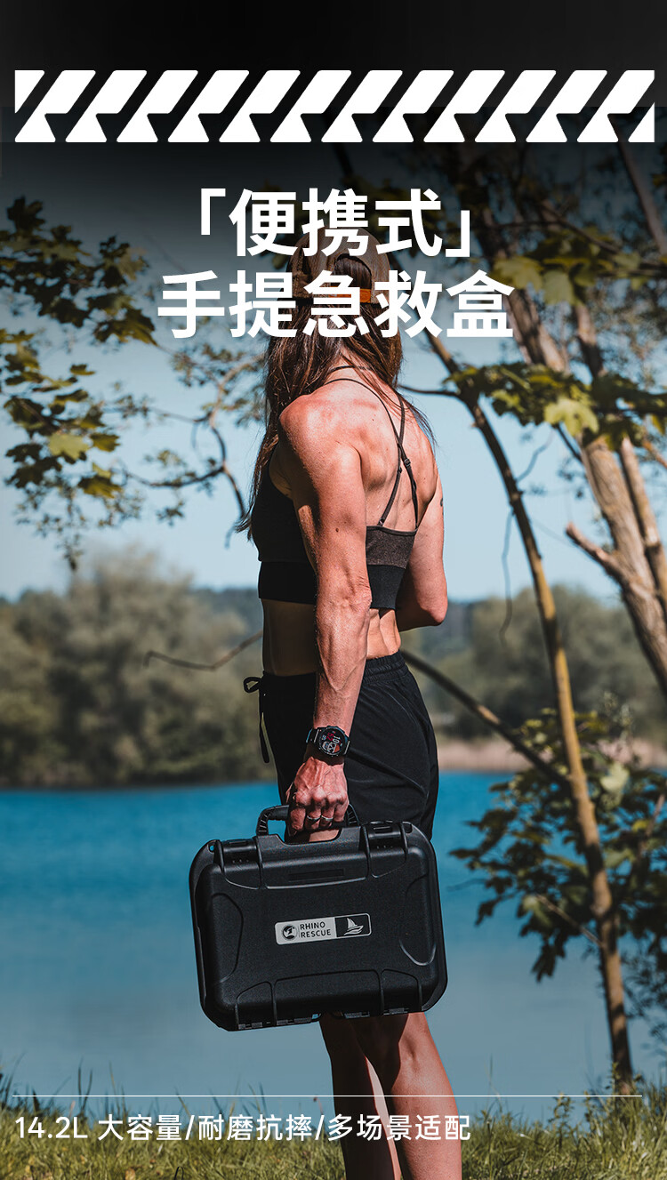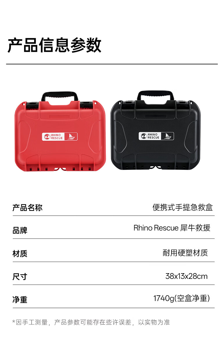 犀牛救援大容量急救盒坚固防水防尘应急装备收纳箱车载家用物资相机收纳 硬盒防水急救盒-黑色-空盒