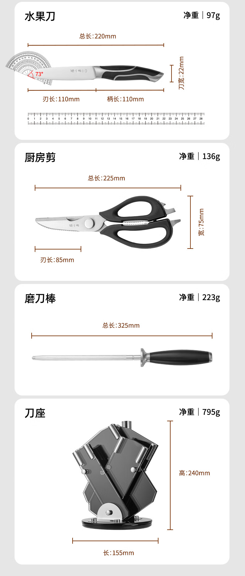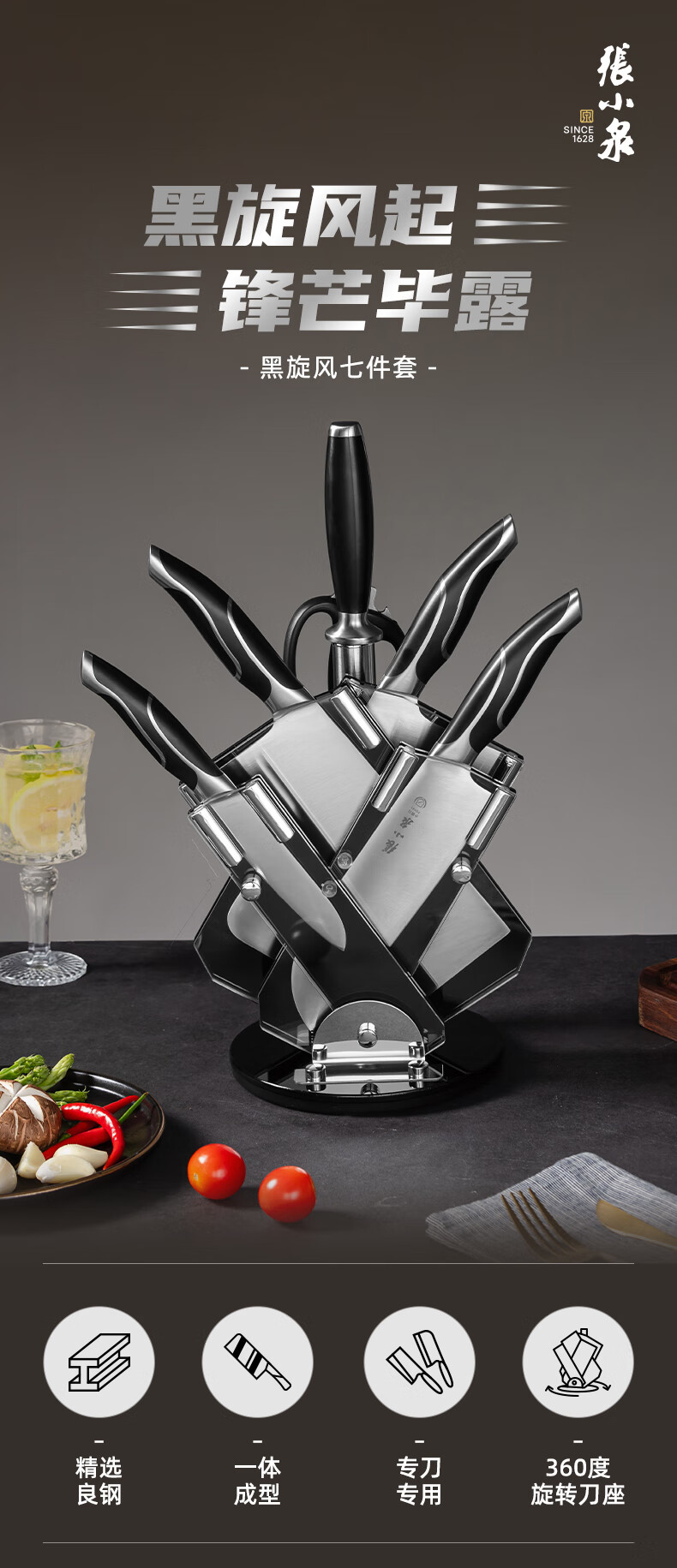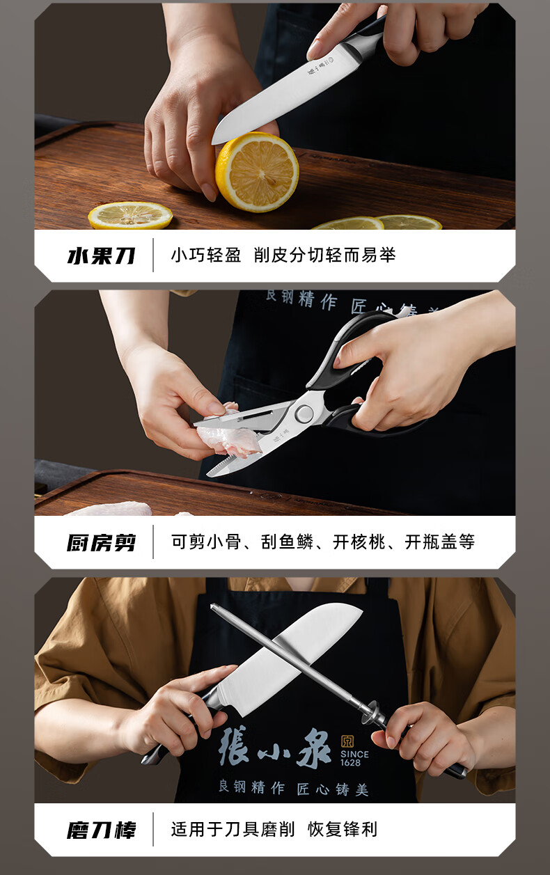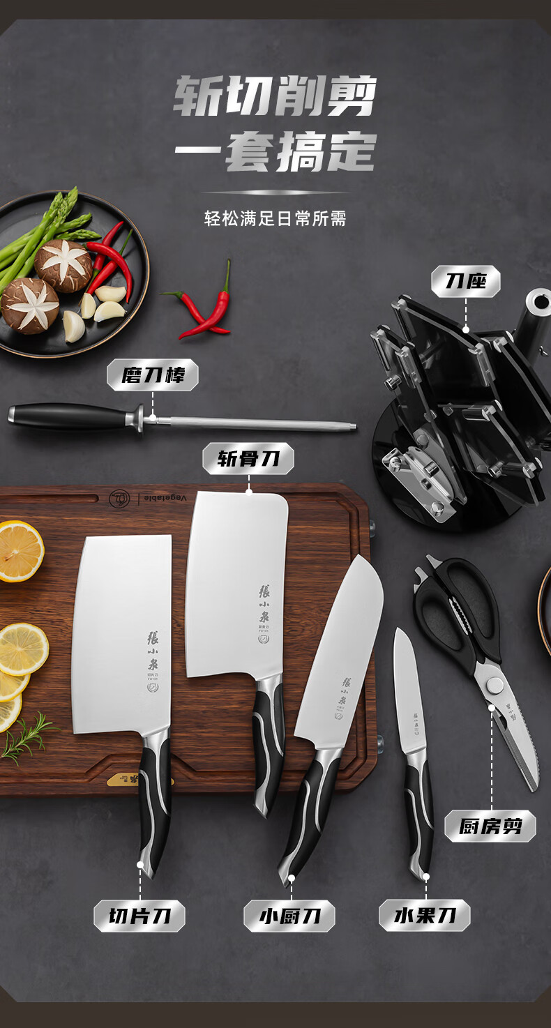 张小泉 刀具套装 智系列不锈钢家用套刀切片刀厨房刀菜刀套装 五丈原(铂金版)- 6件套