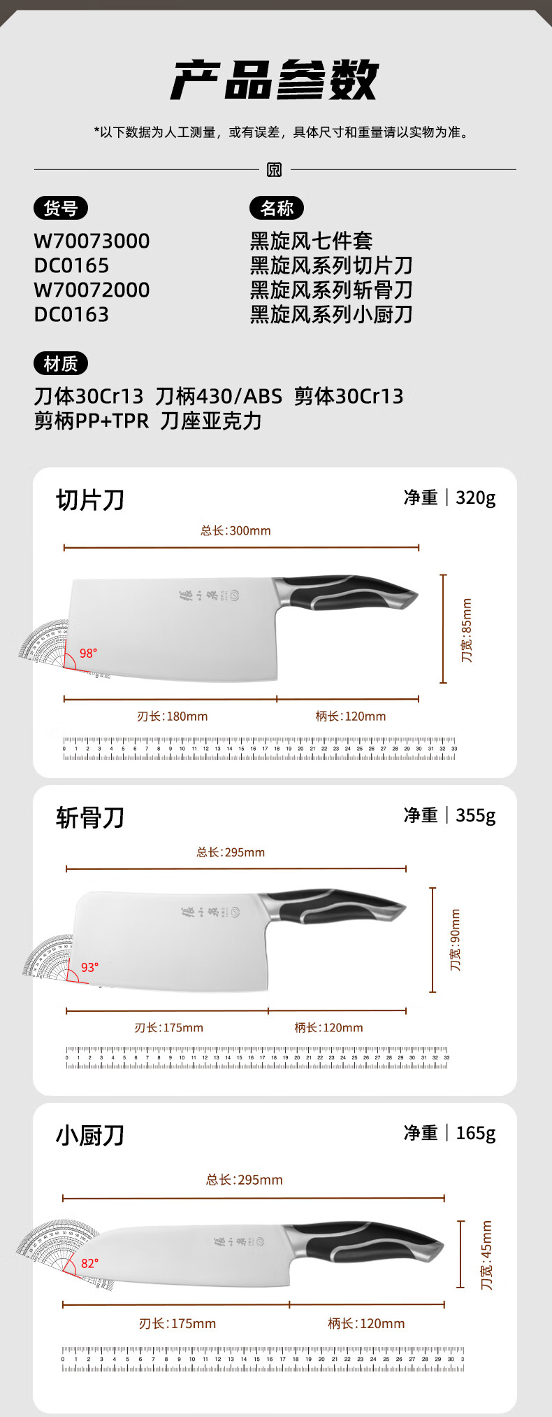 张小泉 菜刀黑旋风系列不锈钢厨具刀具套装家用切菜刀切片刀斩骨刀 切片刀DC0165
