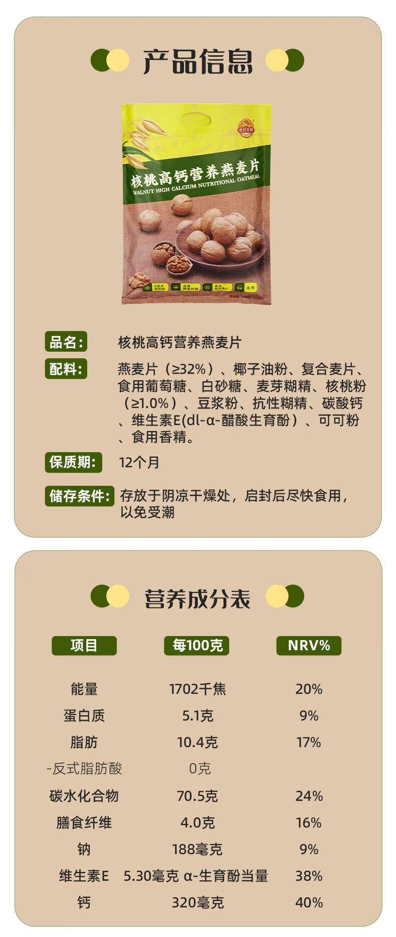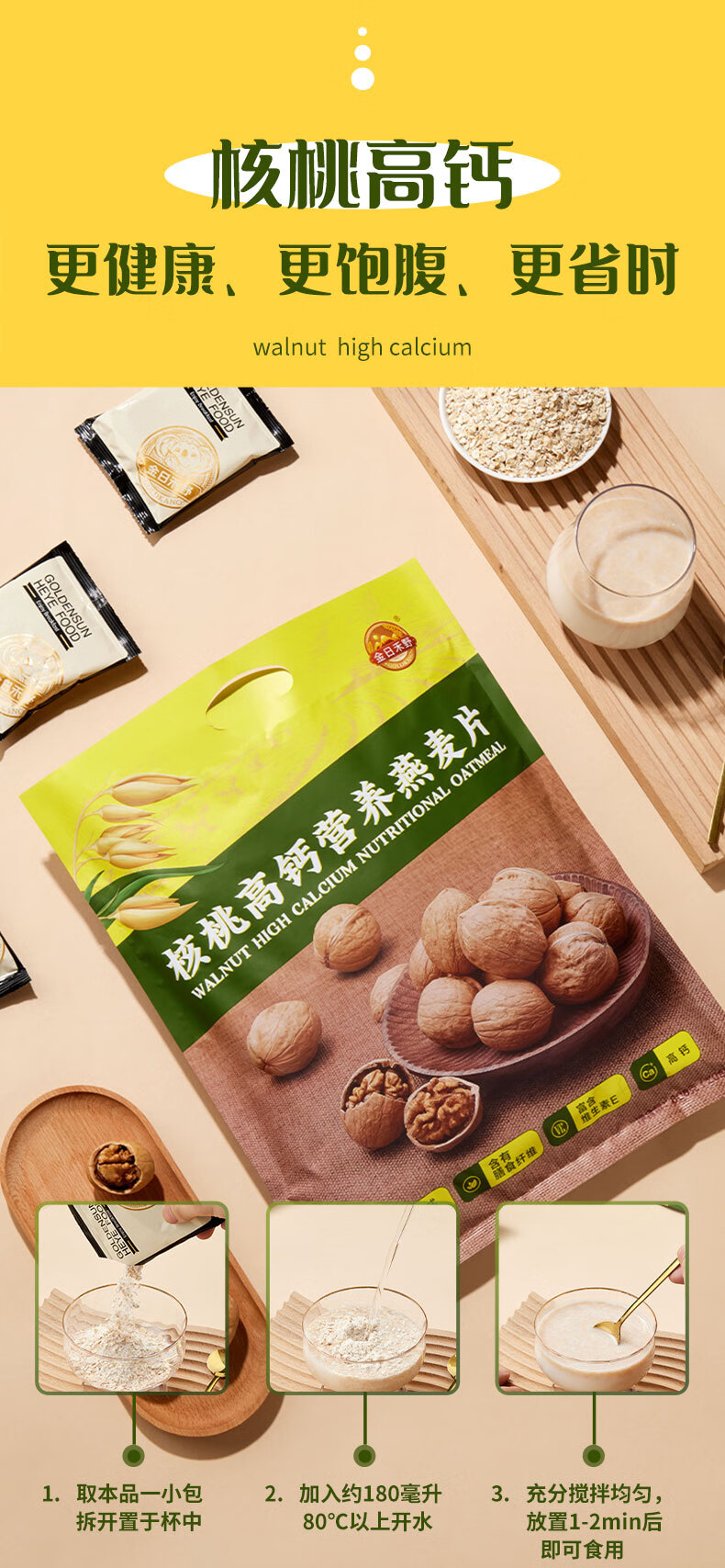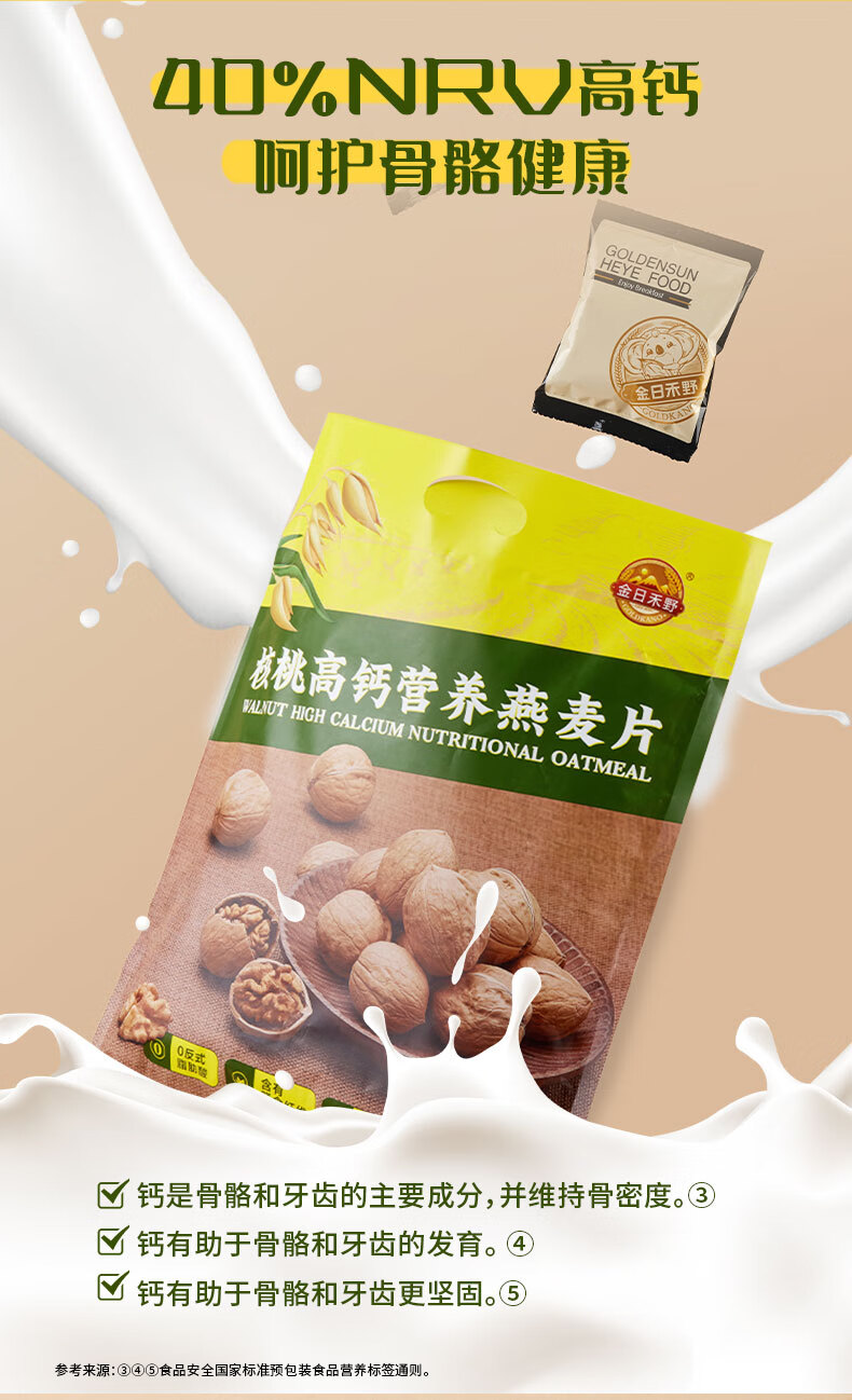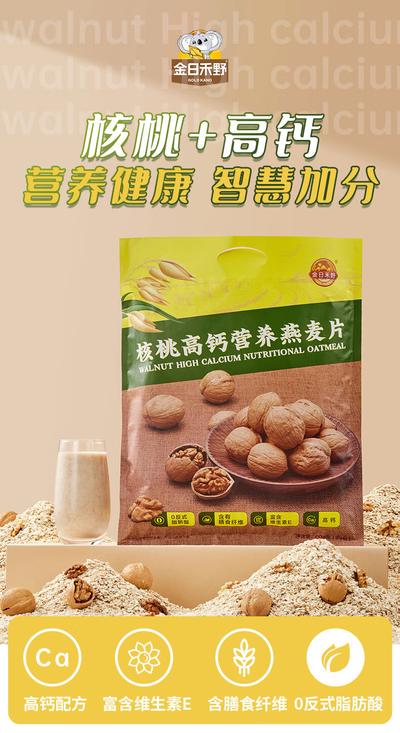 金日禾野核桃高钙燕麦片600g 学生早餐高钙配方混合麦片 独立包装