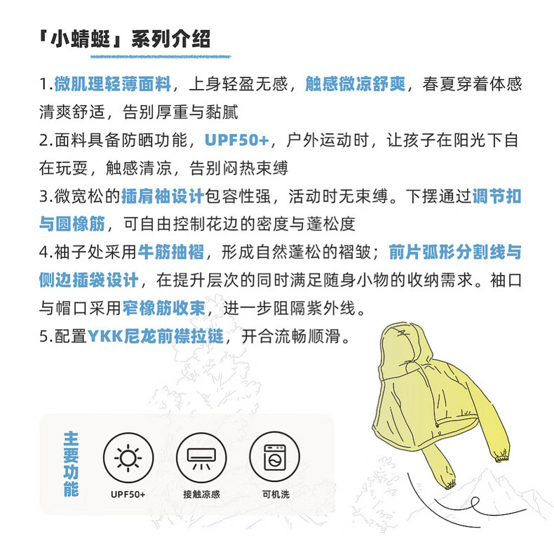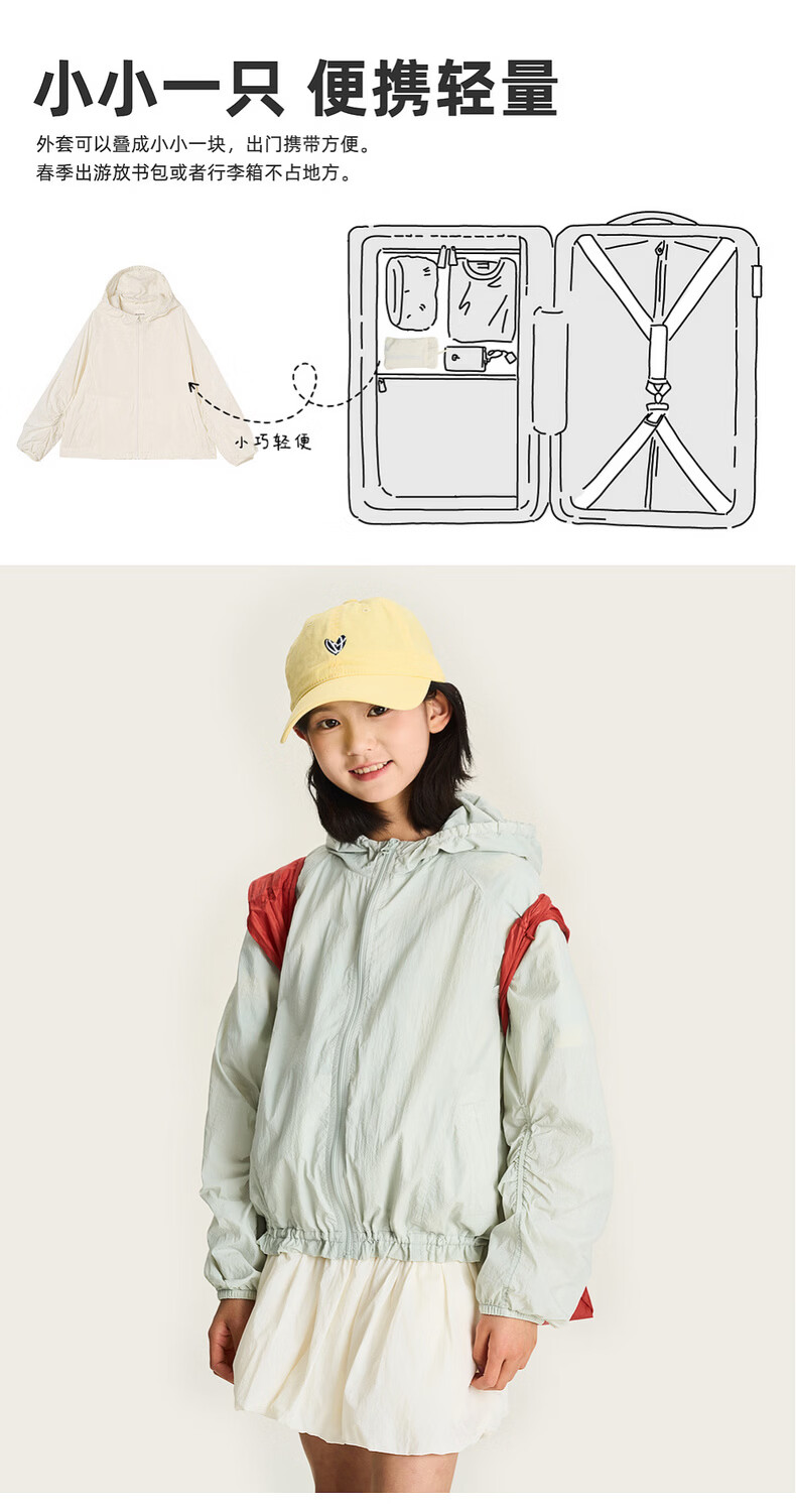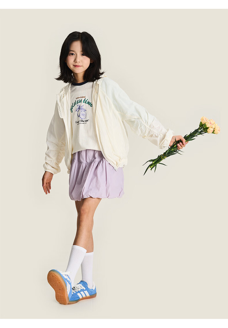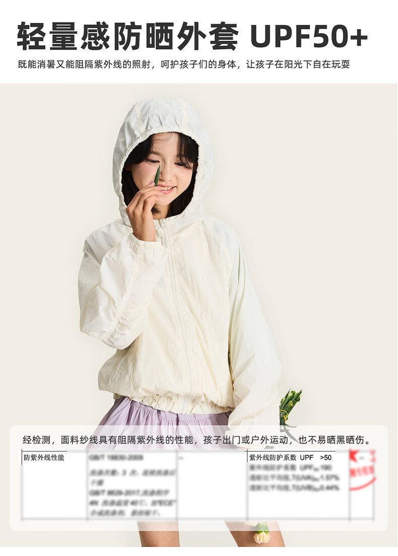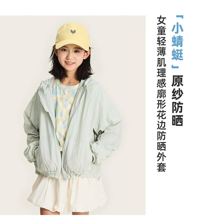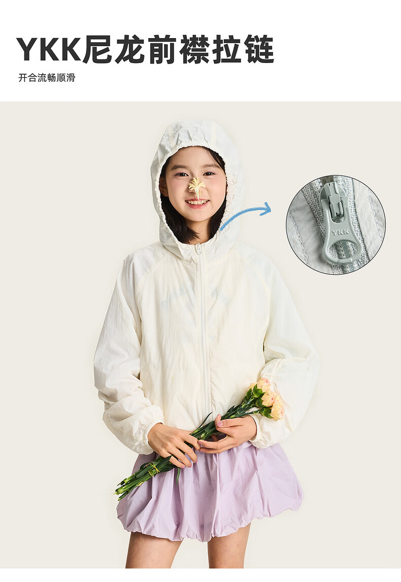 棉叔叔【小蜻蜓原纱防晒外套】棉叔叔女童夏新品轻薄肌理感防晒上衣3.18 奶白 120 120