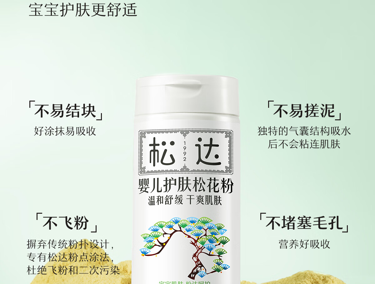 松达松花粉新生儿痱子粉护臀婴儿爽身粉婴幼儿干爽粉 【热卖爆款】松花粉52g