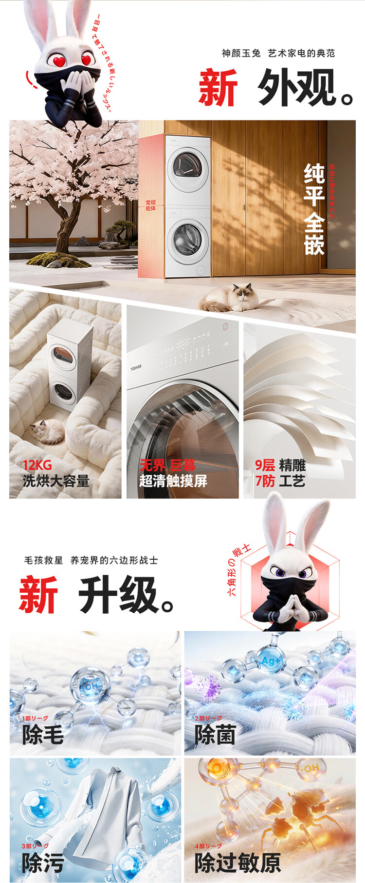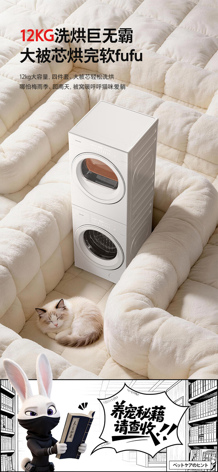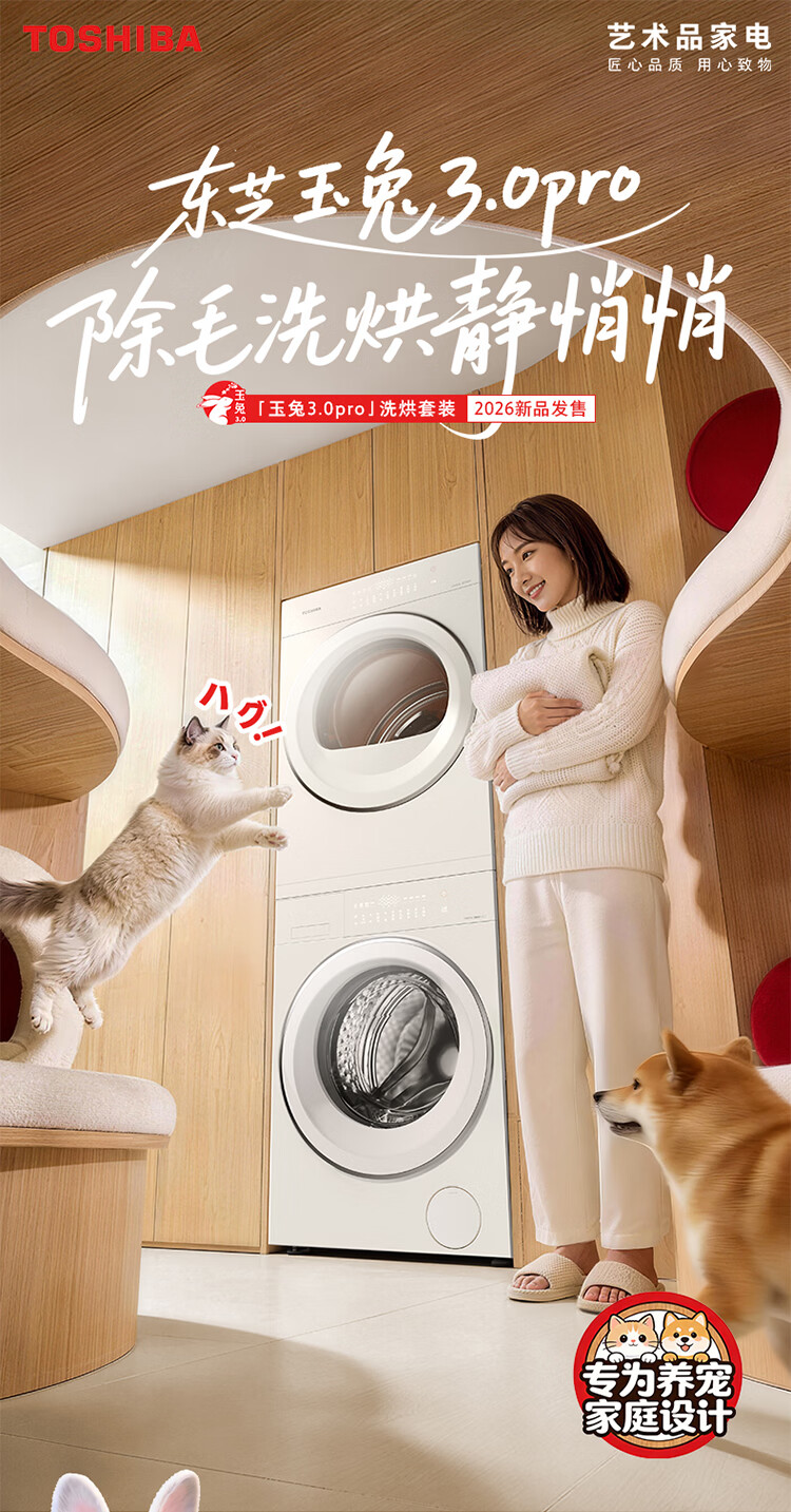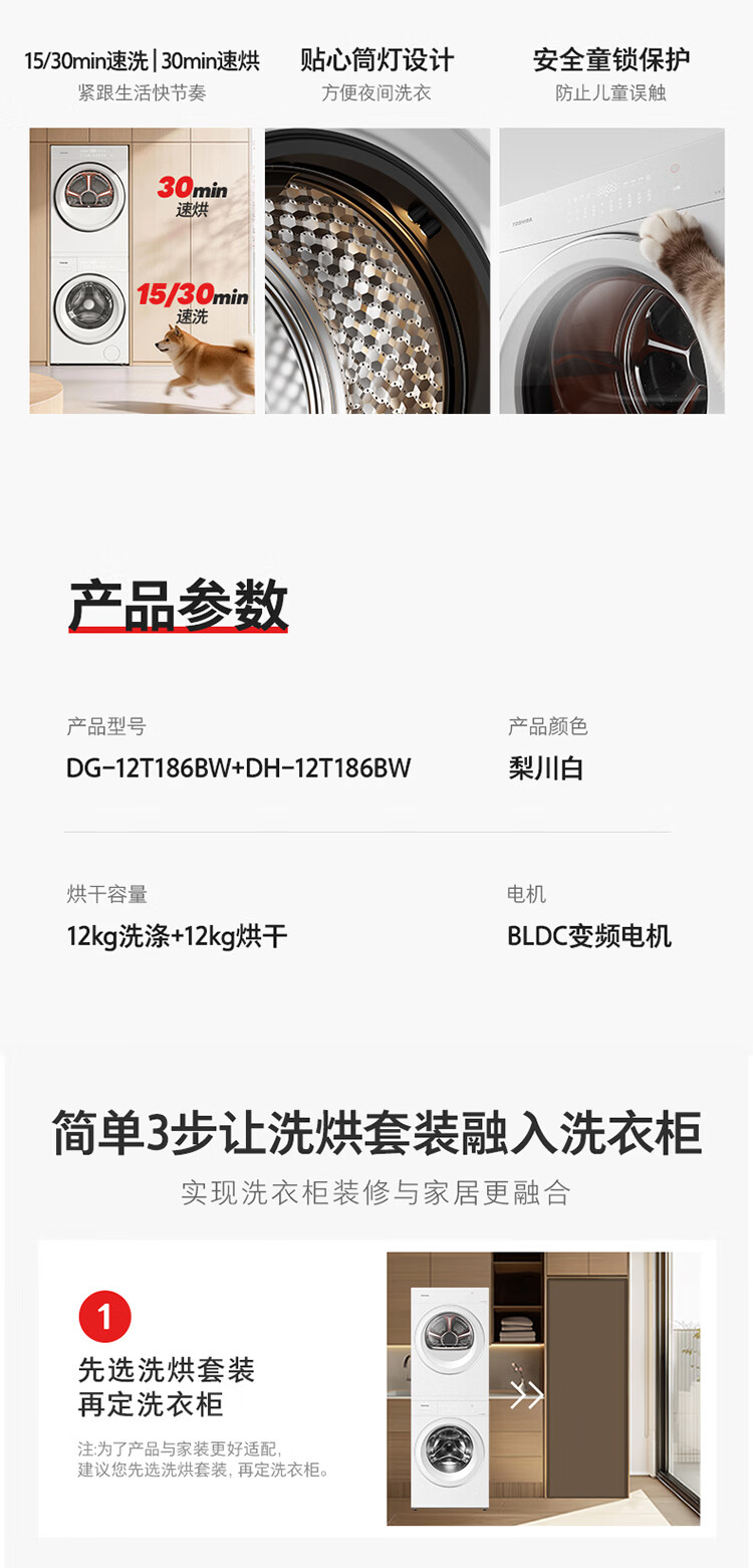东芝(TOSHIBA)玉兔3.0pro 洗烘套装12+12kg 1.36高洗净比悄悄筒 全自动 国家补贴以旧换新 12T186BW+12T186BW